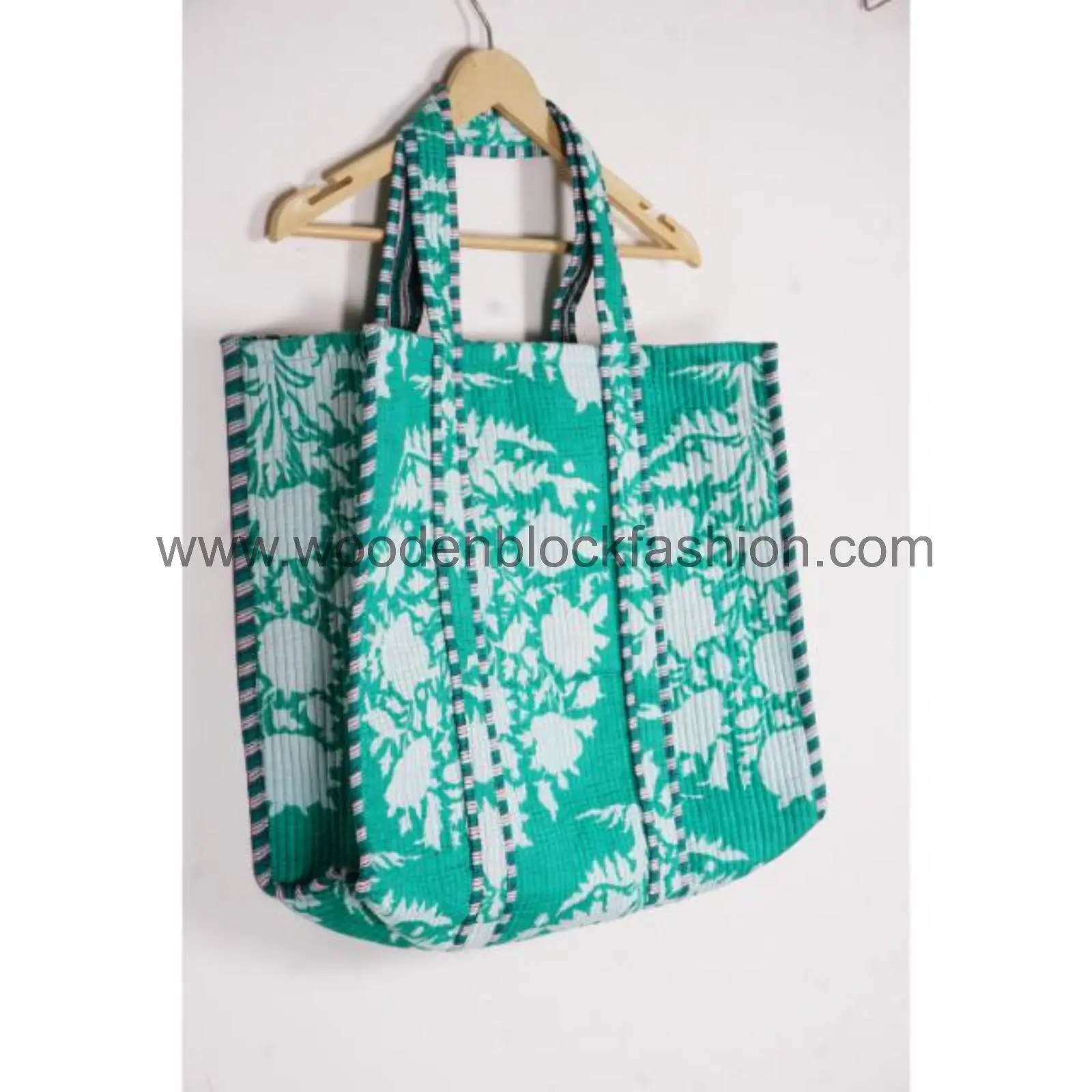 This floral cotton shoulder tote bag is crafted from soft quilted cotton and decorated with traditional hand block prints. Comfortable straps make it ideal for everyday wear.