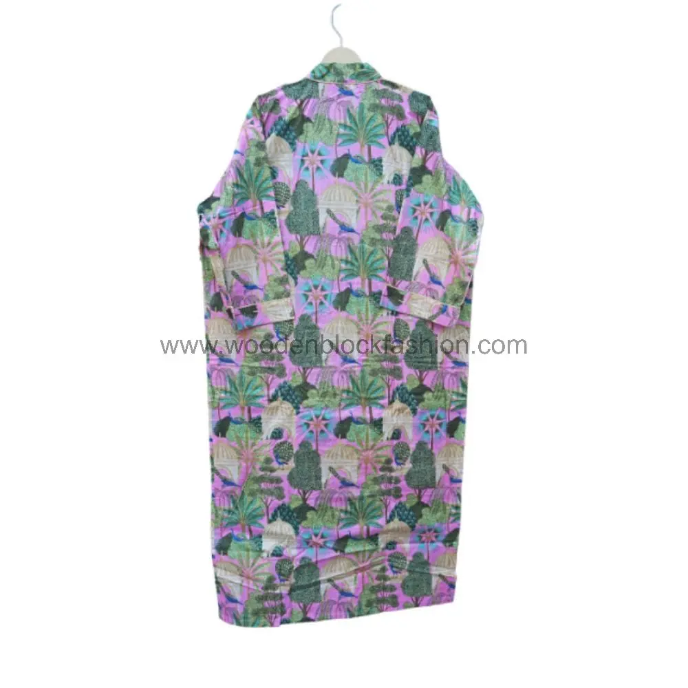 Japanese Kimono Style Cotton Robe | Floral Hand Painted Design