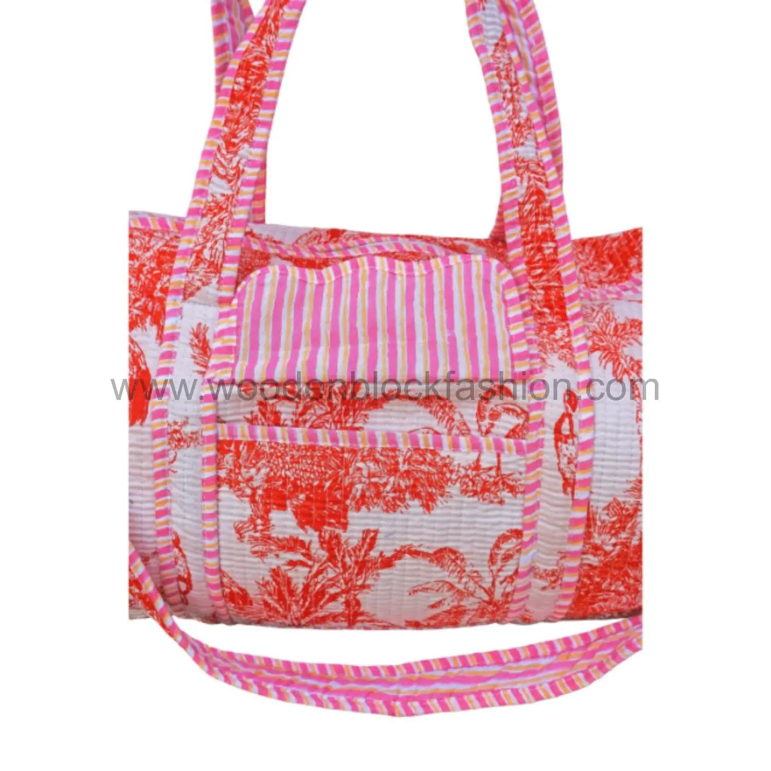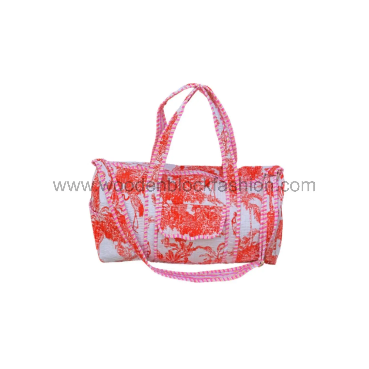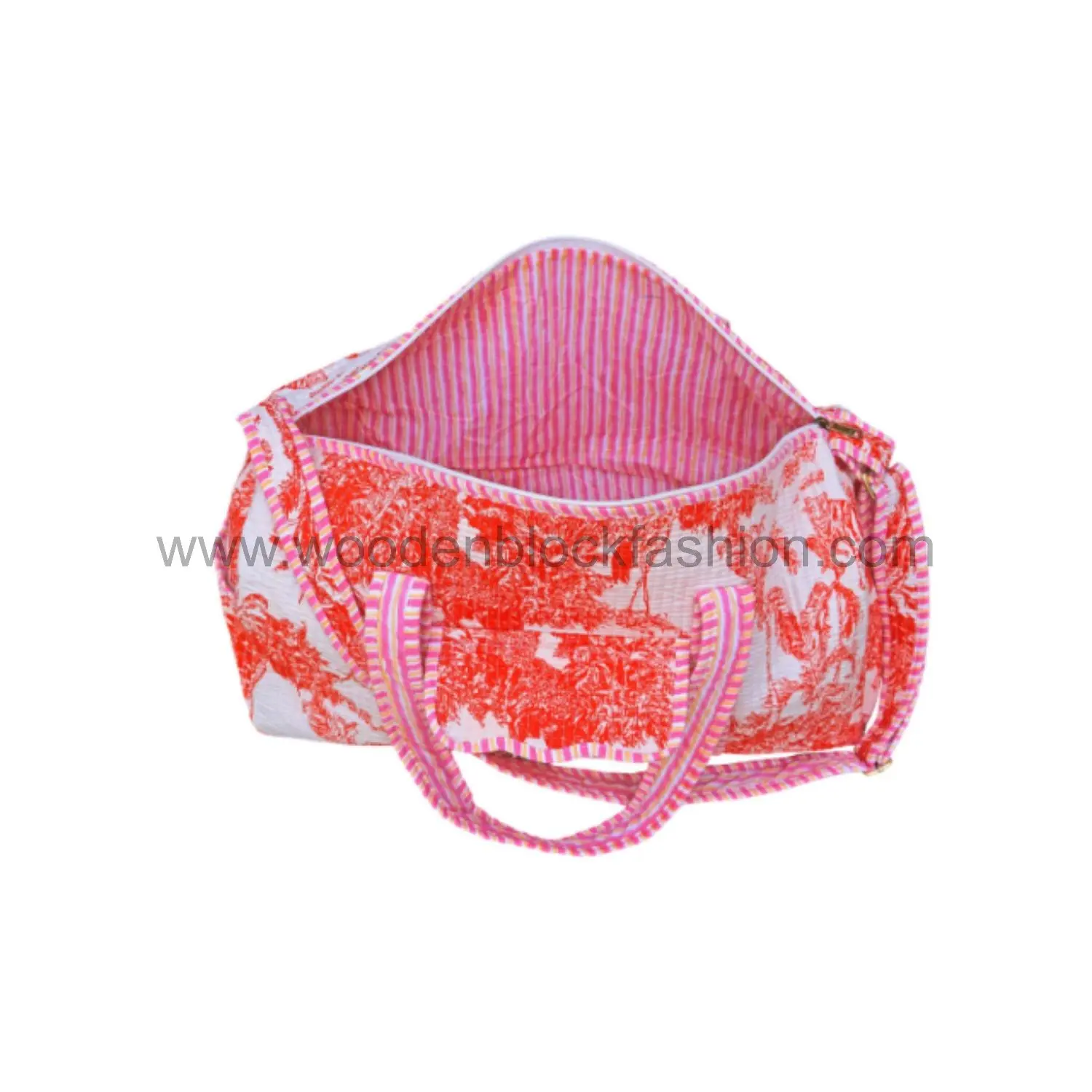 Stylish cotton duffle: lightweight, spacious, and handmade with artisan block prints. Perfect for weekend getaways.