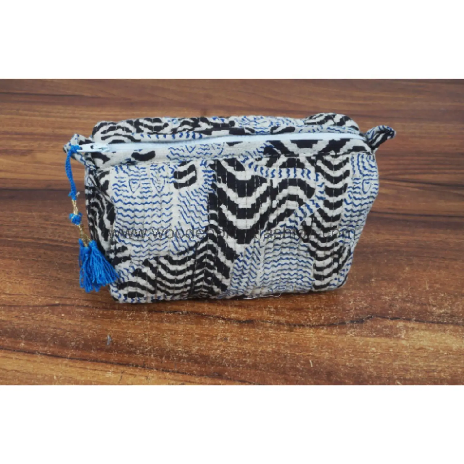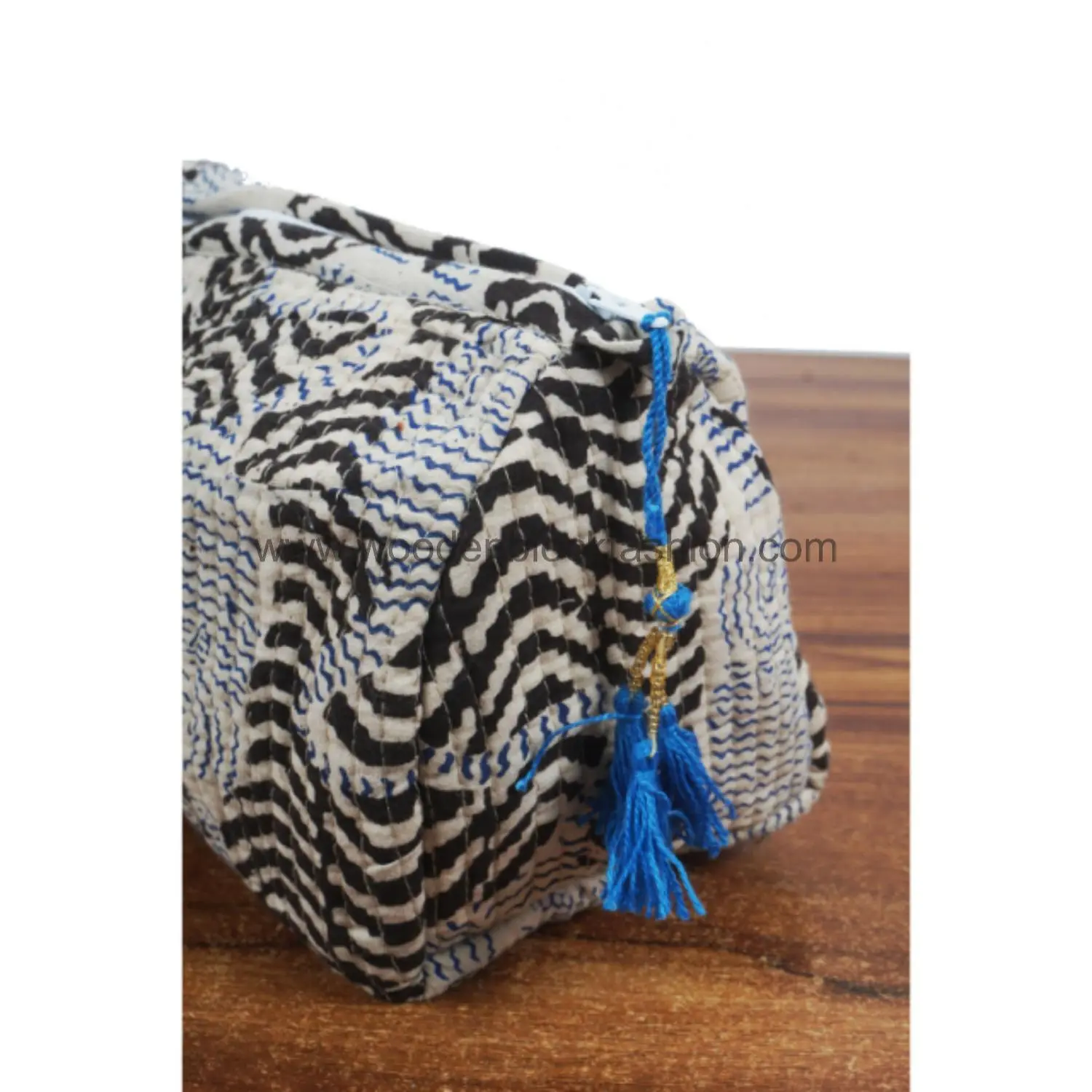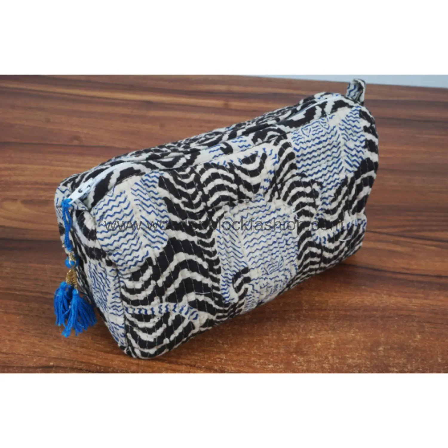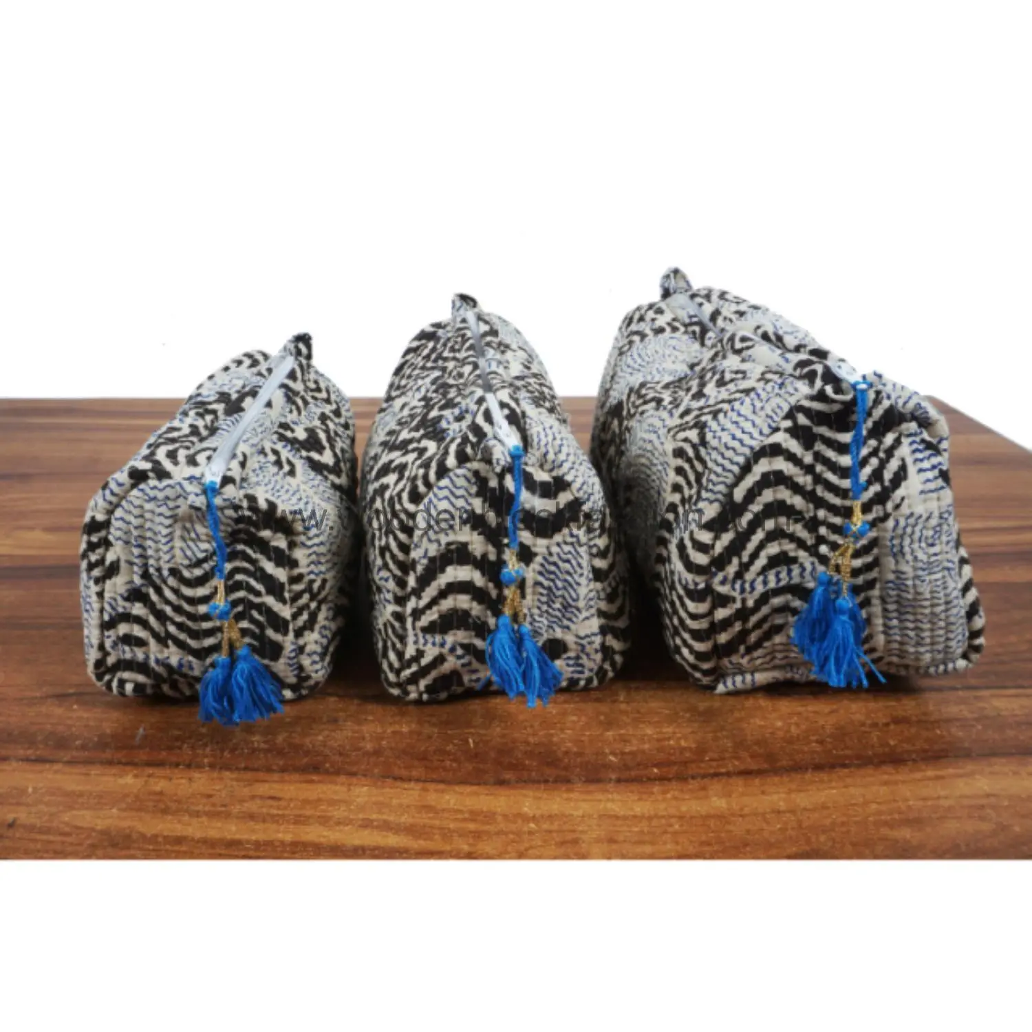 Quilted block print bags for organized travel and home use.