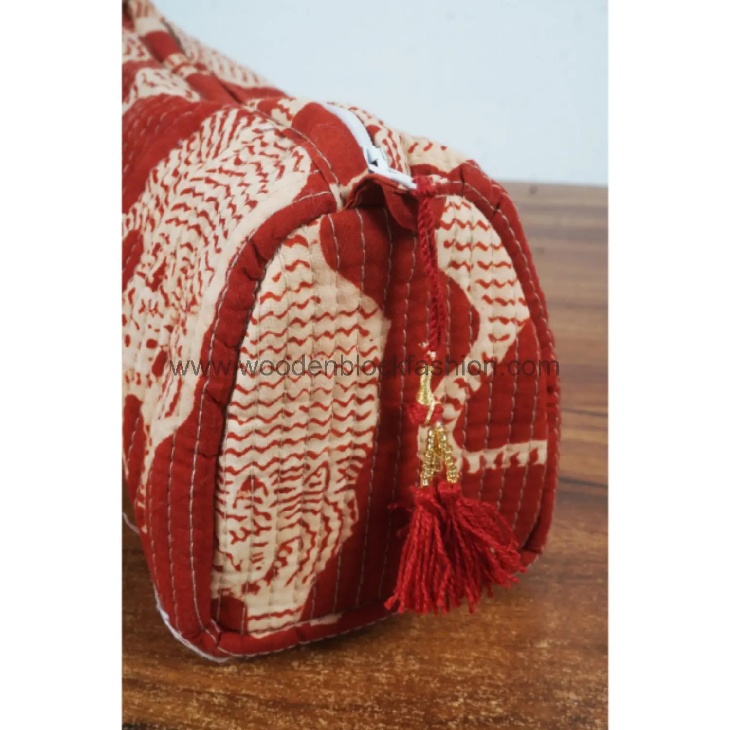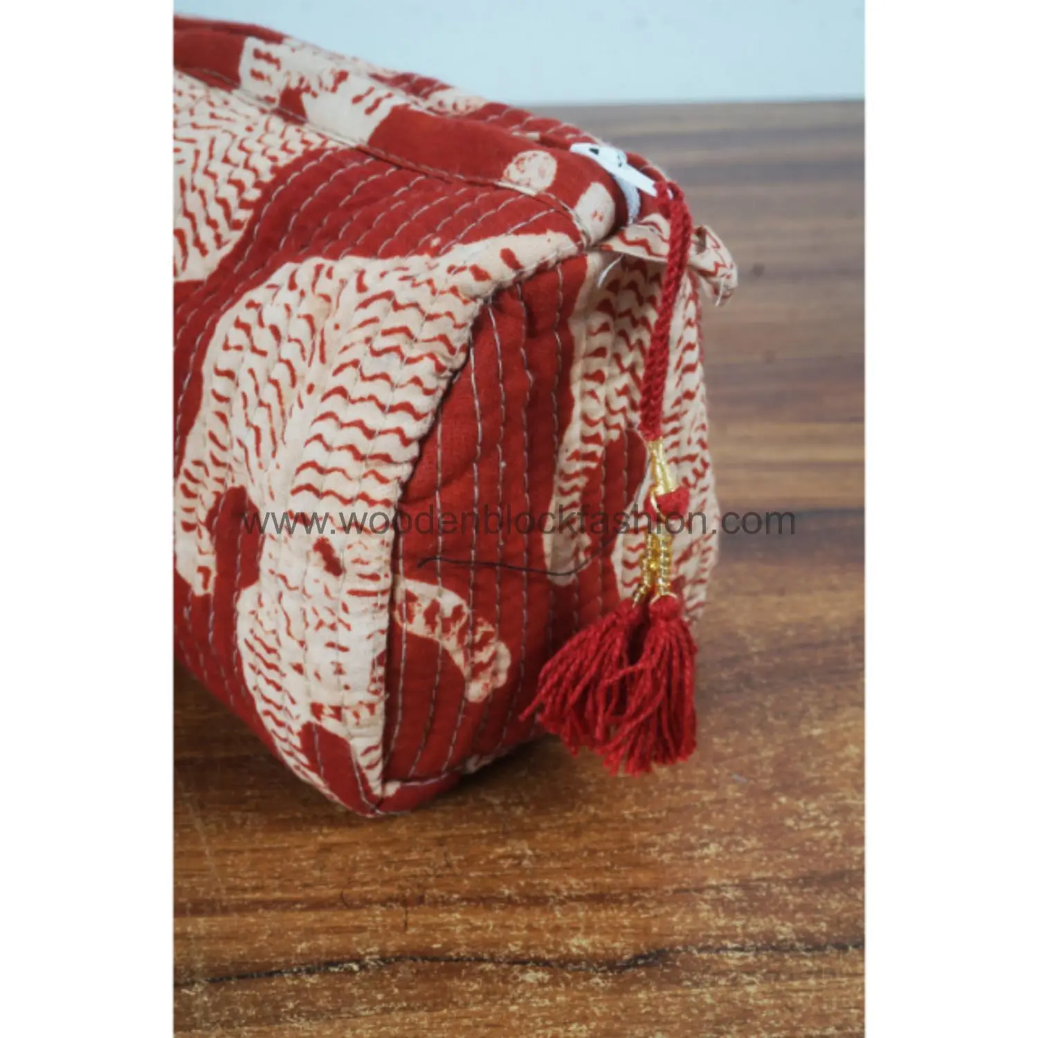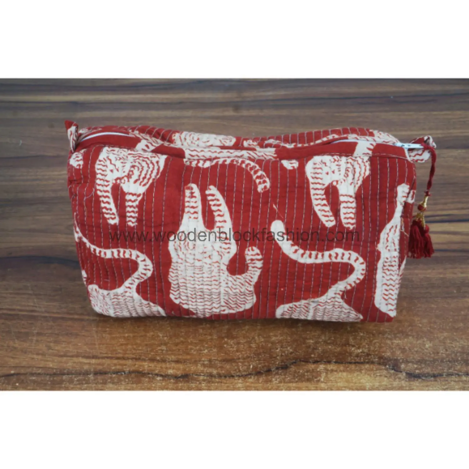 Chic block print makeup bags for home or travel.