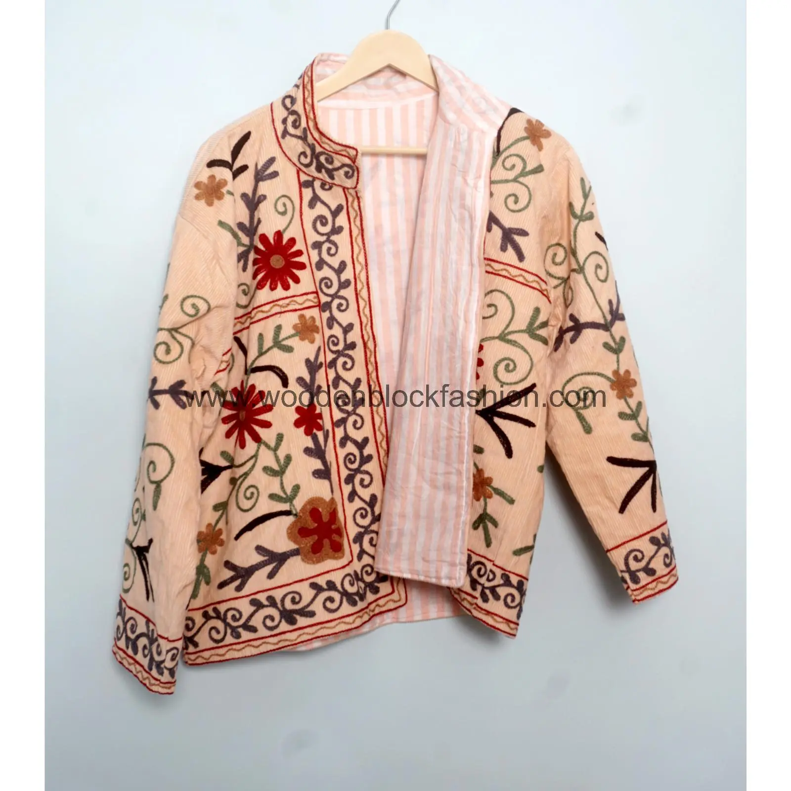 Unique Suzani Cotton Hand-Stitched Bomber – Custom Artisanal Design