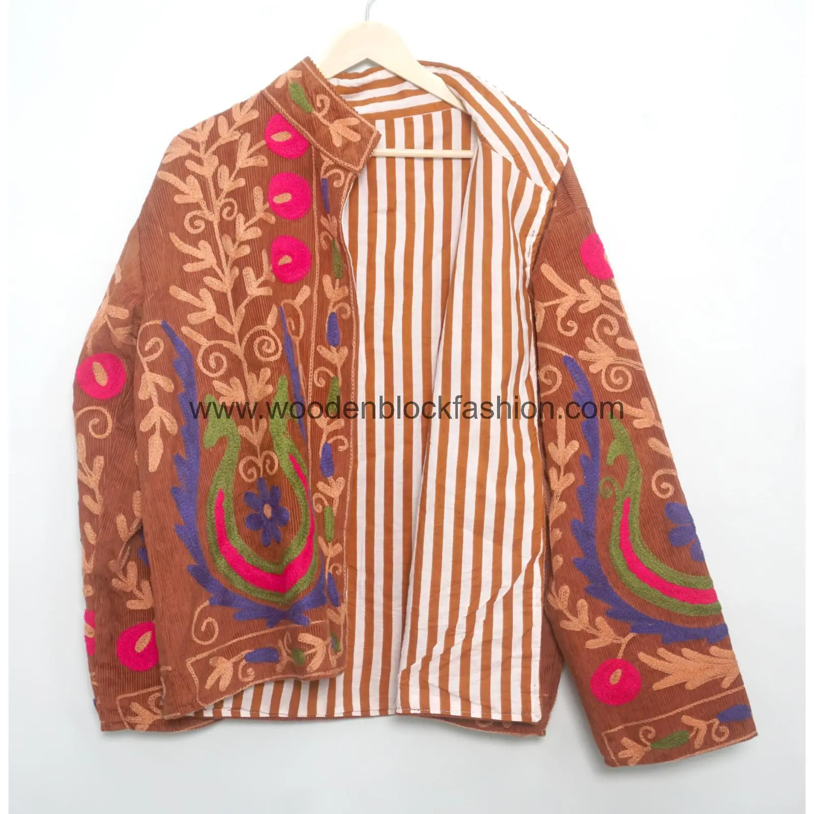 Crafted by skilled artisans, the Handcrafted Ethnic Suzani Cotton Outerwear features beautiful hand-embellished Suzani designs. This jacket not only makes a bold fashion statement but also reflects your appreciation for authentic, handmade artistry. Comfortable, durable, and undeniably chic.