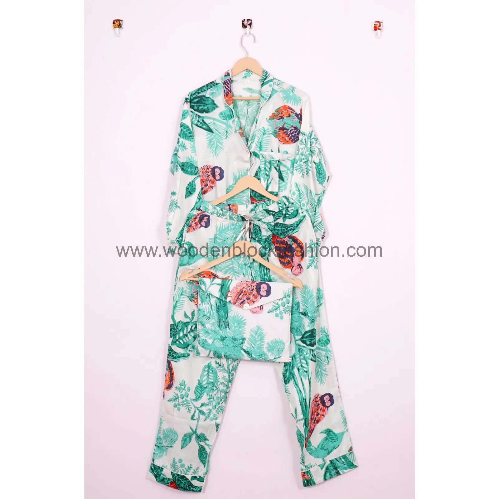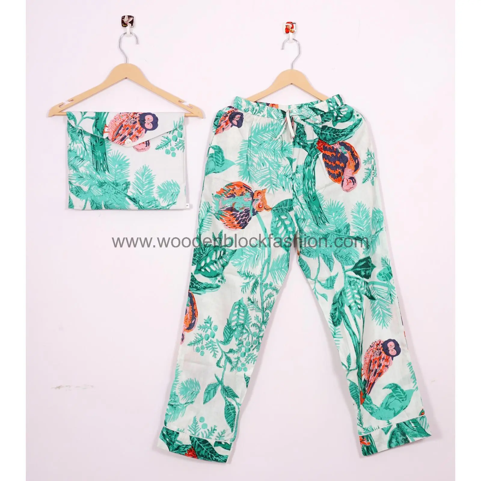 Handmade Owl Print Sleepwear Cotton Night Suit Dress