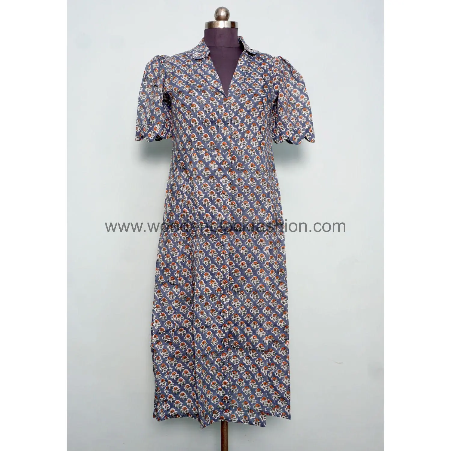 Indian Floral Hand Block Cotton Midi Dress