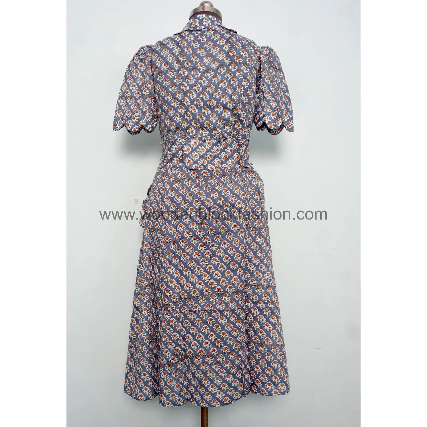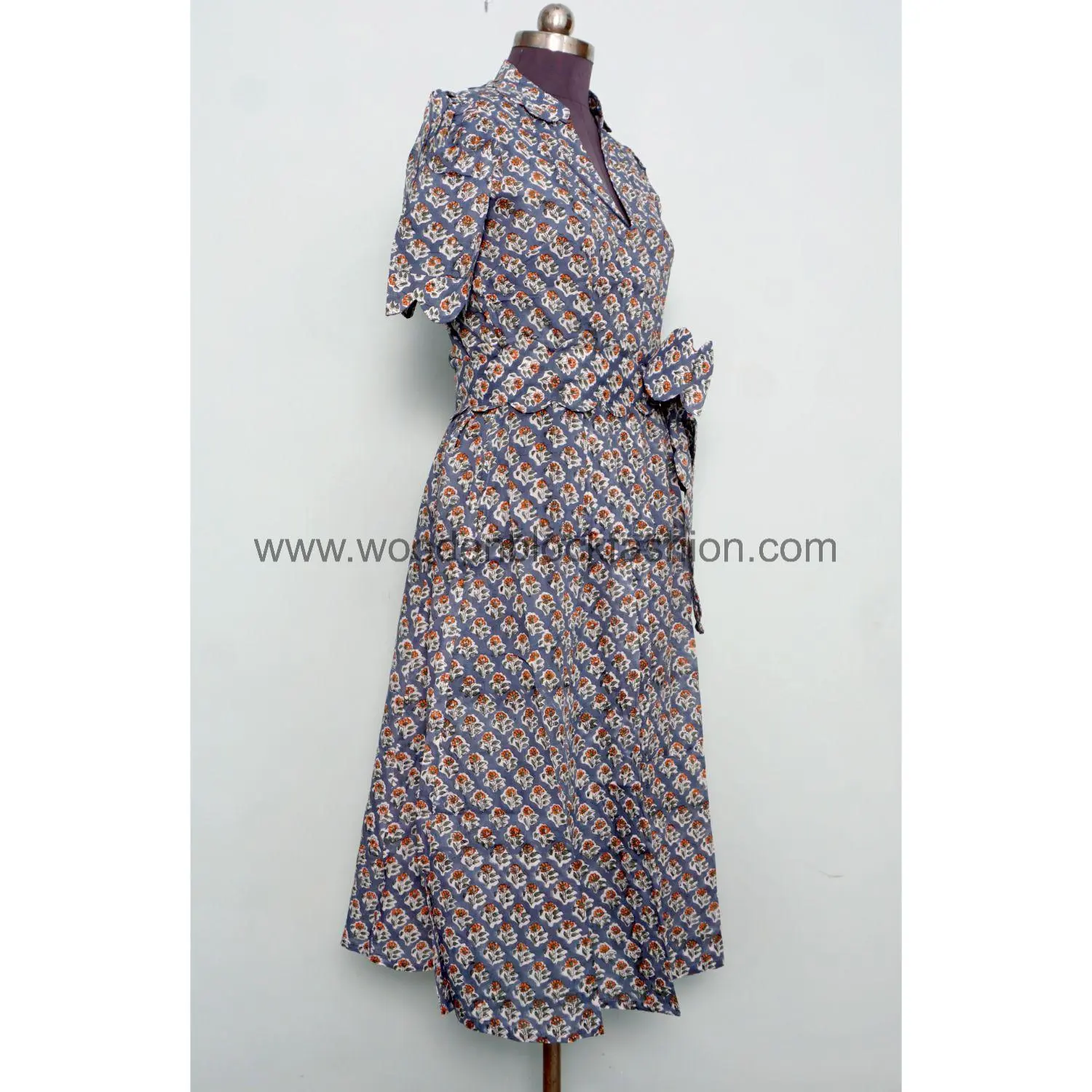 This floral hand block printed midi dress is handmade in India using soft cotton fabric. The A-line fit makes it ideal for all-day comfort and effortless style.