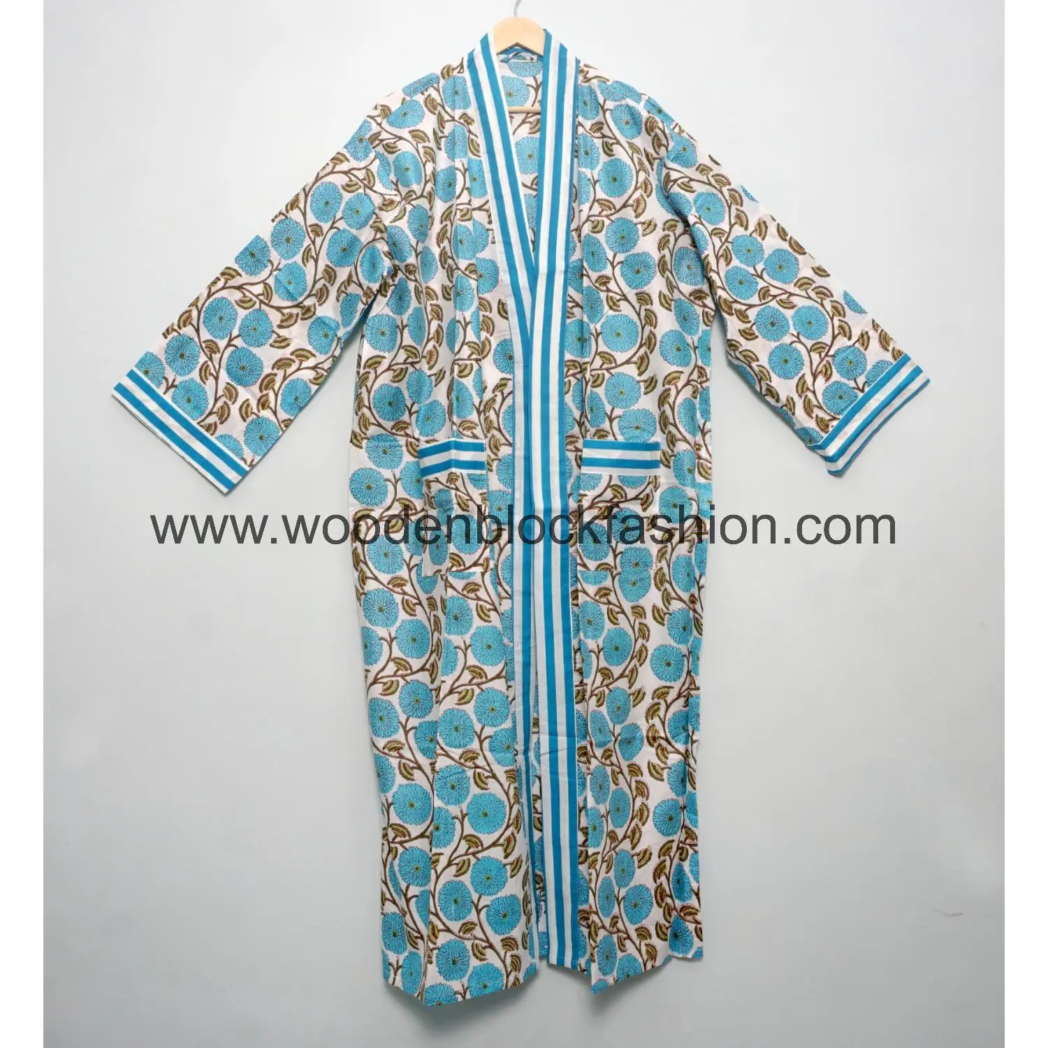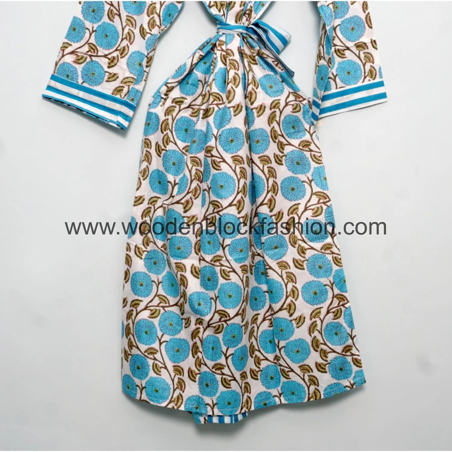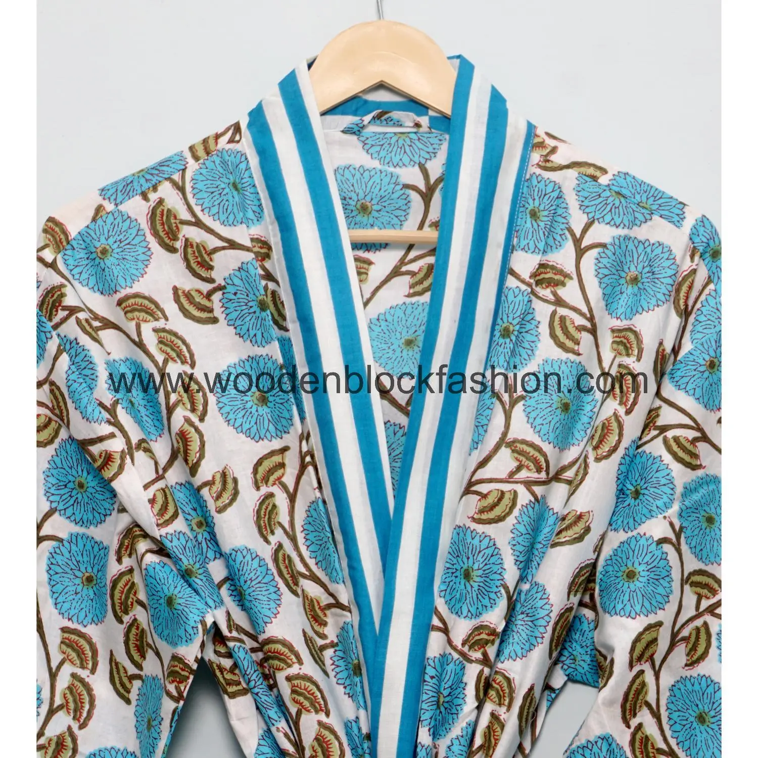This Indian handcrafted kimono is made using traditional block printing techniques on breathable cotton fabric. Ideal for spring and summer home wear or stylish beach coverups.