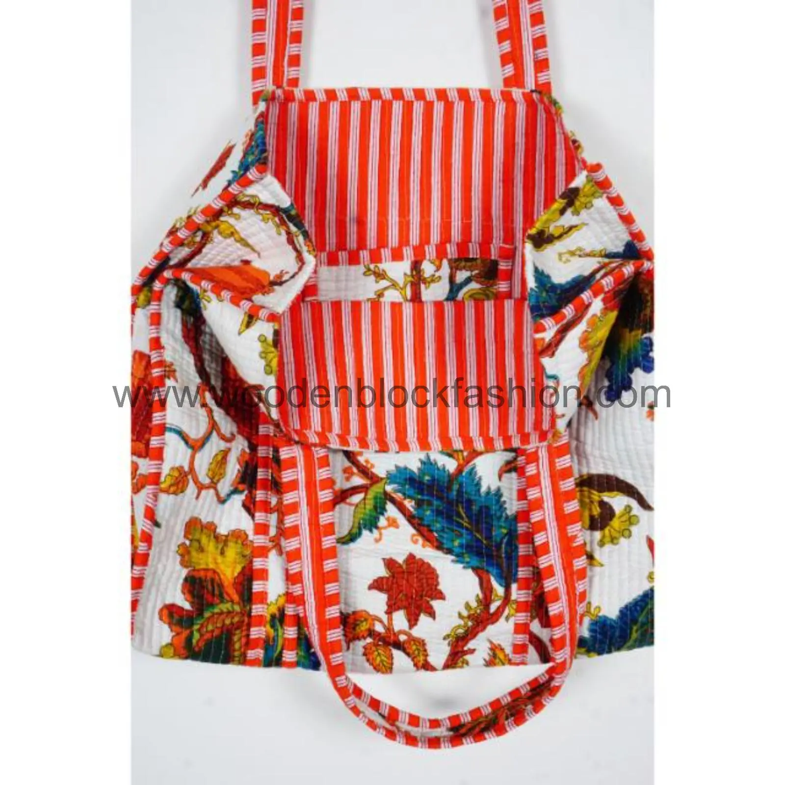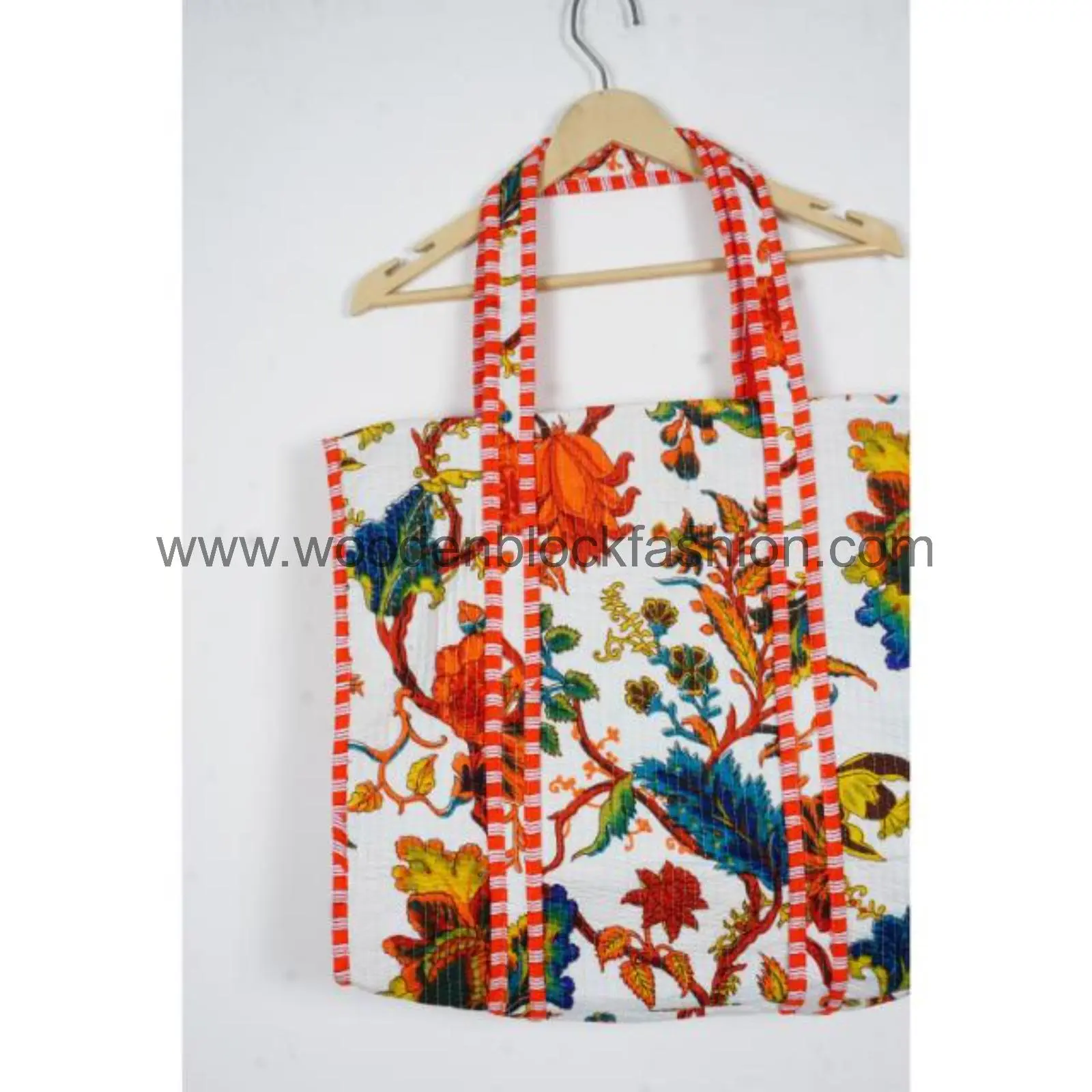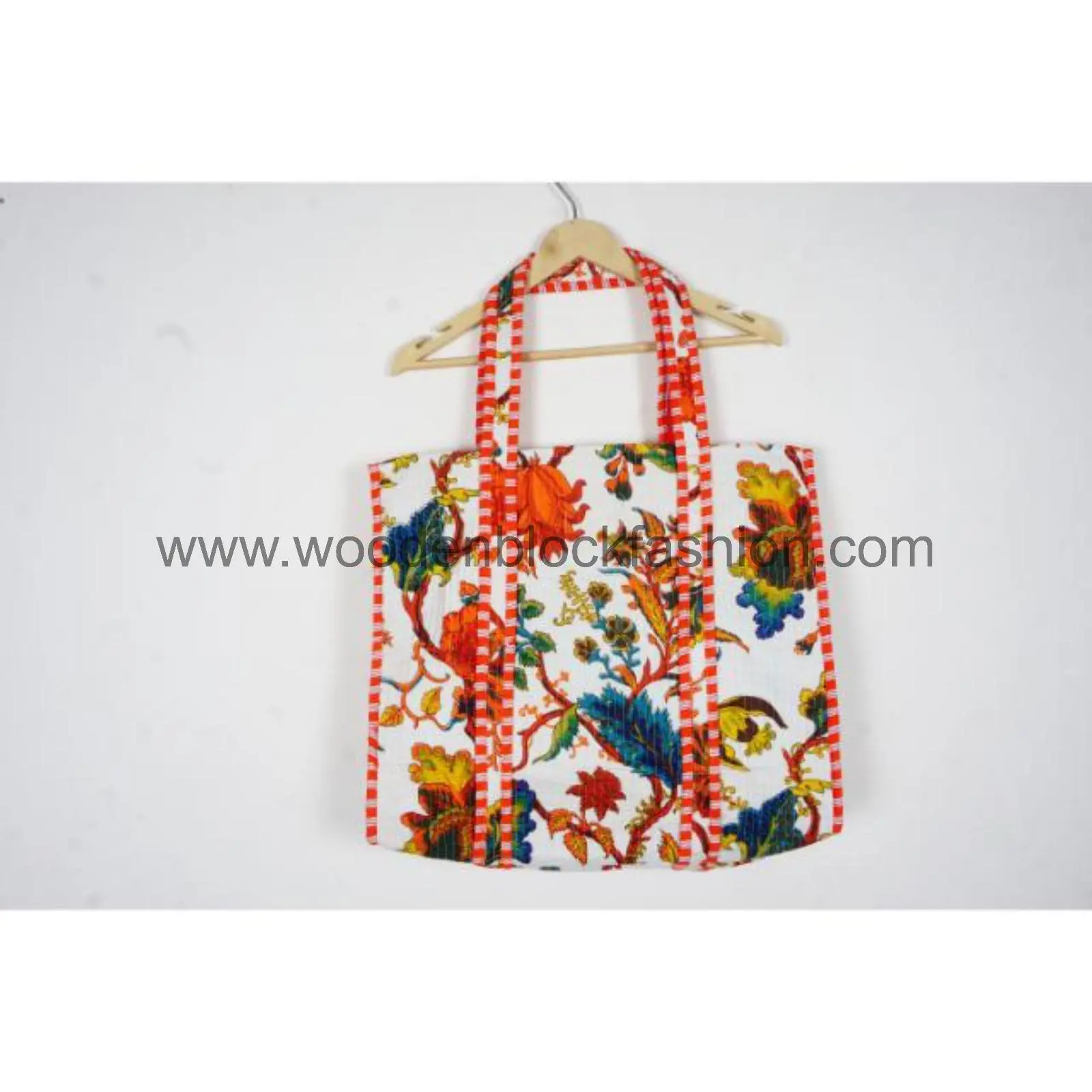 Made from premium cotton, this Indian handmade tote bag showcases detailed floral block prints. Quilted for durability, it’s a versatile accessory suitable for shopping, travel, or gifting.