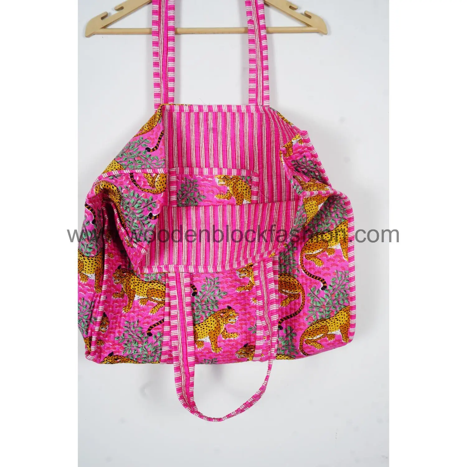 Ideal for shopping and daily errands, this Indian printed quilted cotton tote bag is reusable and stylish.