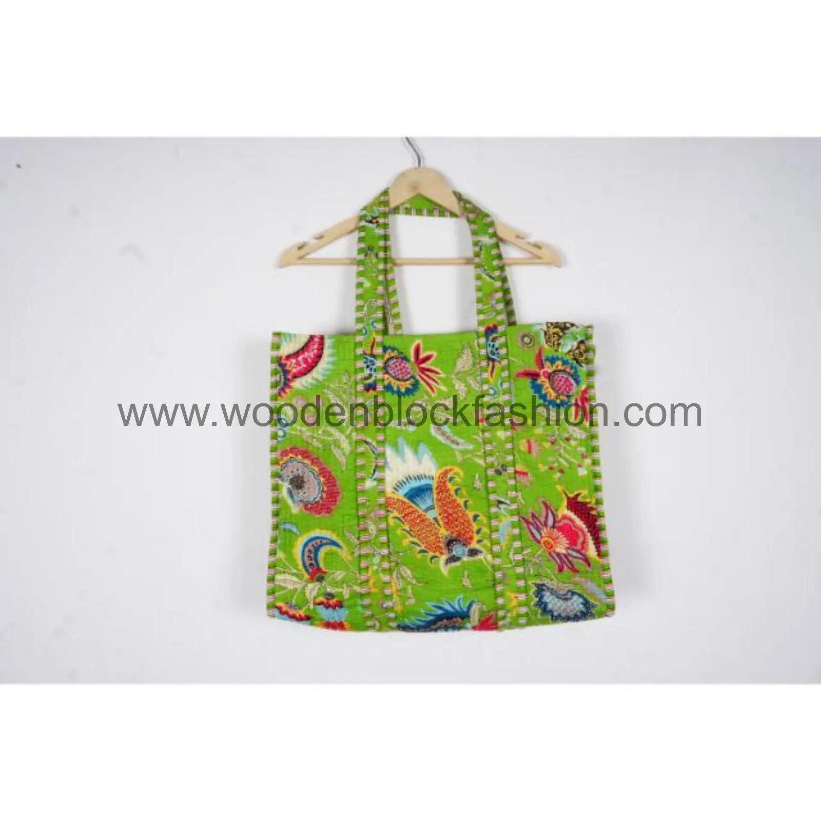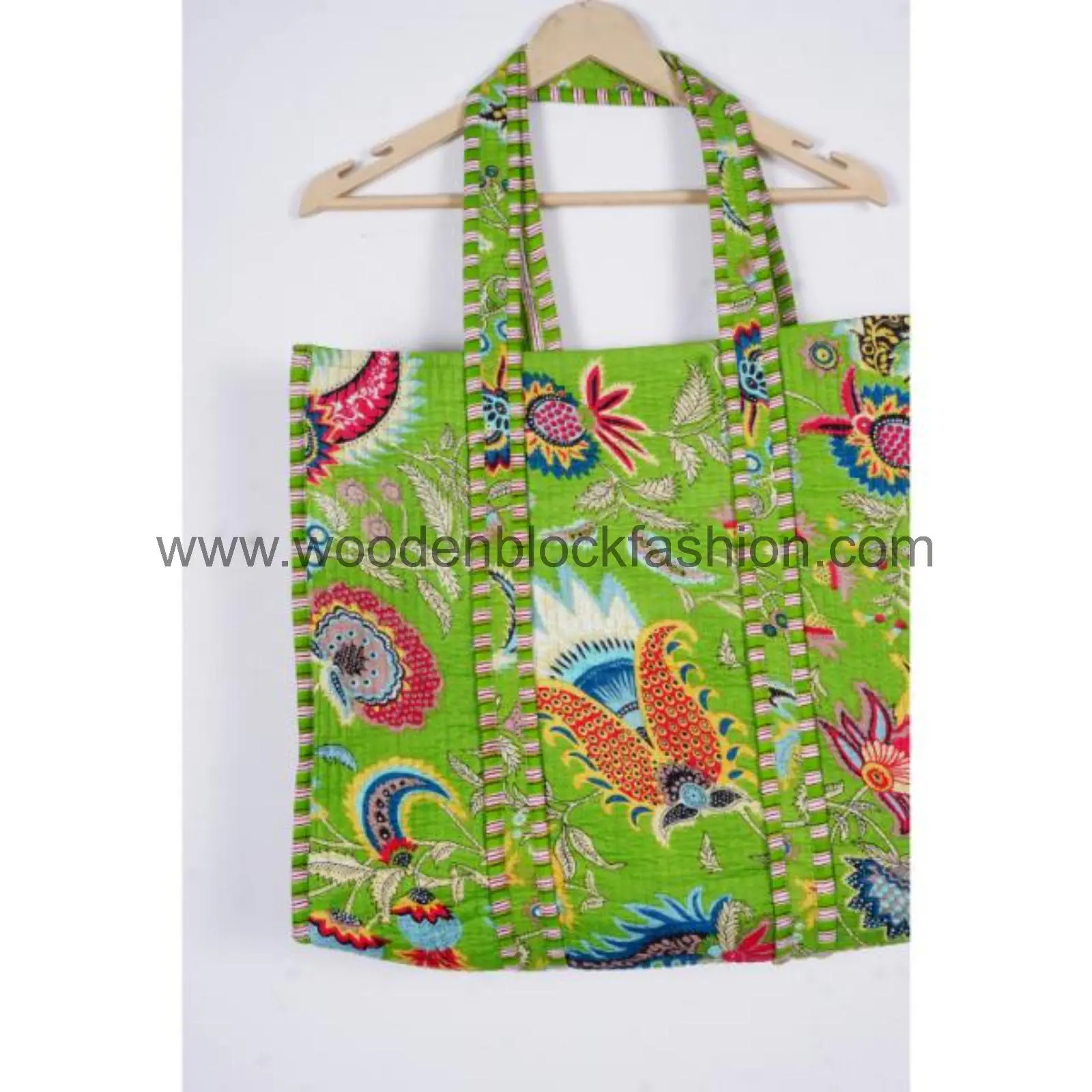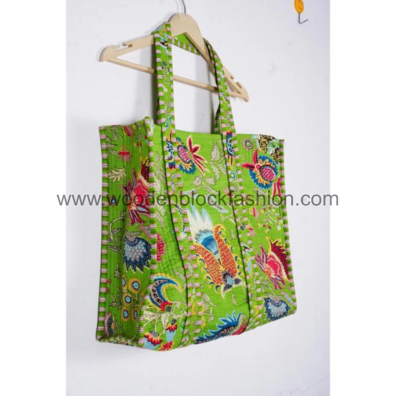 Hand block printed and quilted for strength, this Indian cotton shopping tote is perfect for groceries, books, or travel. A beautiful blend of utility and tradition.