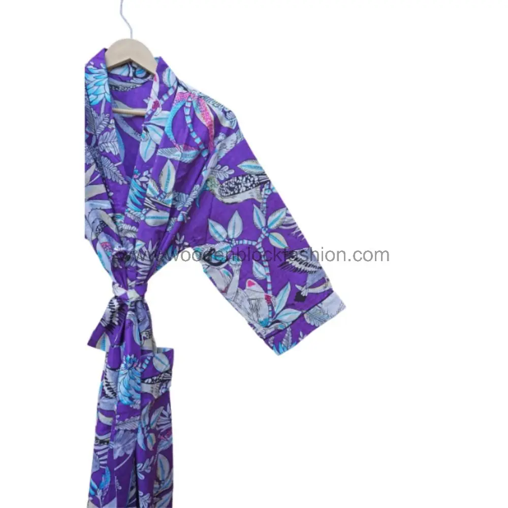 Indian Cotton Kimono Robe | Handblock Print Sleepwear