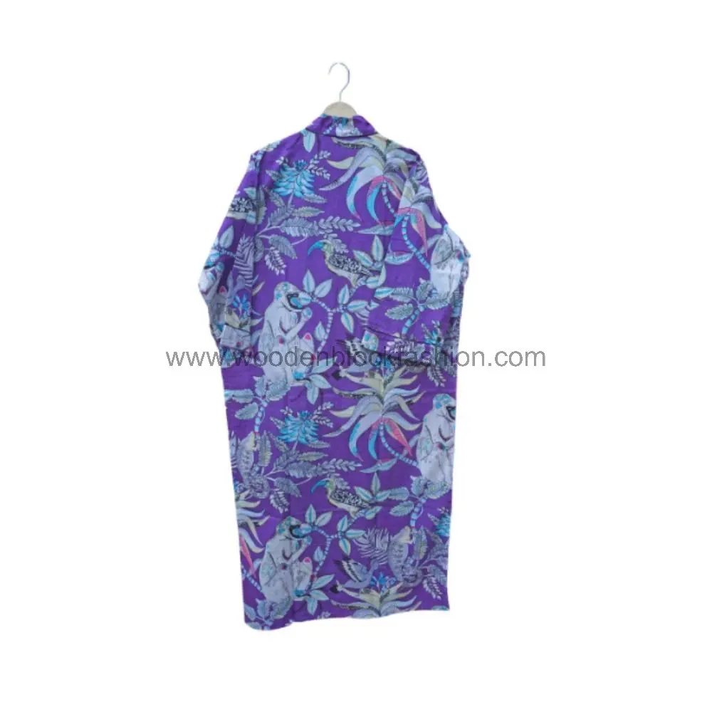 A long cotton robe with floral hand block print. Perfect as sleepwear or a casual kimono dress, it offers comfort and elegance in one.