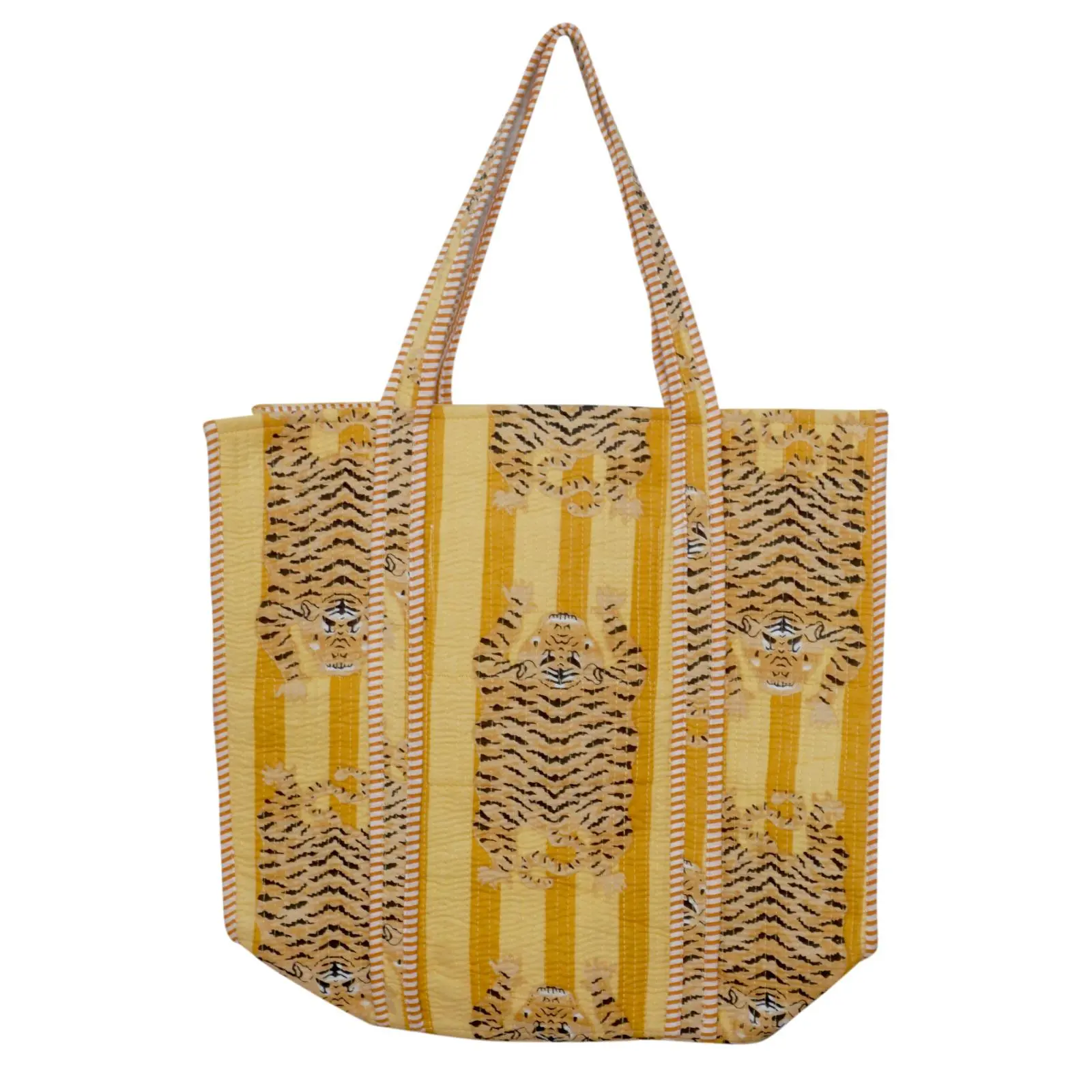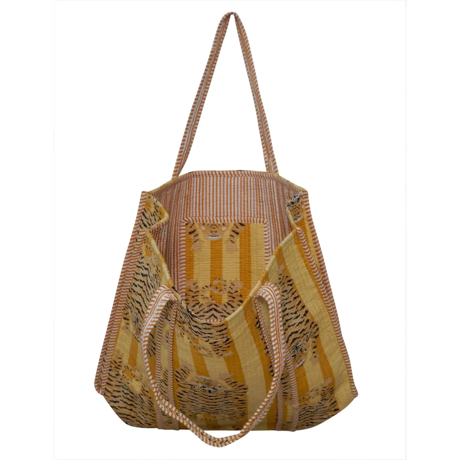 Designed for comfort and style, this cotton tote bag with a block print design is a sustainable and fashionable choice for any occasion.