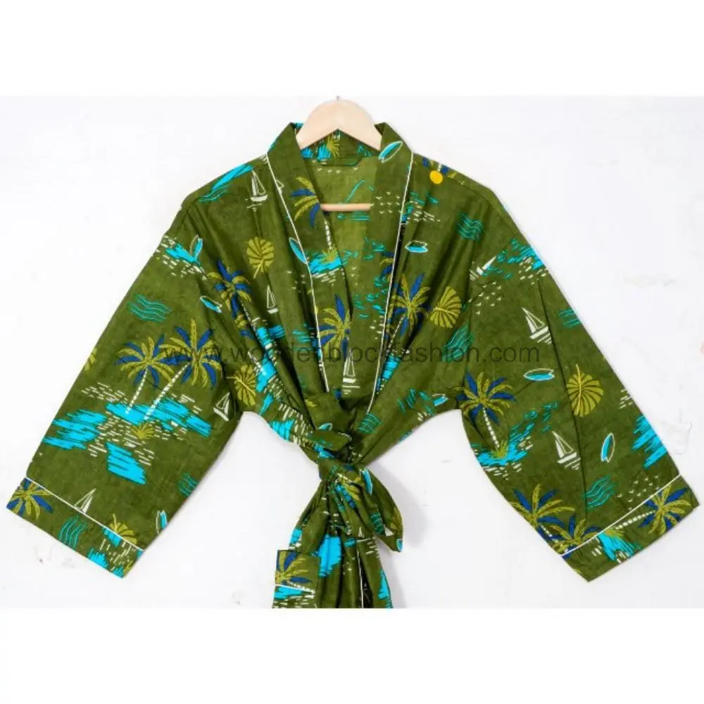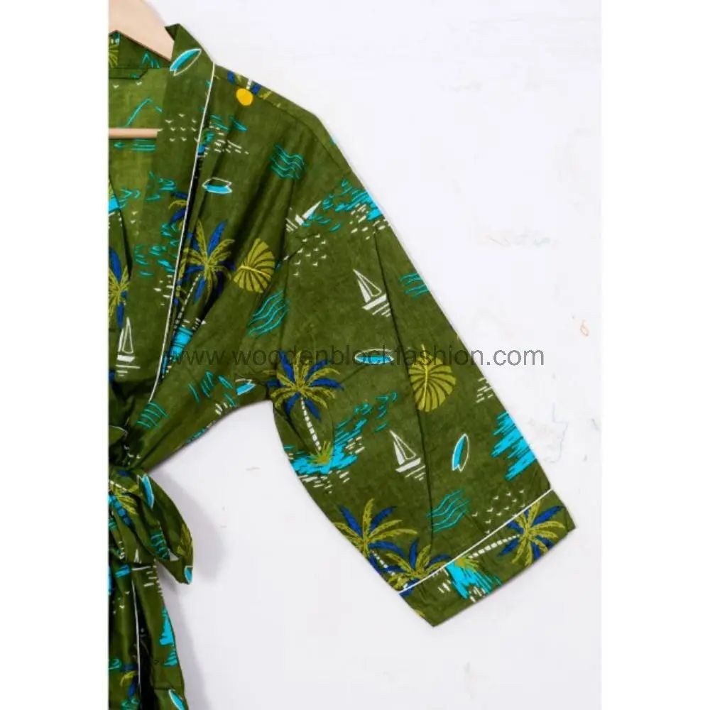 Lightweight Cotton Kimono Robe – Hand Block Print Design
