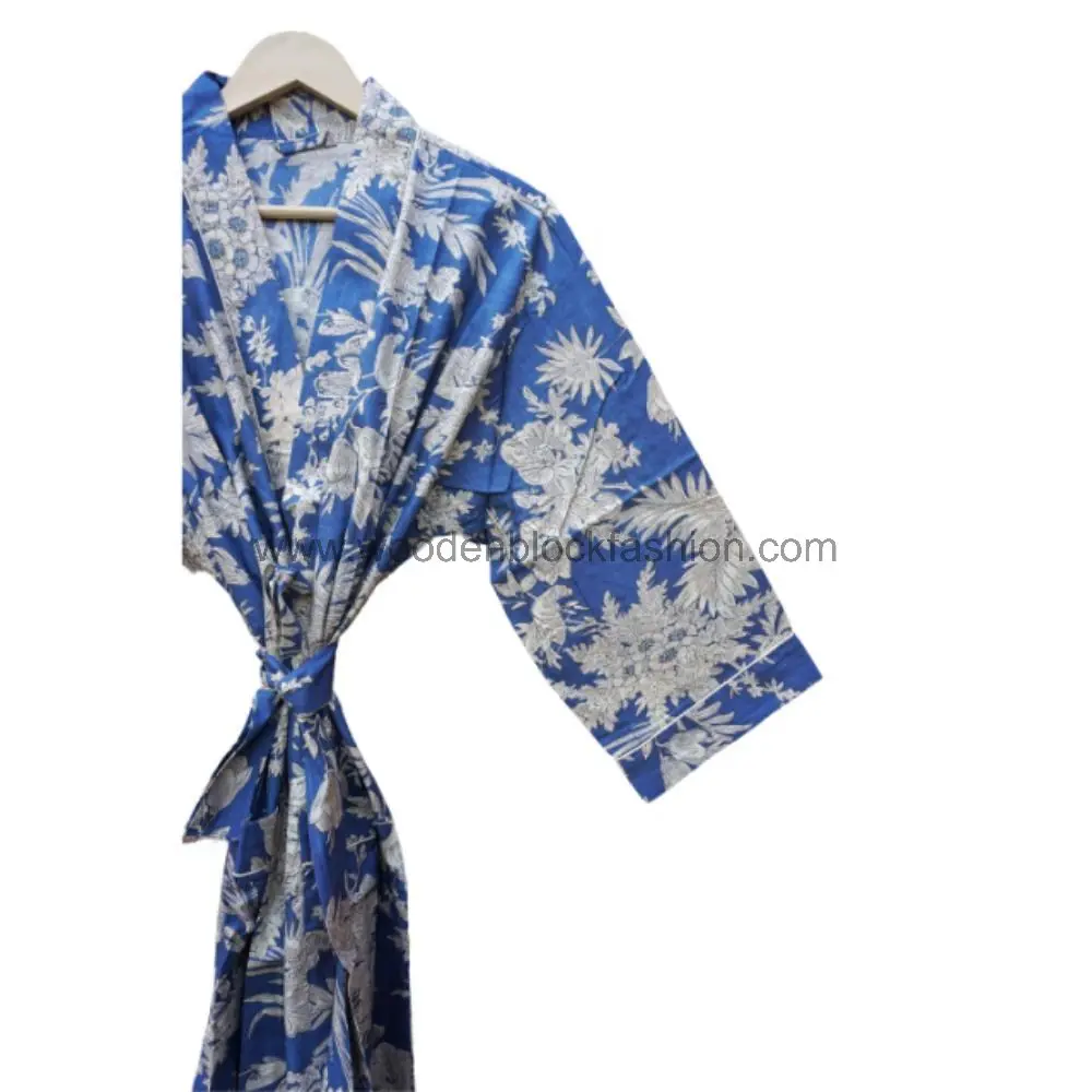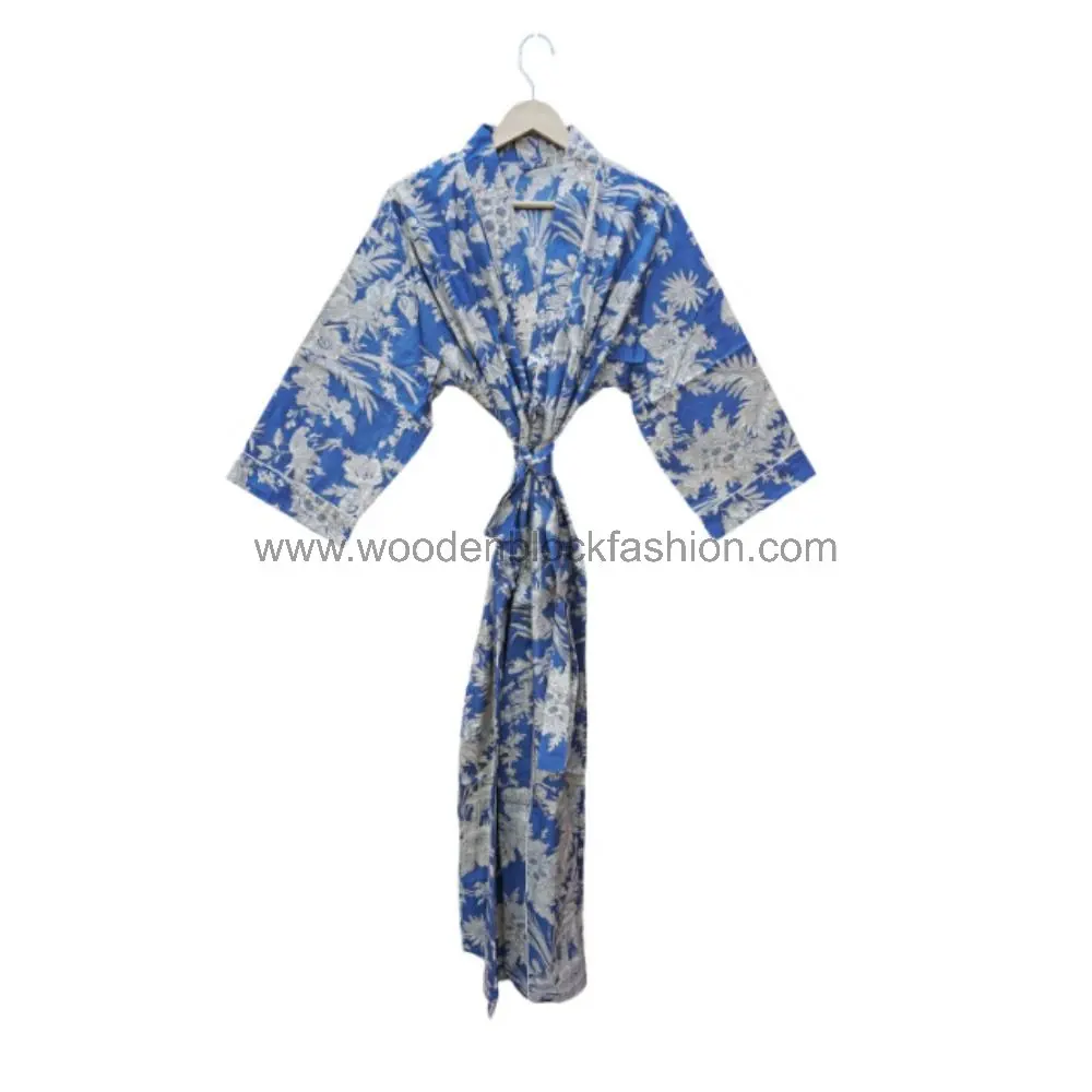 Bohemian lounge wear with a modern twist. This kimono robe combines lightweight cotton with intricate hand block prints for a timeless, elegant look.