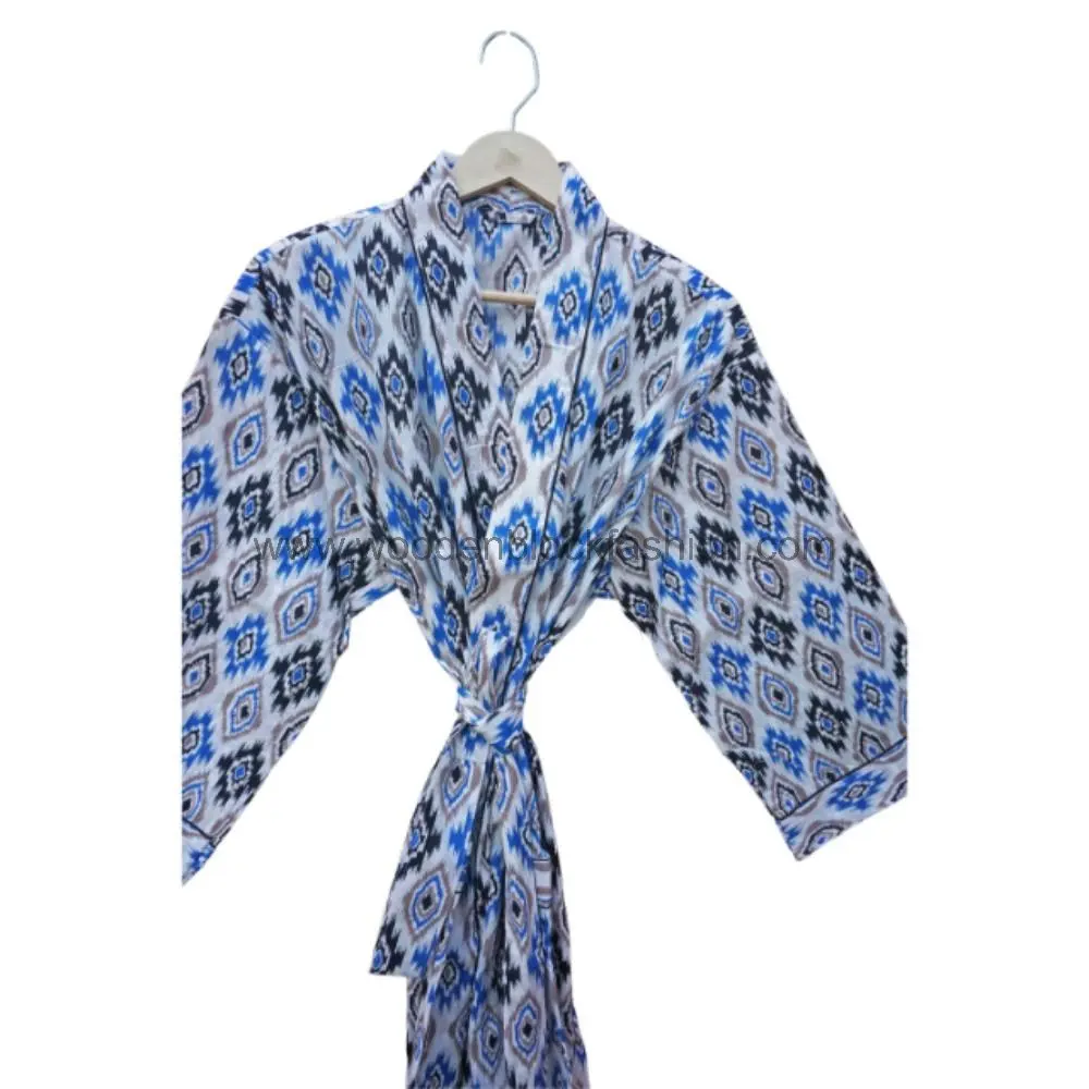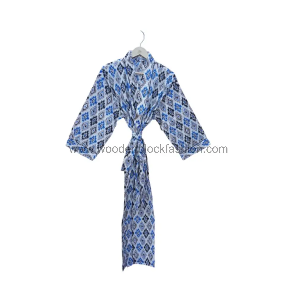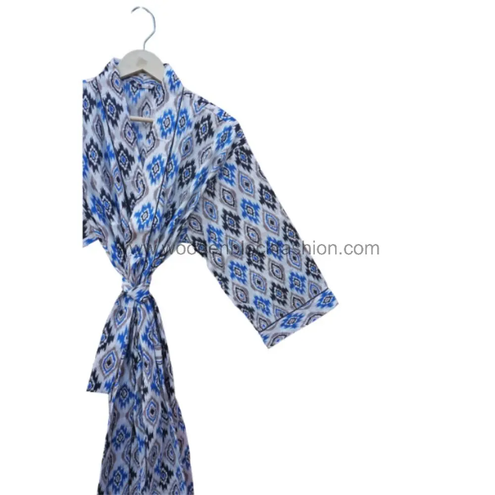 Block Print Cotton Kimono, Women’s Long Dressing Gown
