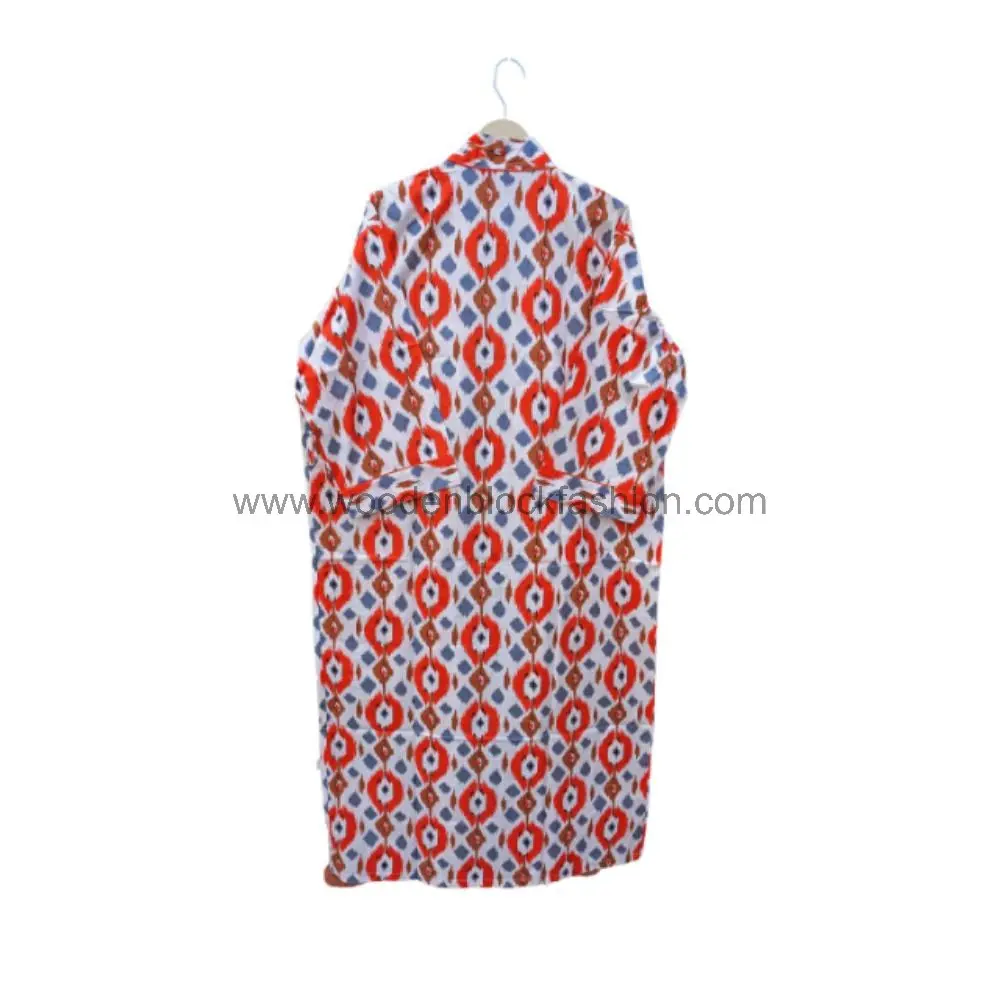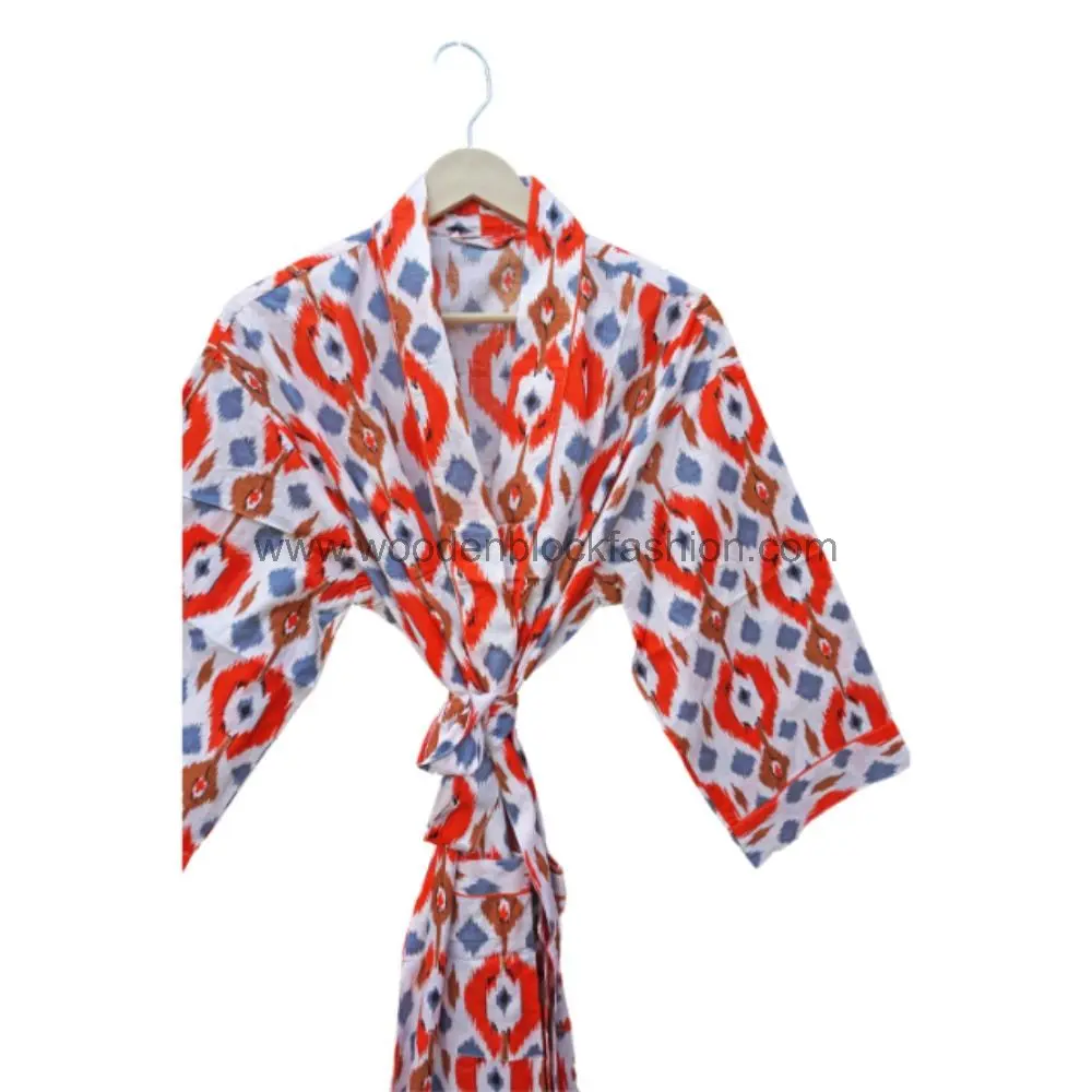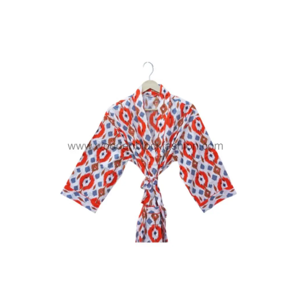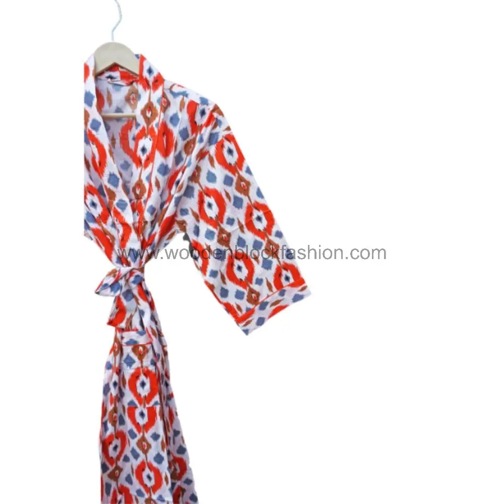 Floral Cotton Kimono Bathrobe, Hand Block Printed Women’s Lounge Robe