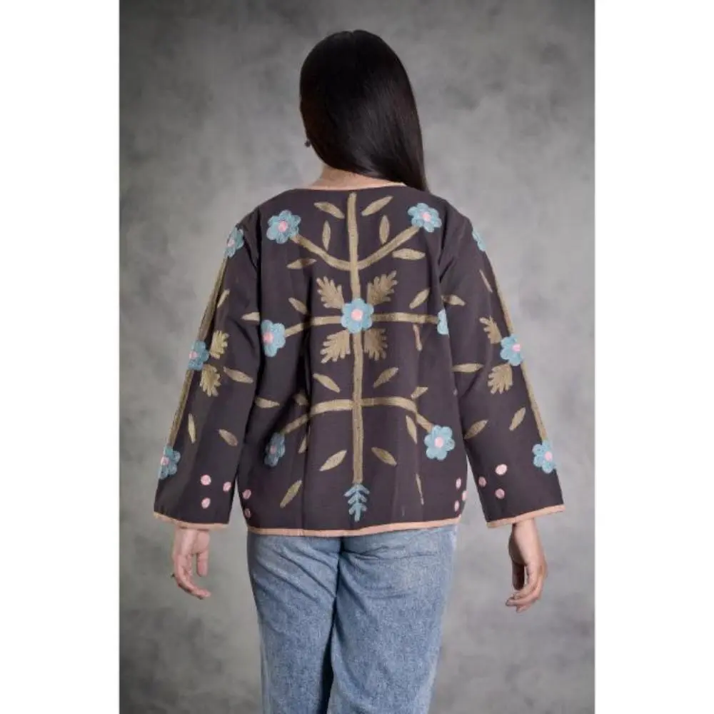 Vintage Suzani Jacket, Embroidered Floral Cotton Bohemian Coat