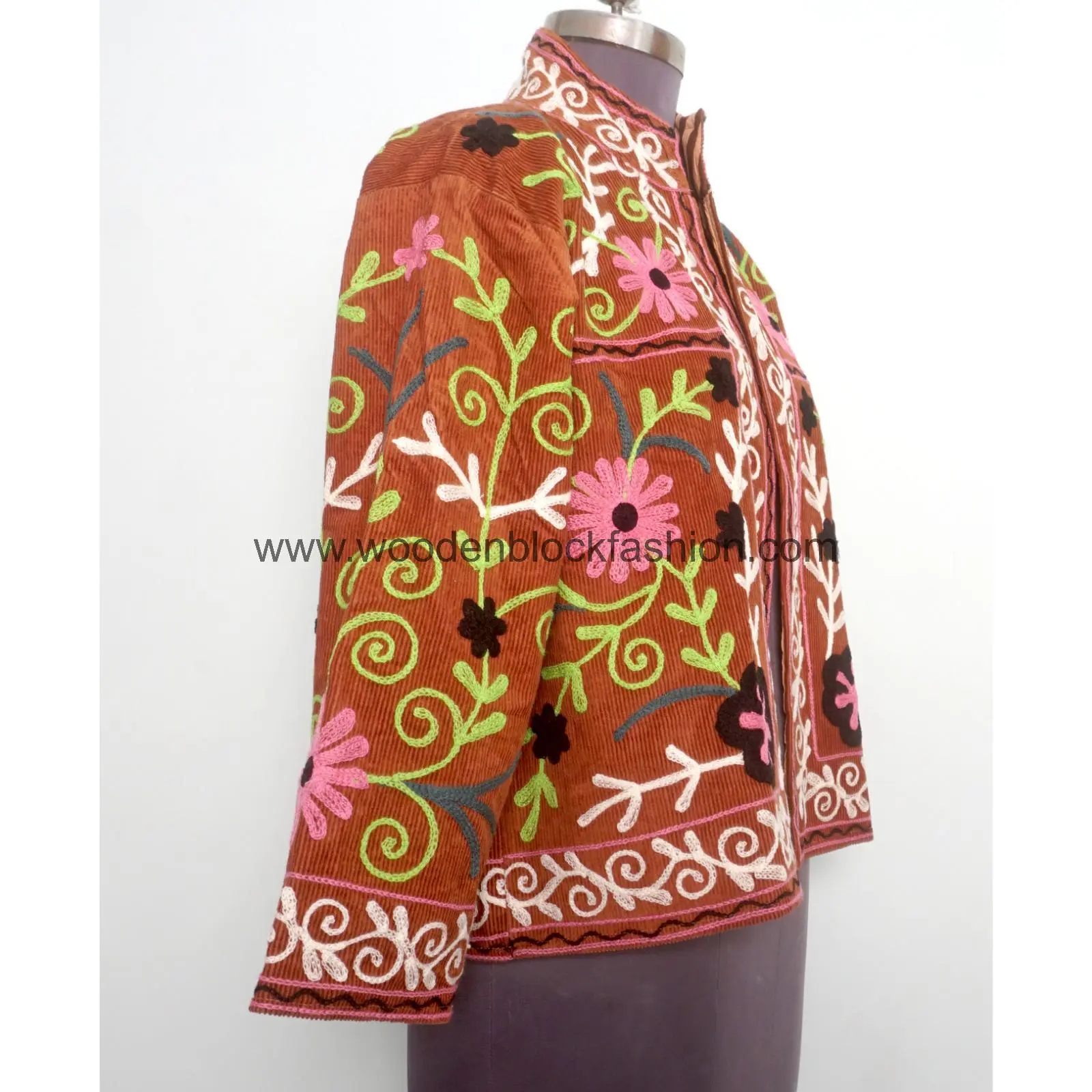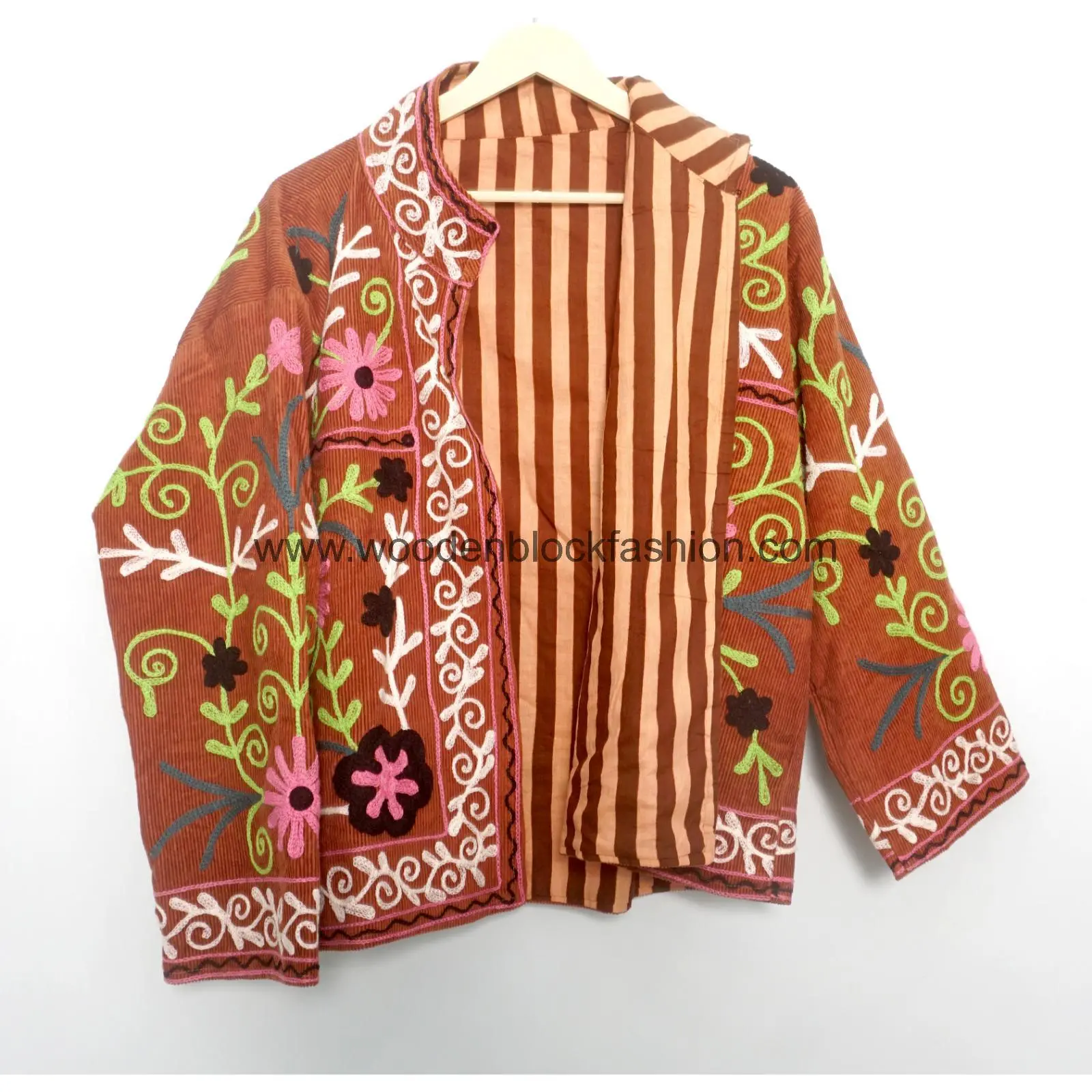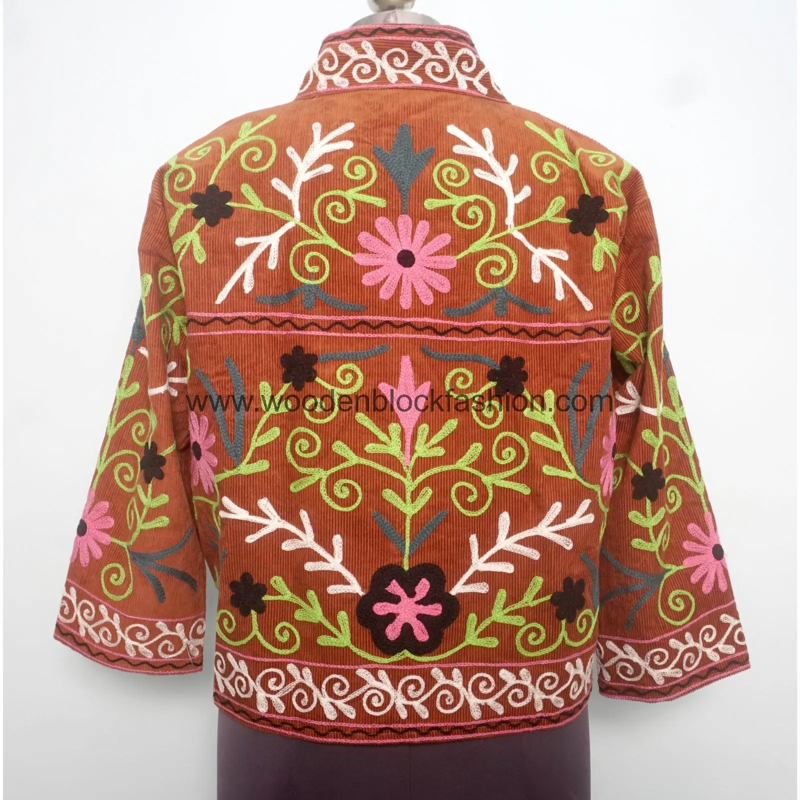 Bohemian Hand-Embroidered Suzani Cotton Bomber – Nomadic Style