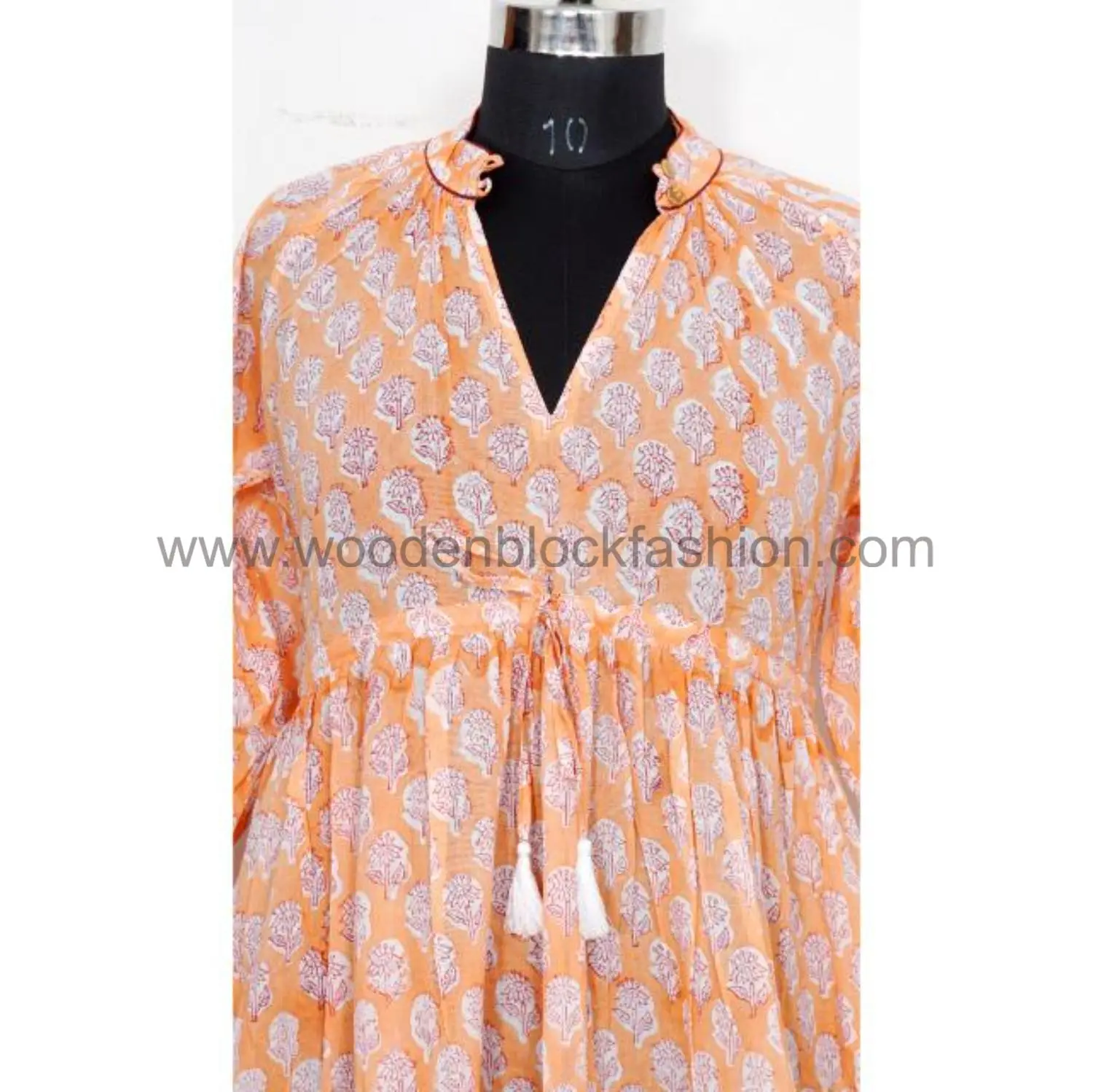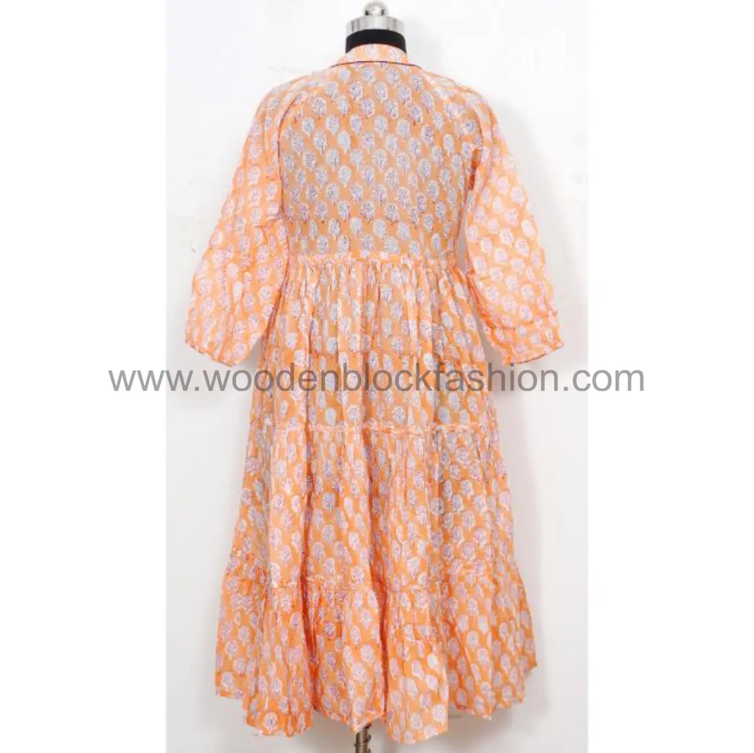 Crafted from premium-quality cotton, this block print long dress offers durability, comfort, and timeless style. The loose fit and breathable fabric make it an excellent choice for daily wear in summer.