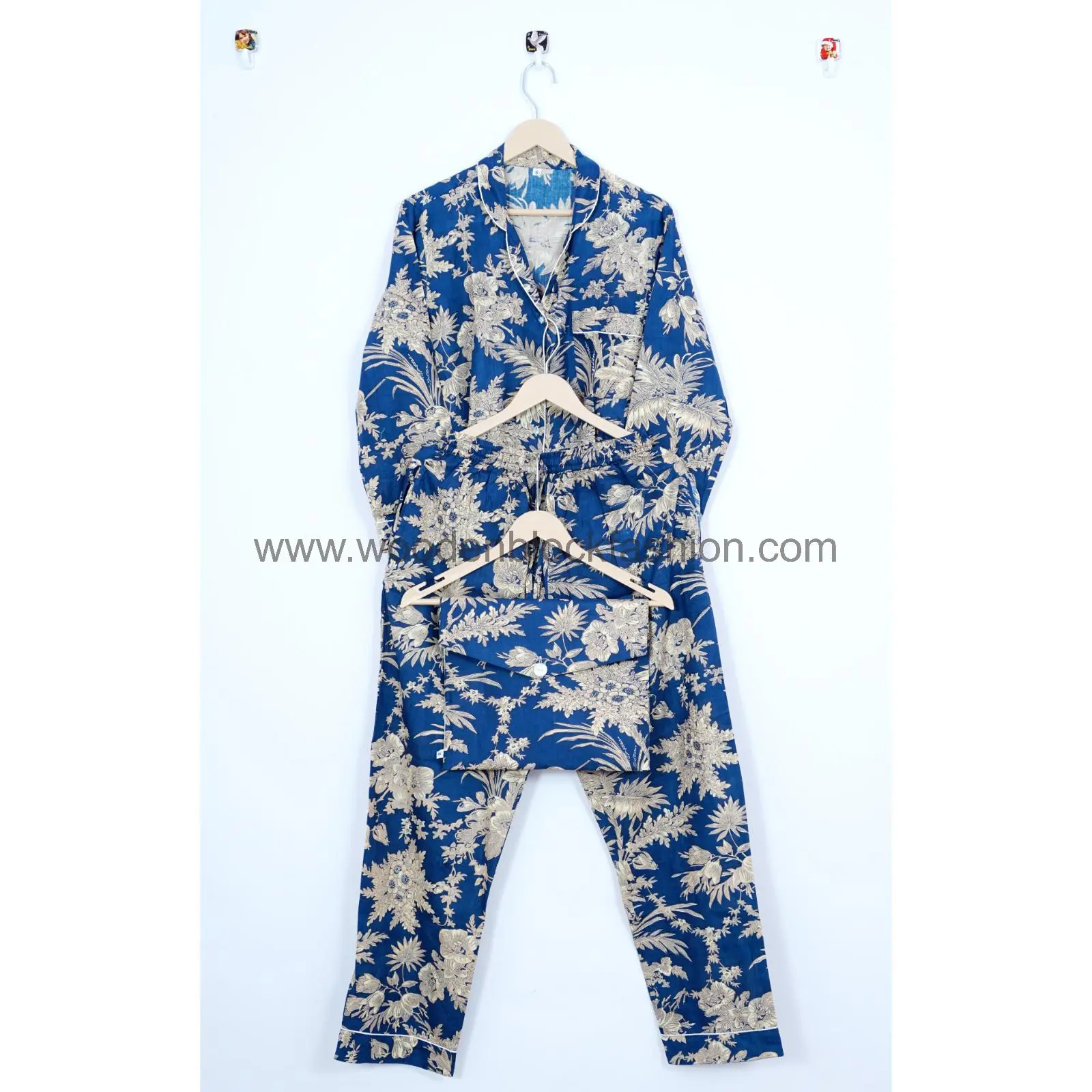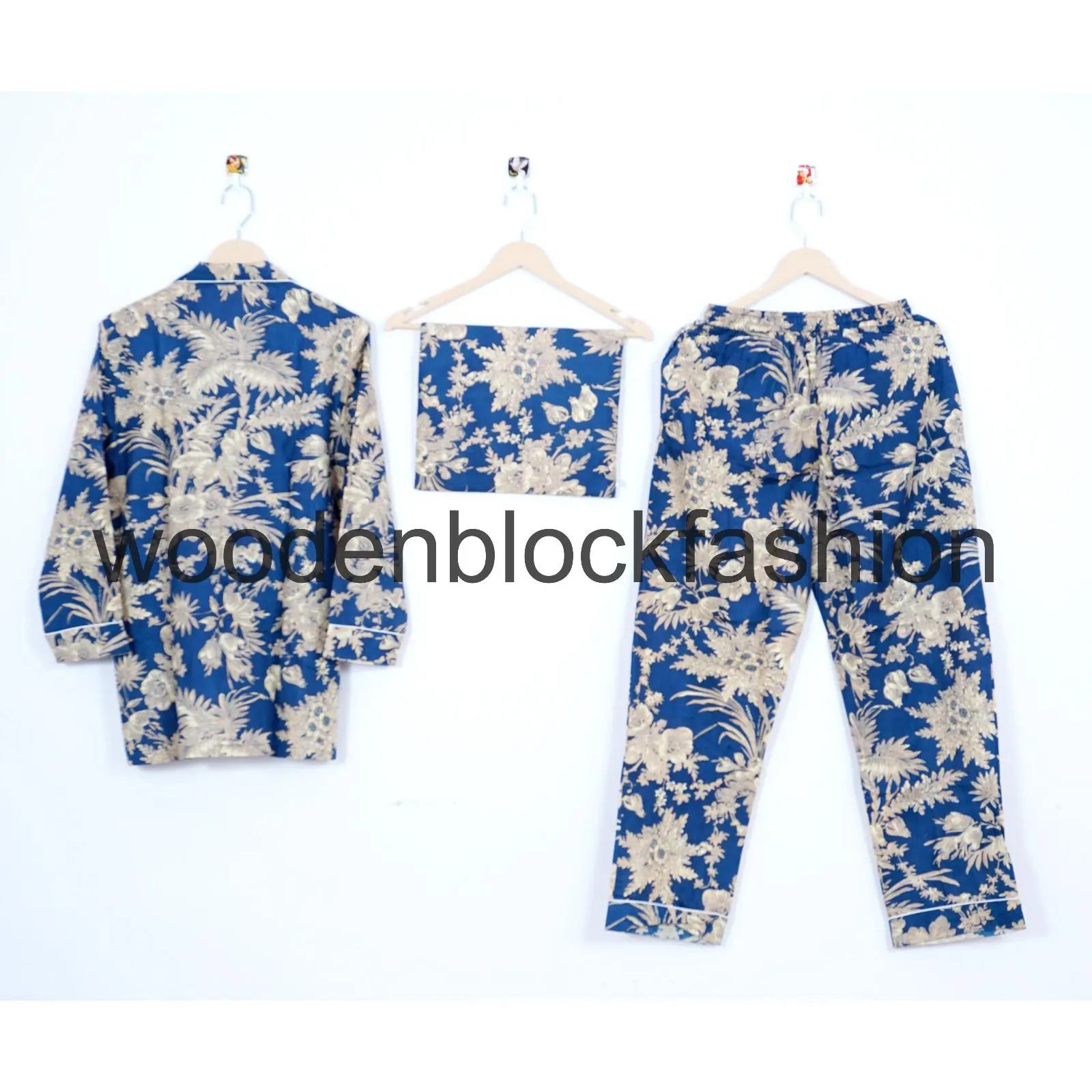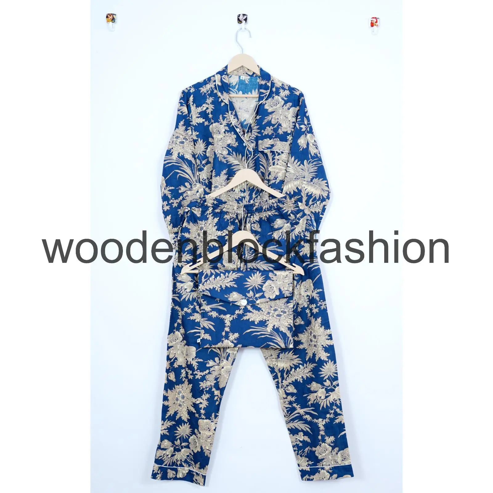 Indian Block Print Cotton Pajama Set for Women, Floral Loungewear Night Suit