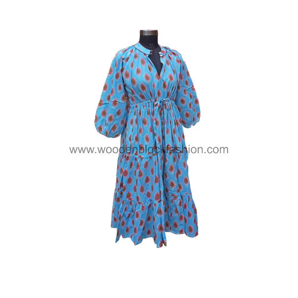 Block Printed Cotton Summer Maxi Dress