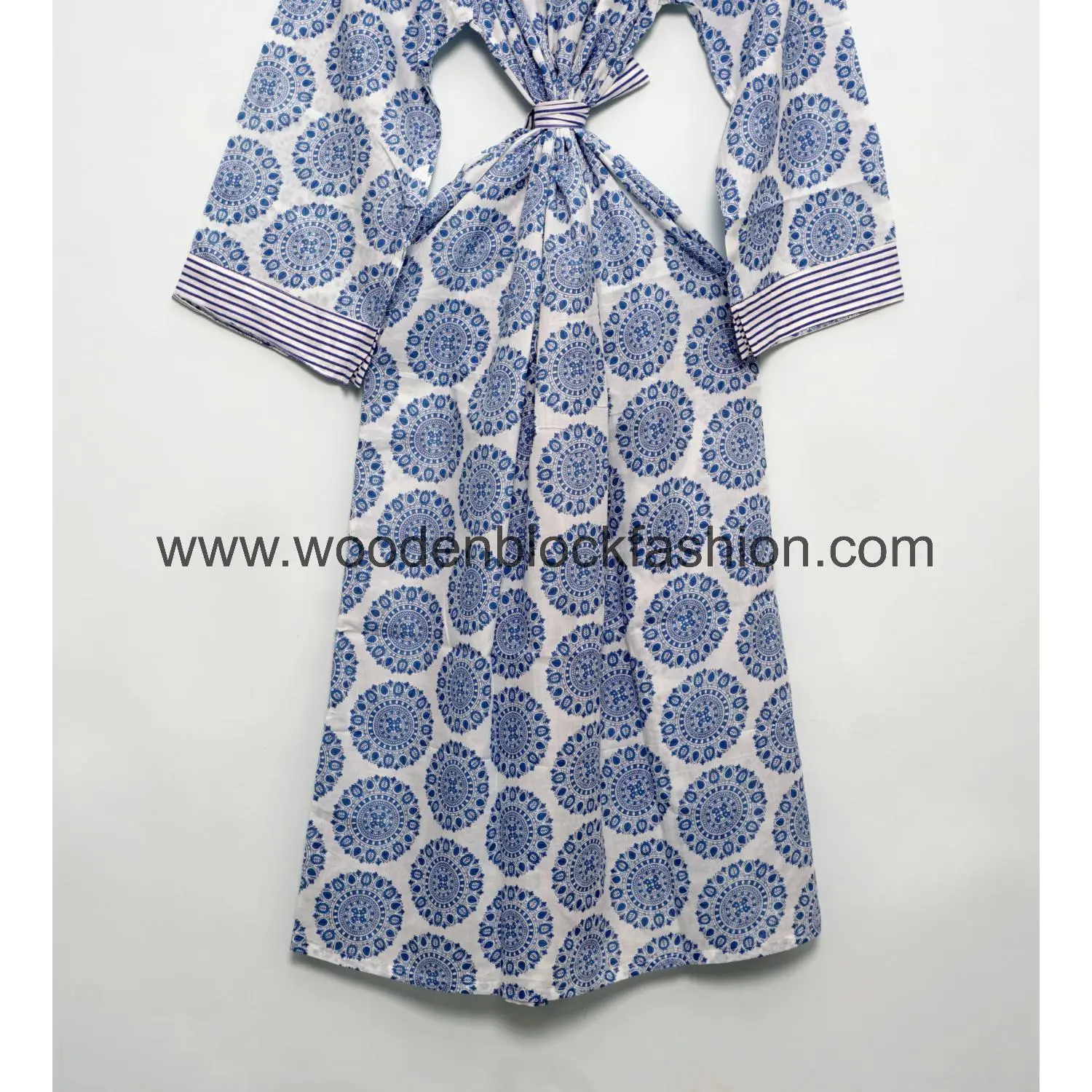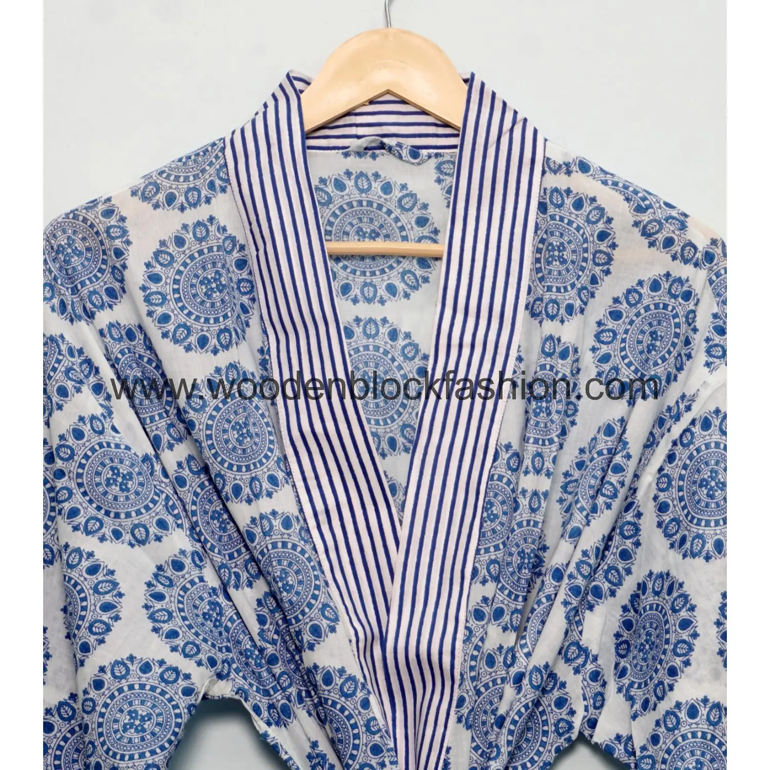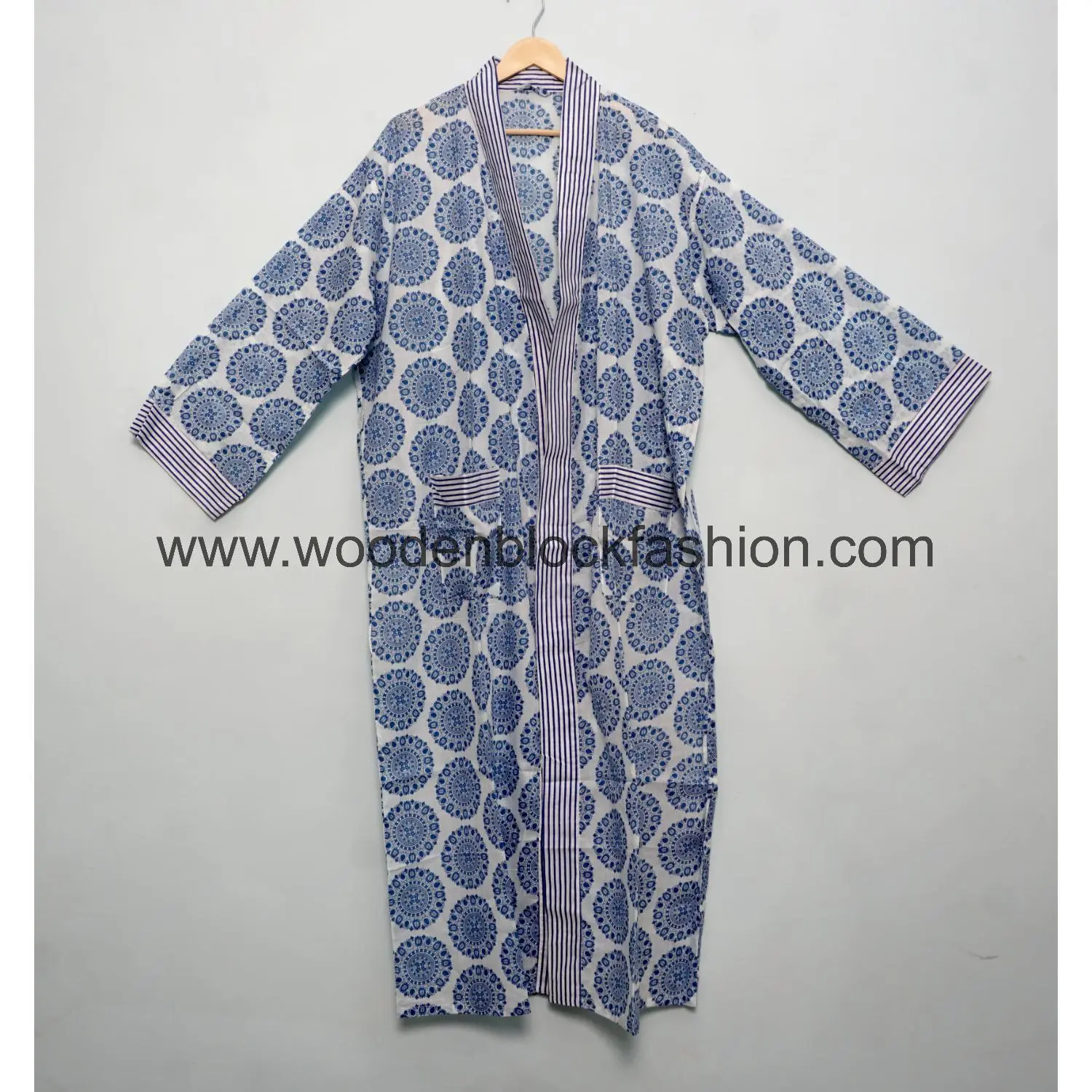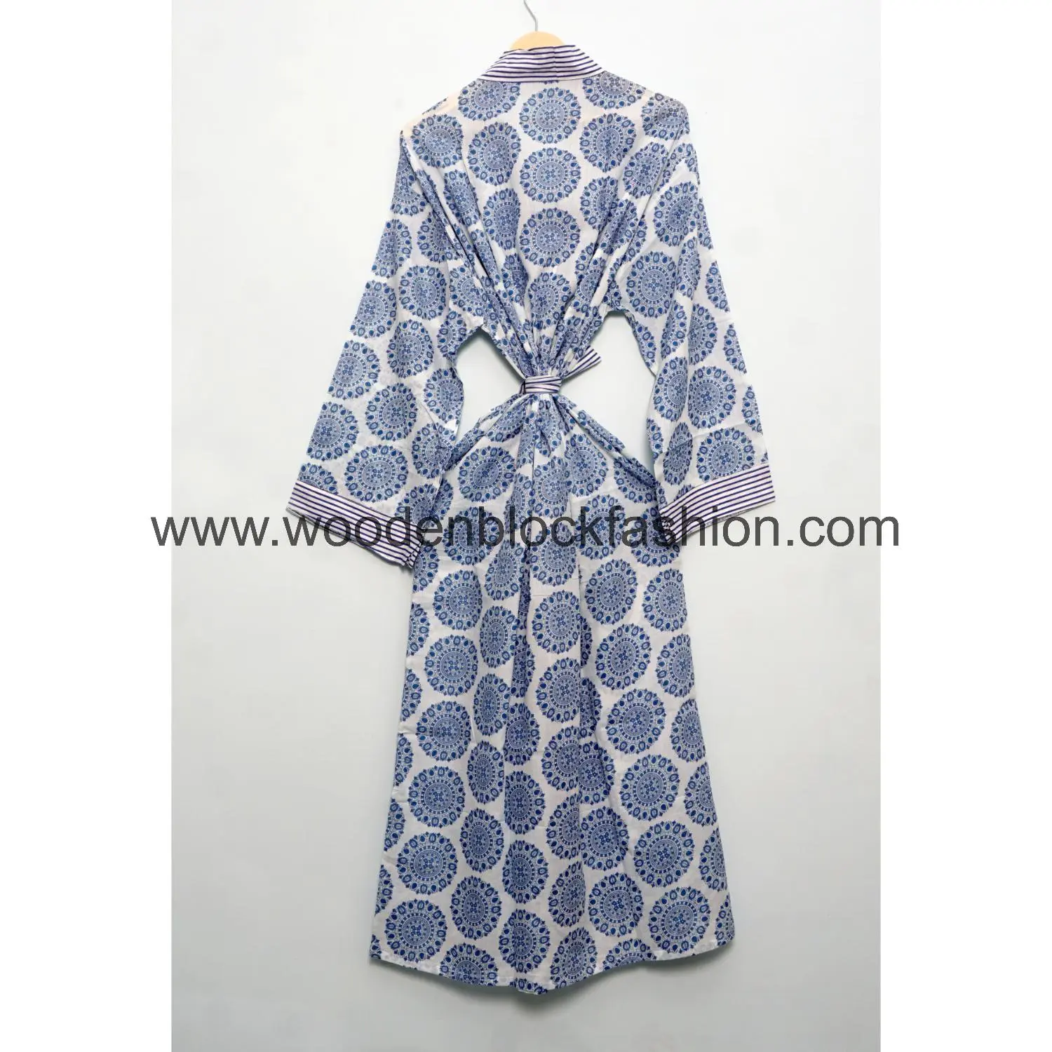 This floral lounge robe is crafted from pure cotton and decorated with delicate block prints. Comfortable and breathable, it’s perfect for relaxed home wear and summer mornings.
