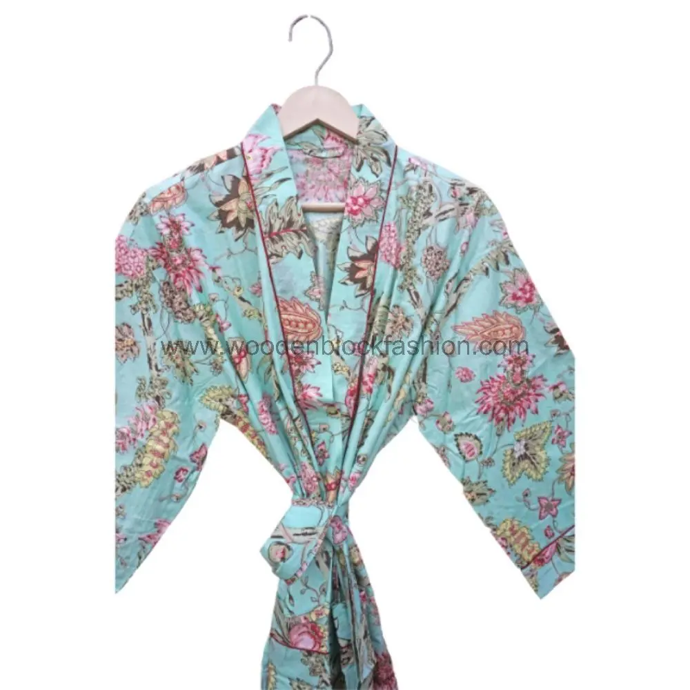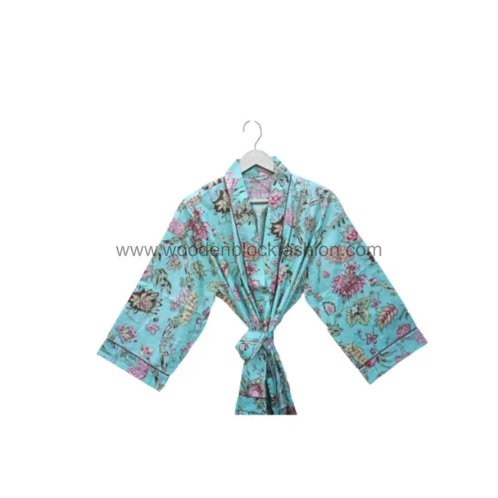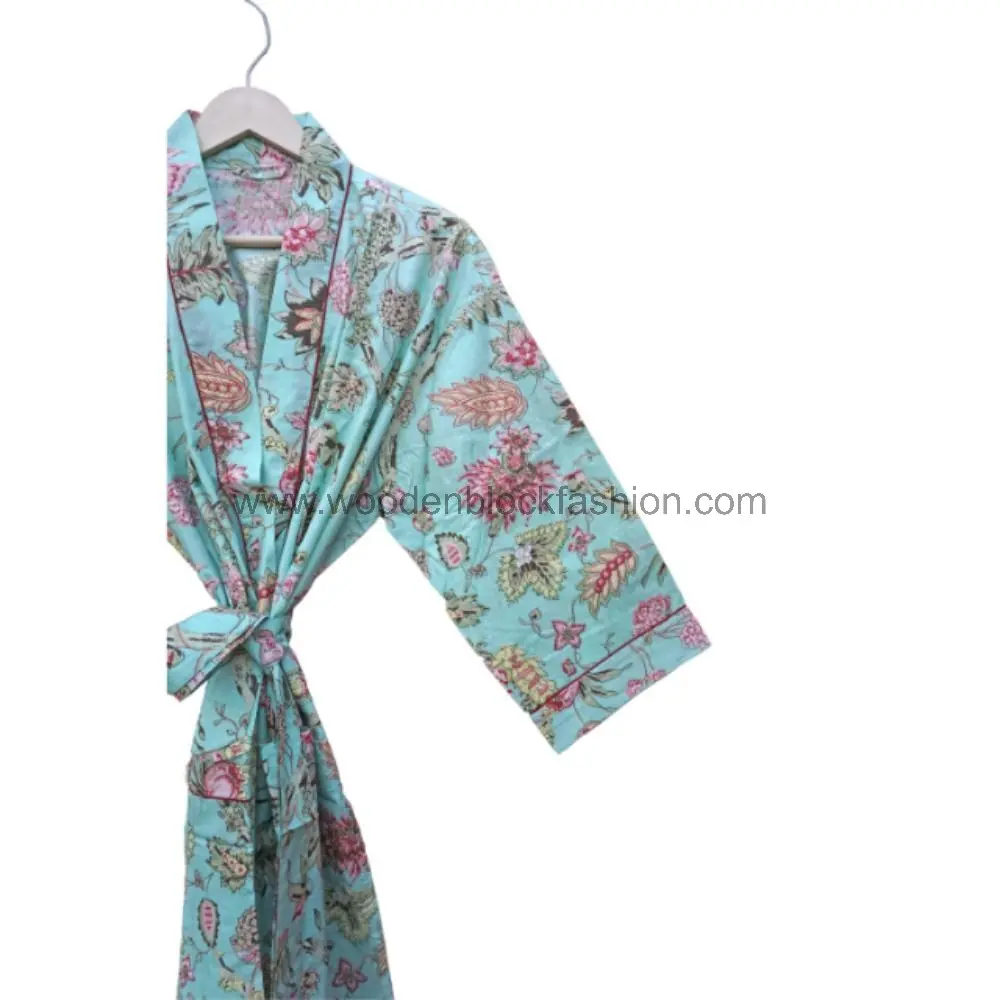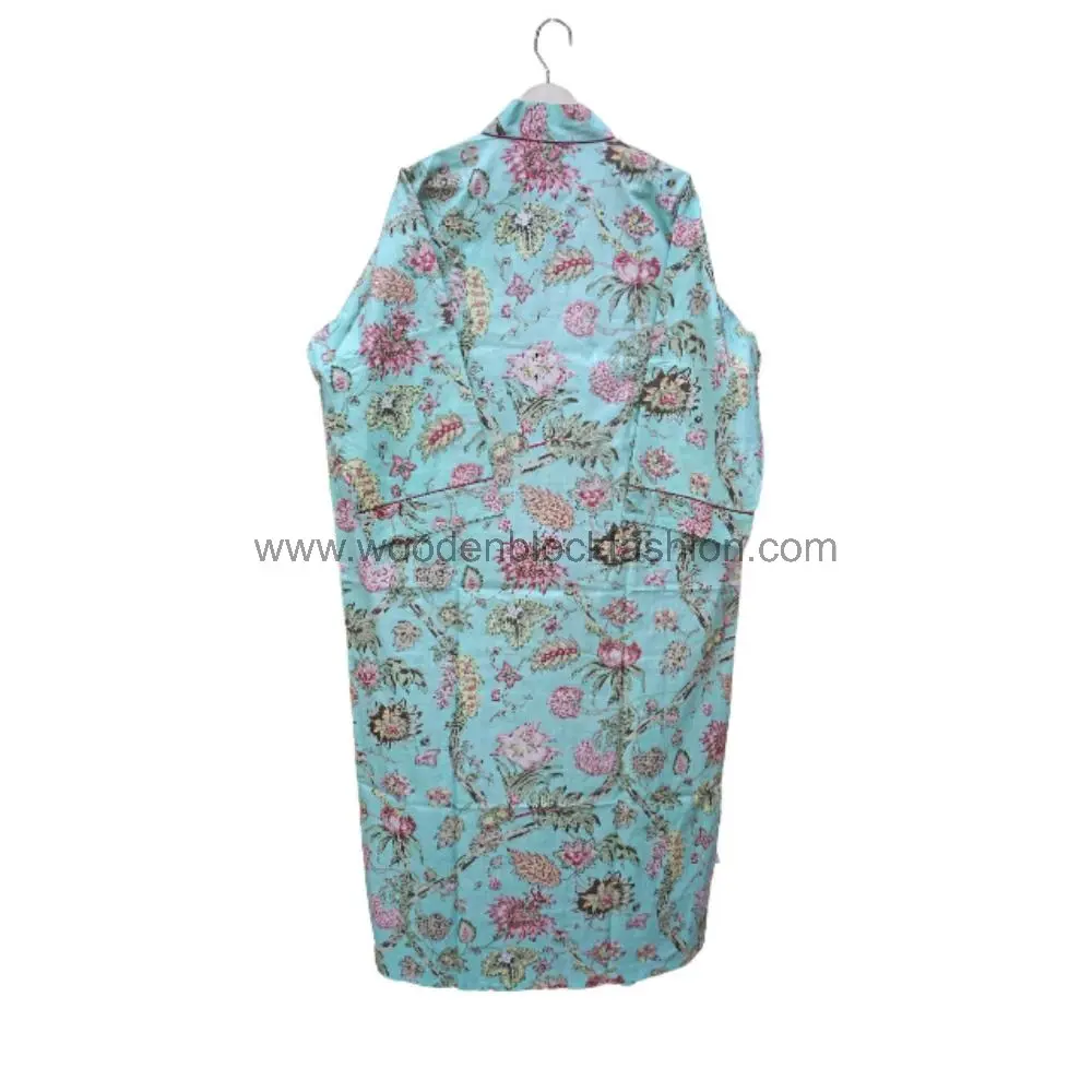 Long Hand Block Print Cotton Kimono Dressing Gown