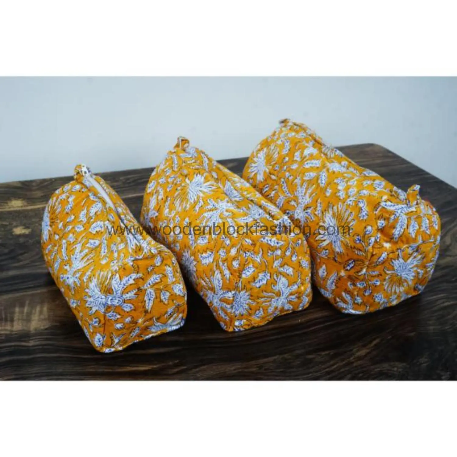 Quilted cosmetic bag trio keeps your essentials neatly stored.