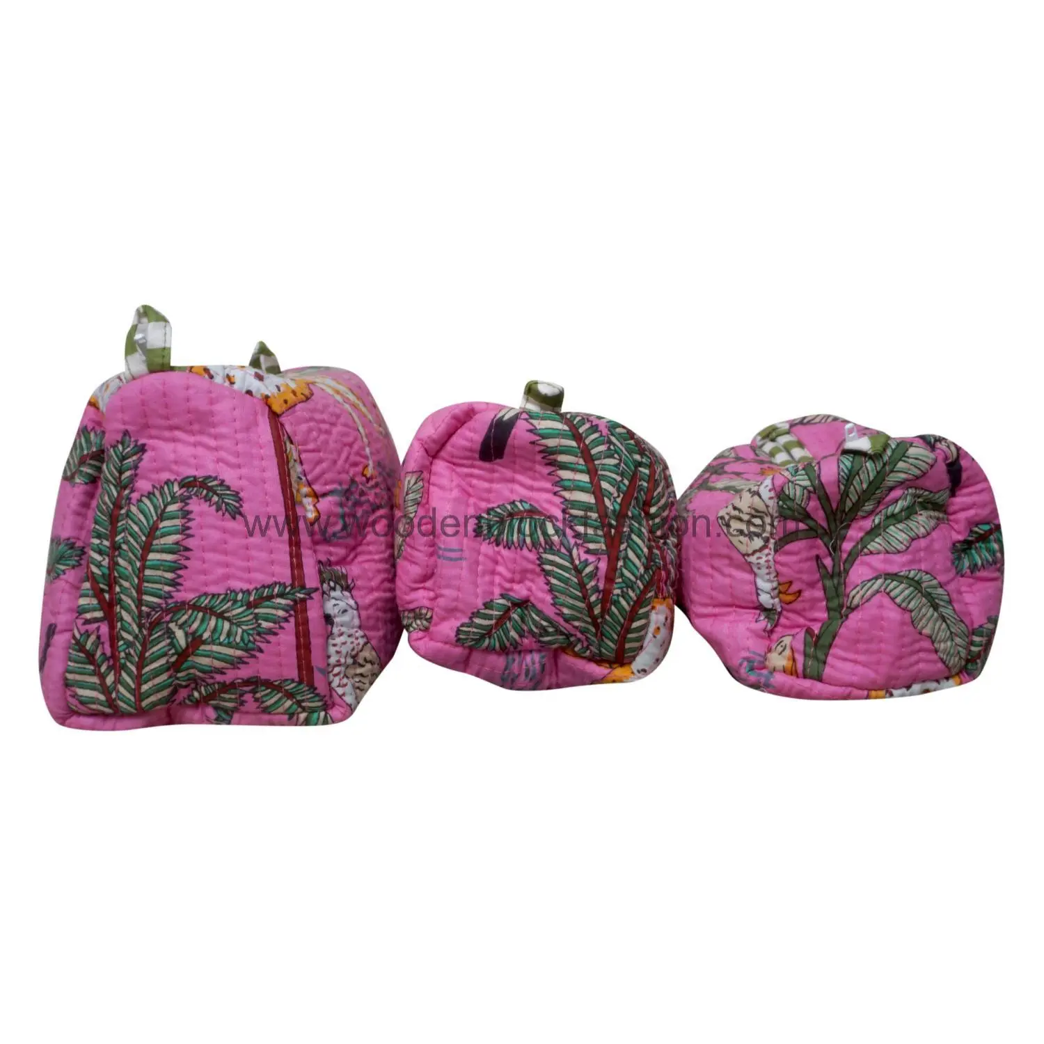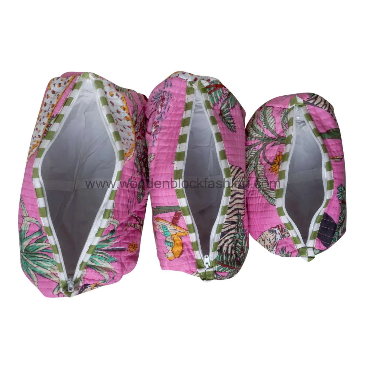 Handmade Quilted Block Print Cosmetic Pouches | Travel Makeup Storage Set