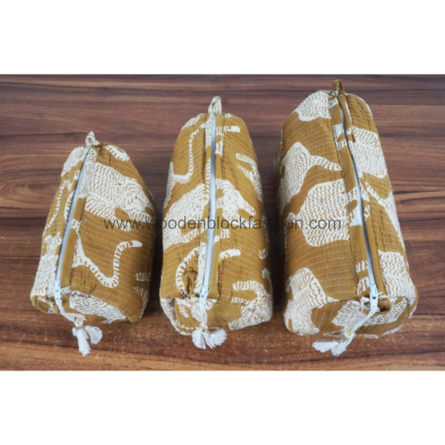 Handmade Block Print Travel Makeup Organizer – 3 Bags
