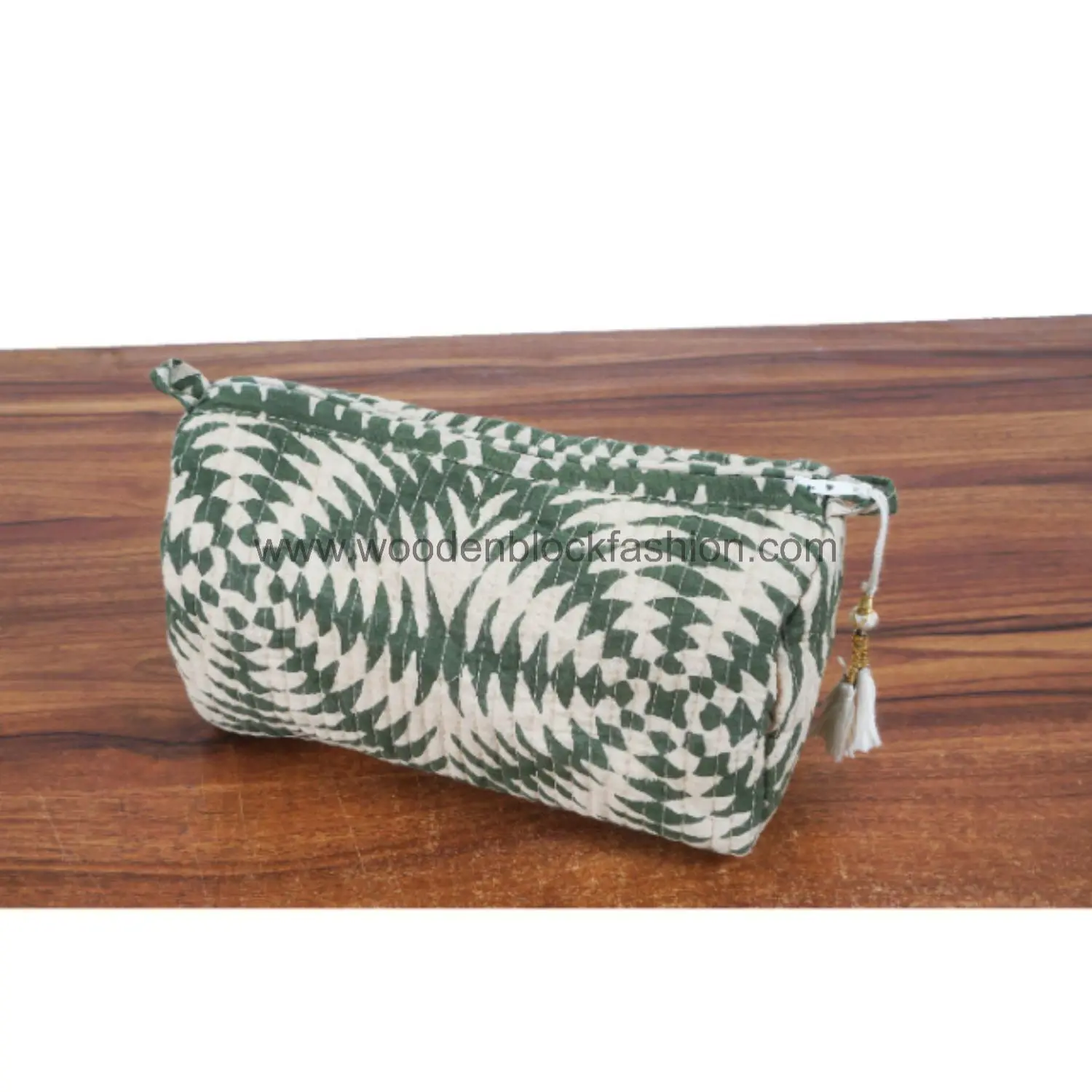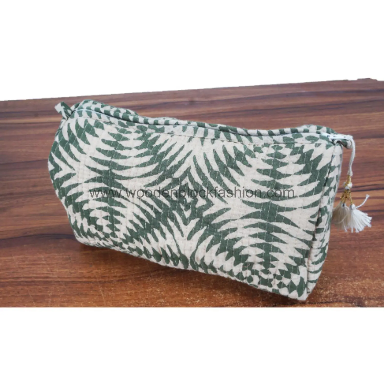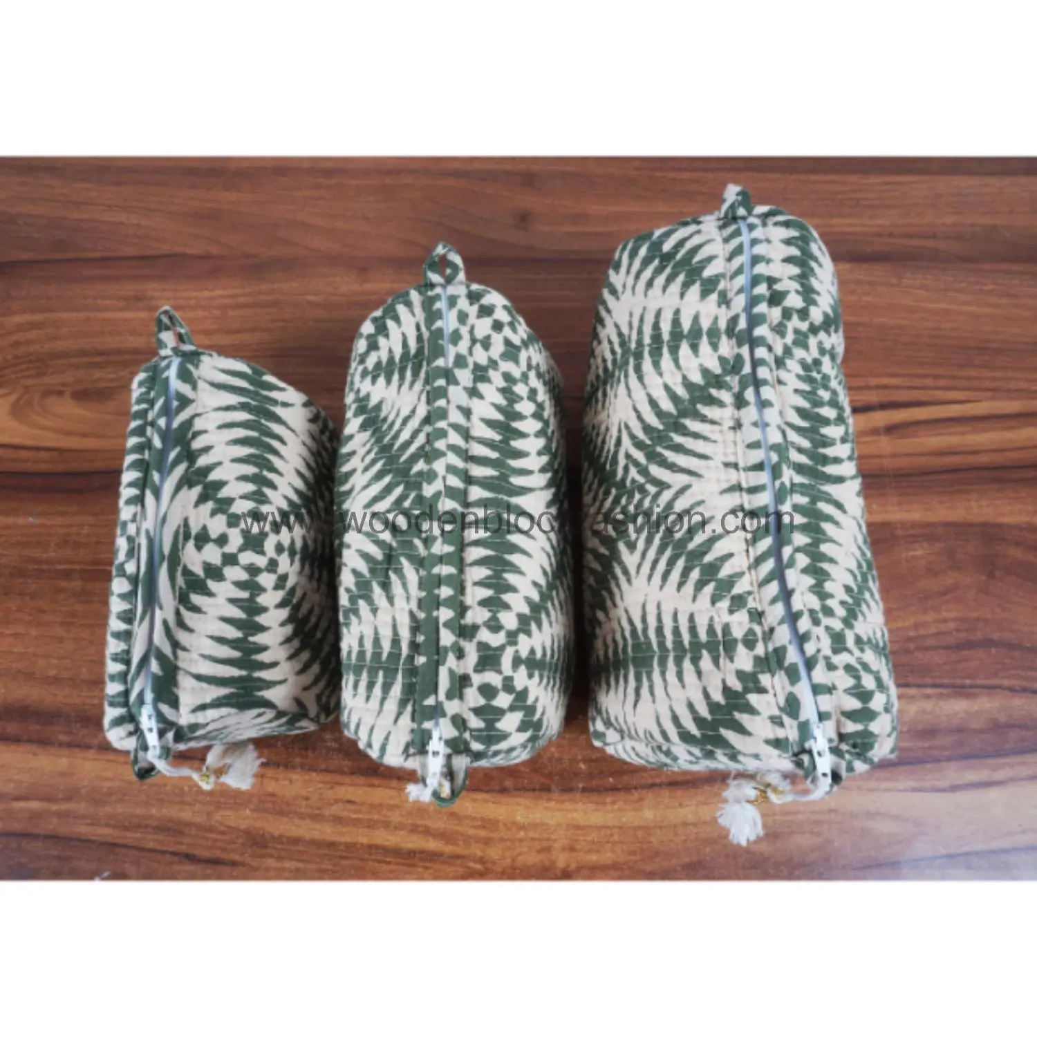 Handmade Quilted Cosmetic Organizer – Block Print Trio
