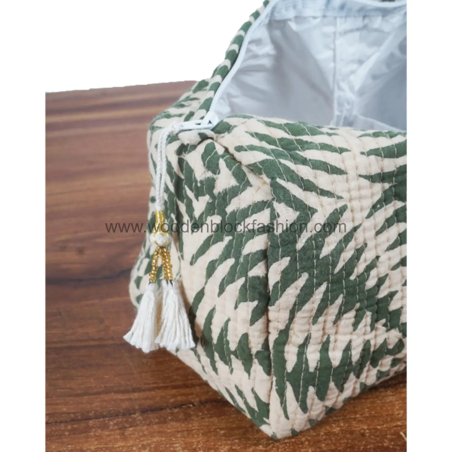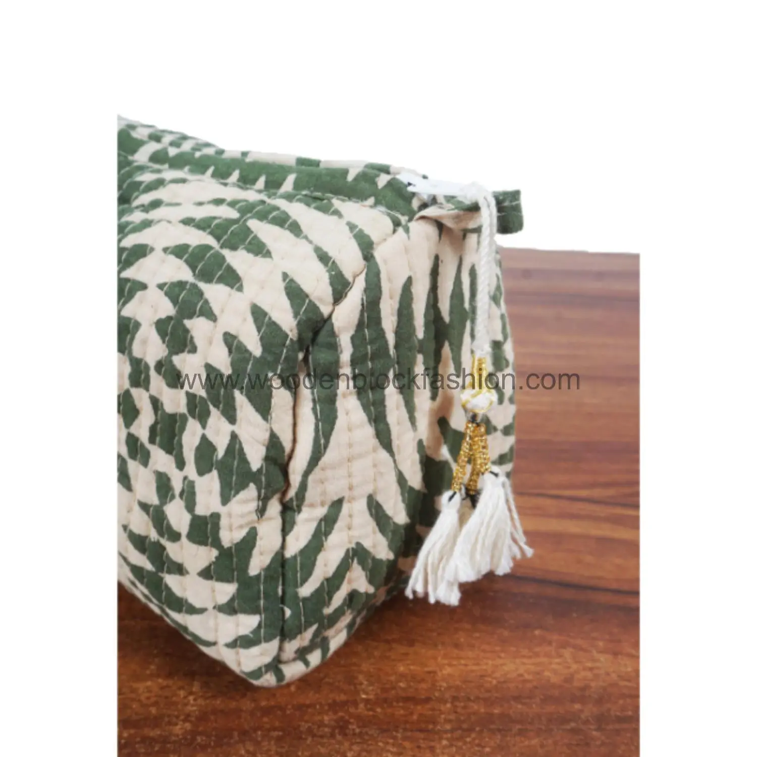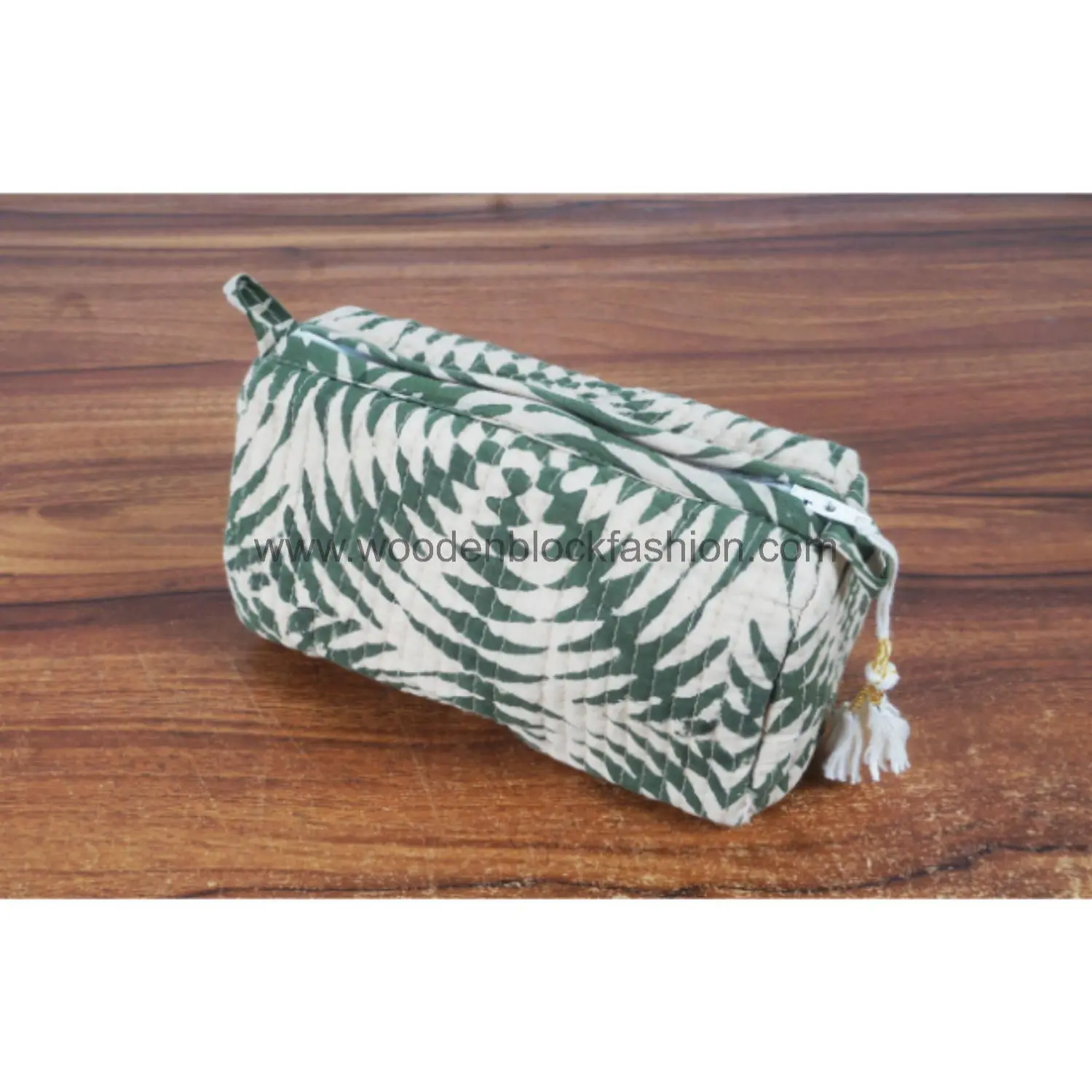 Handmade Quilted Cosmetic Organizer – Block Print Trio