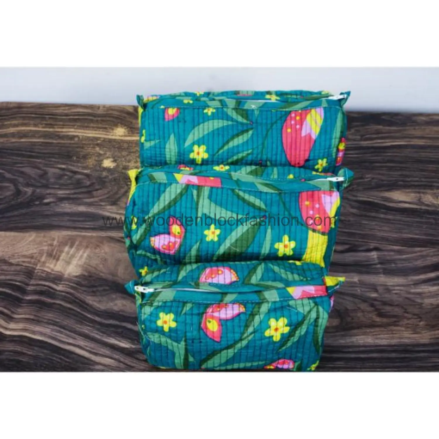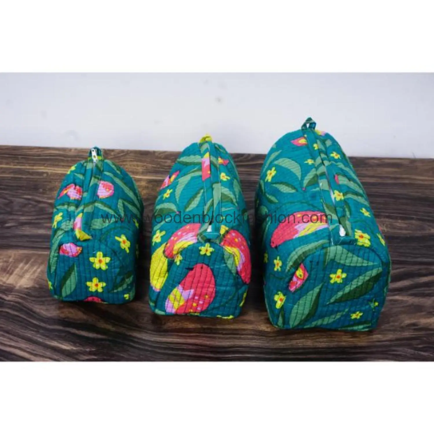 Block Print Quilted Makeup Bag Trio – Travel Organizer
