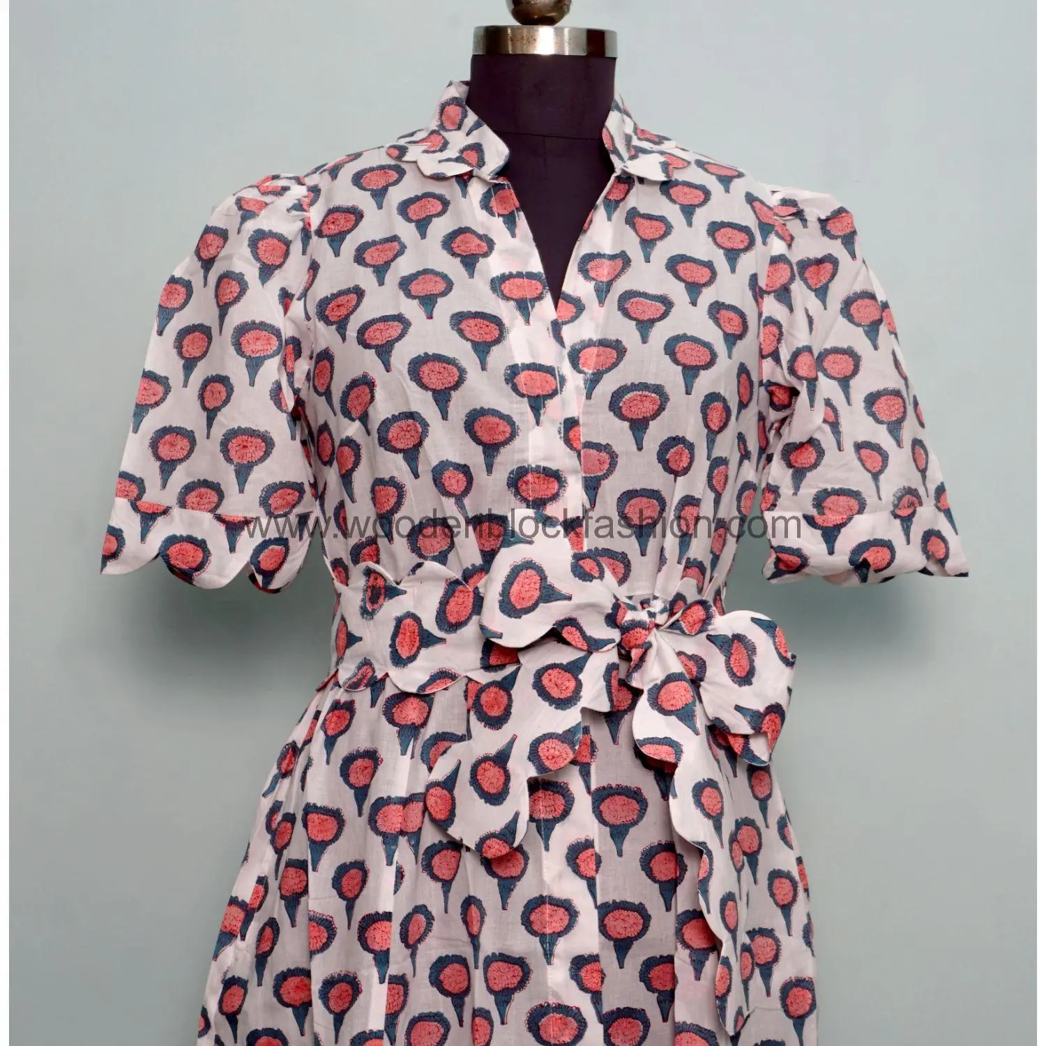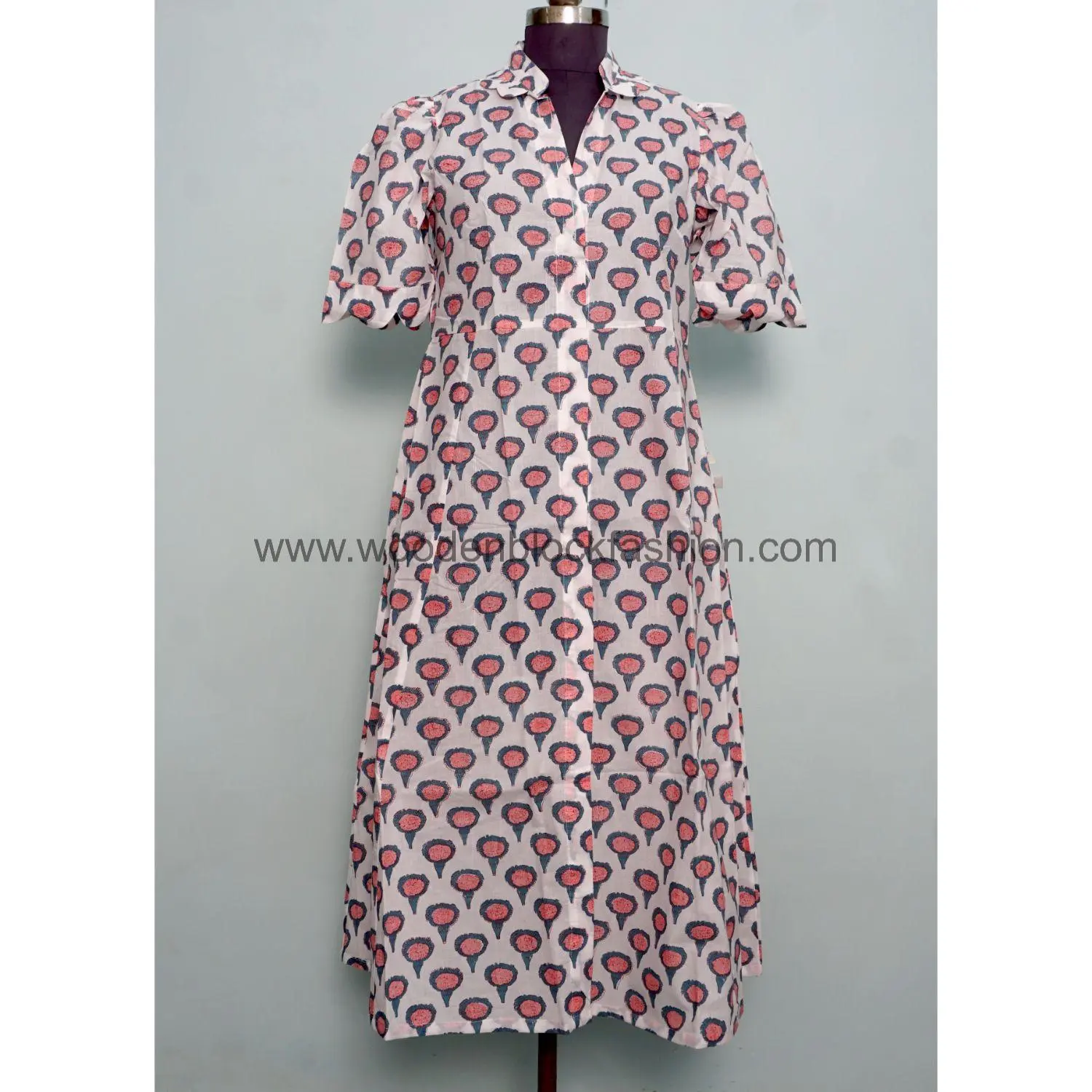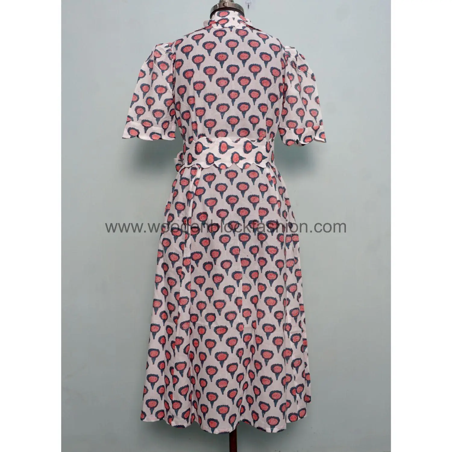 Soft-touch cotton floral midi dress with breathable and washable fabric.