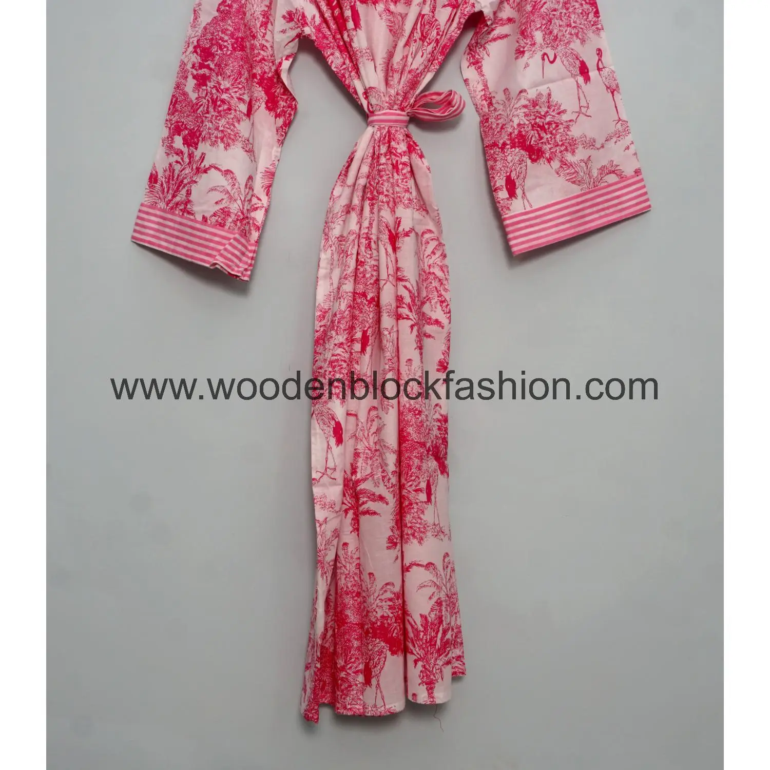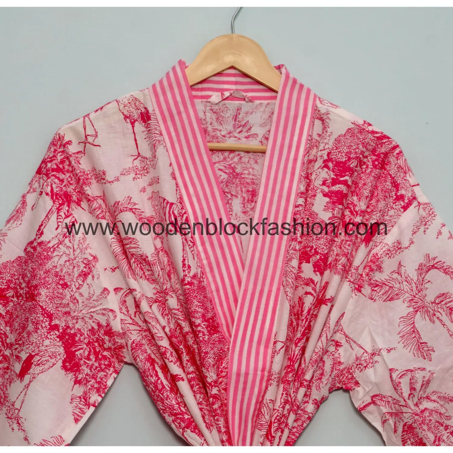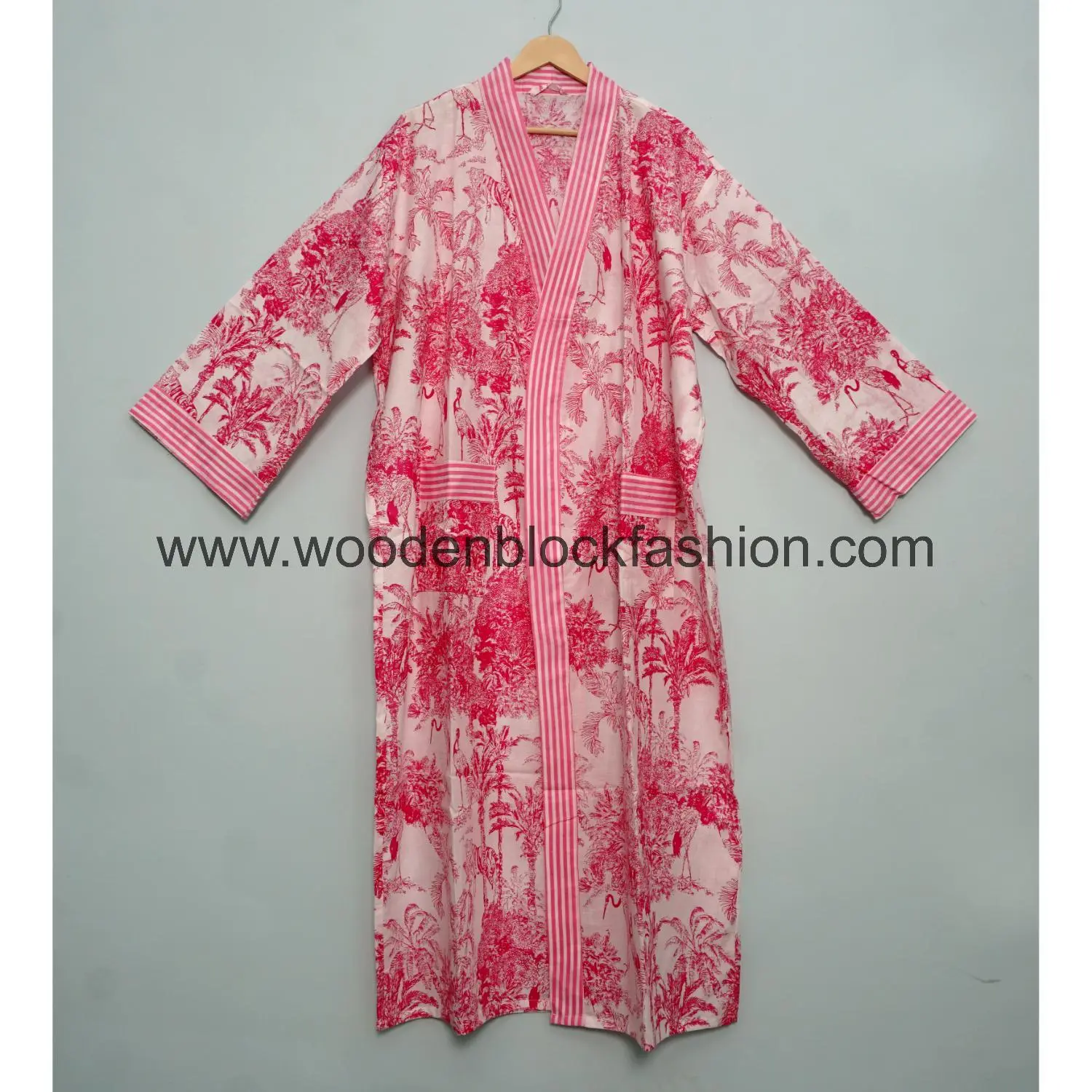 Crafted from soft cotton, this kimono offers breathability and ease. Its classic block print design makes it suitable for daily home wear.
