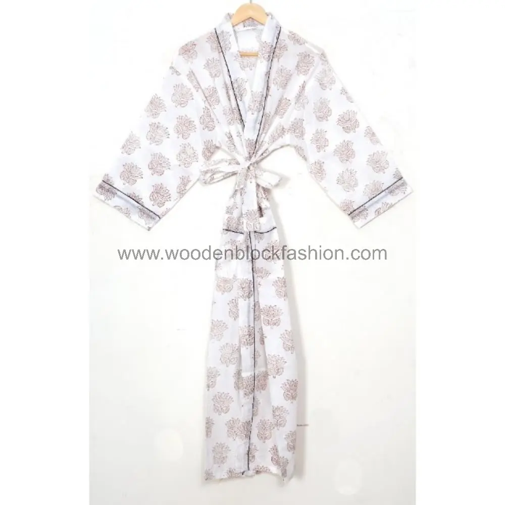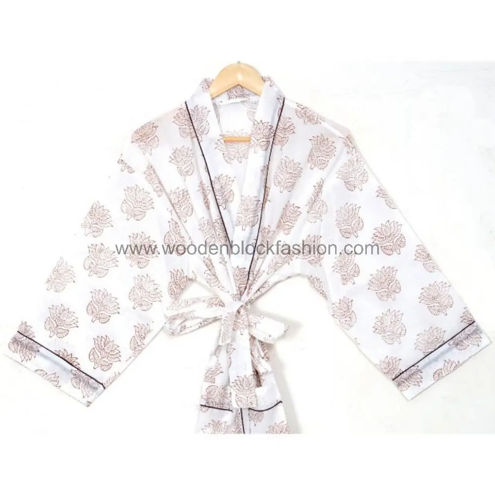 Soft Cotton Block Print Kimono Robe – Bridesmaid Gift Dressing Gown