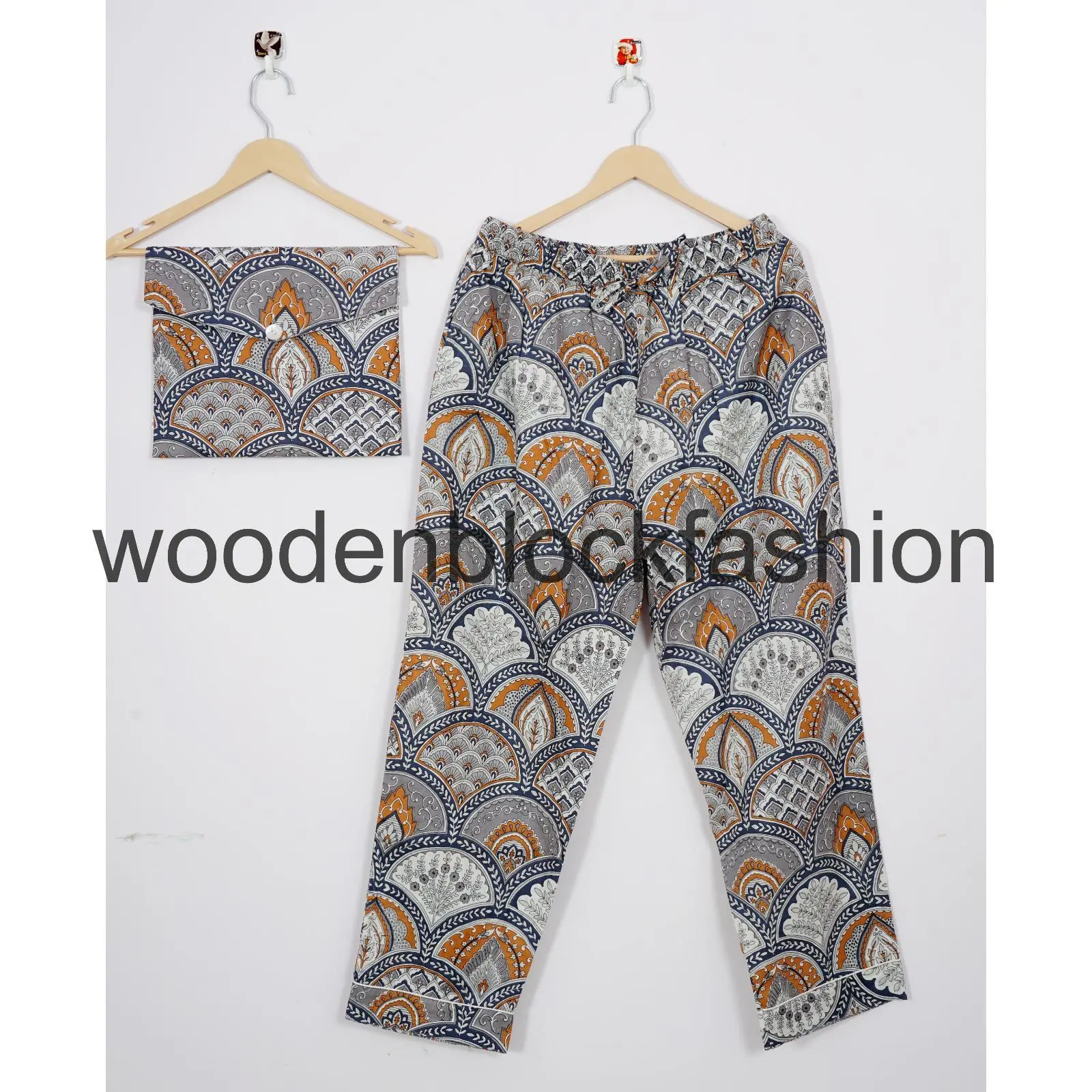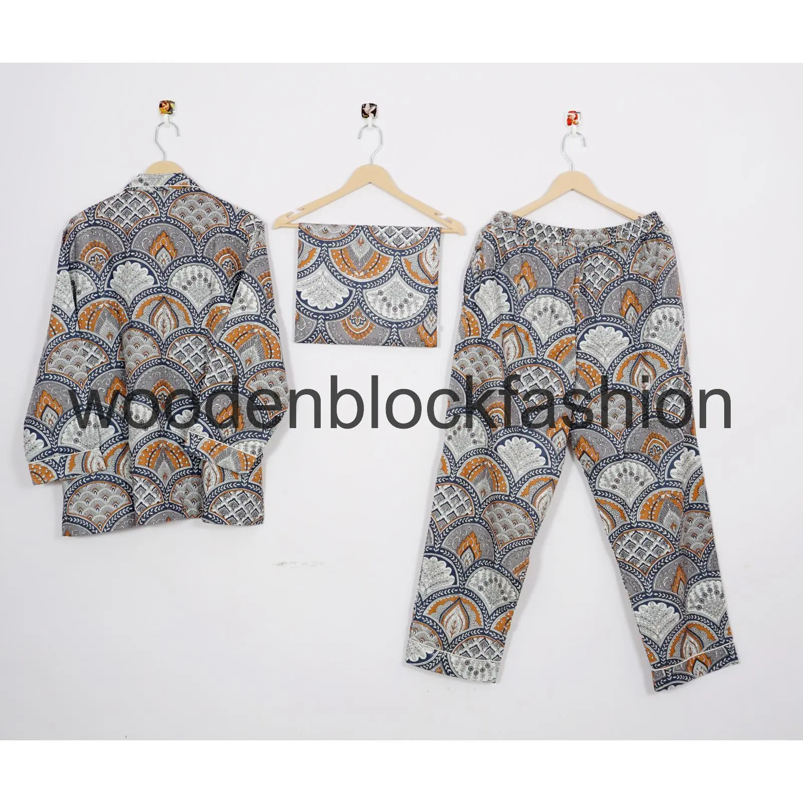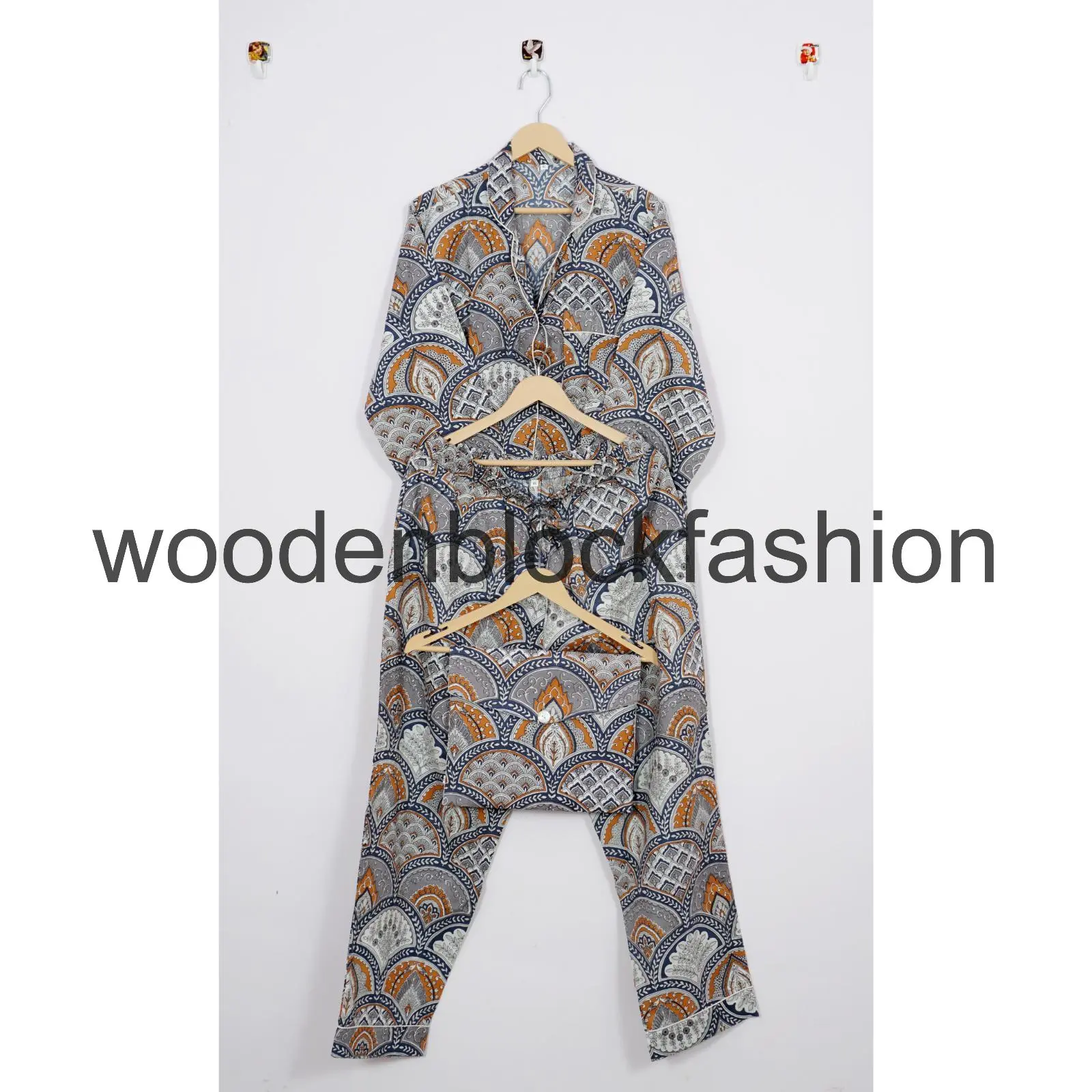 Ikat Print Cotton Pajama Set, Handmade Indian Night Dress
