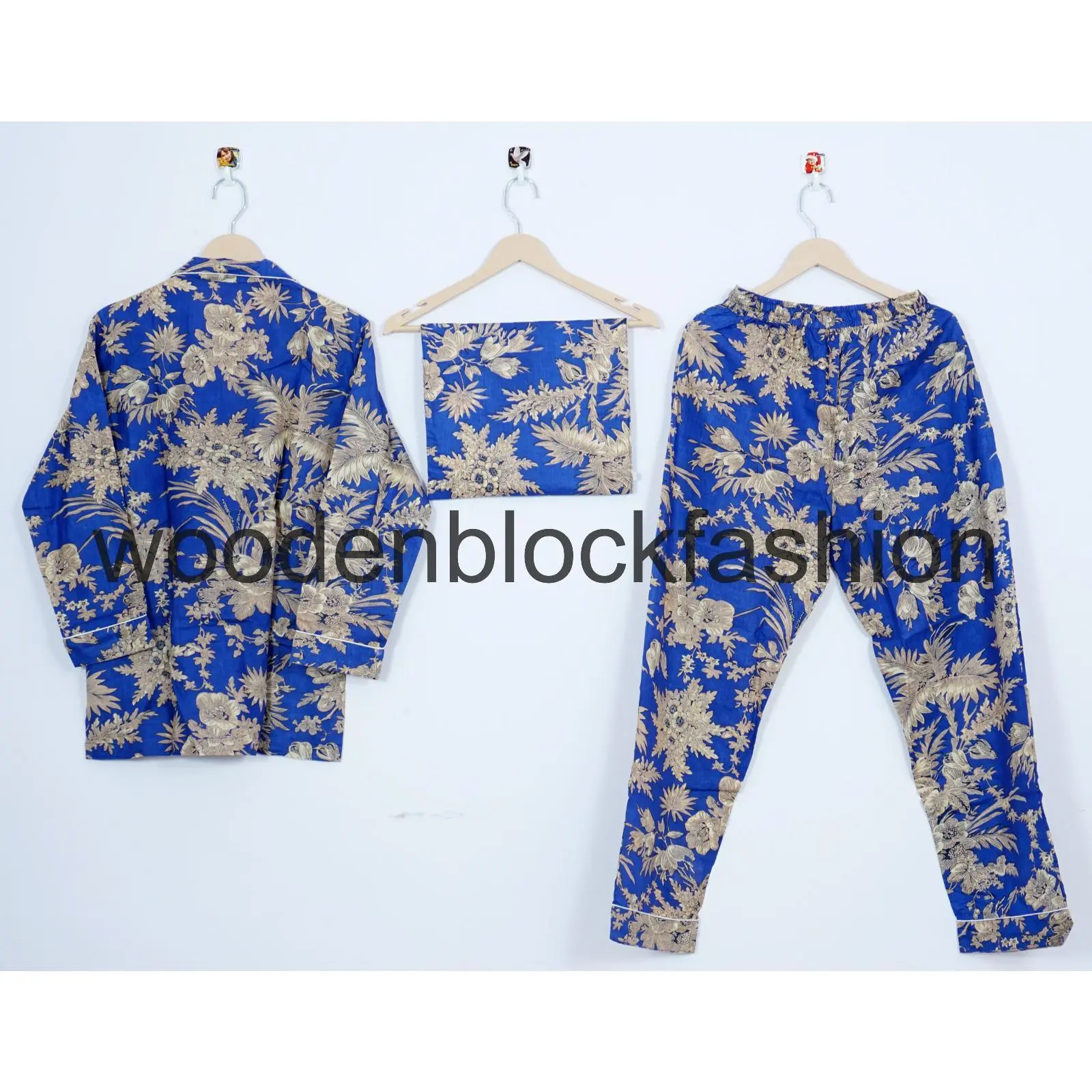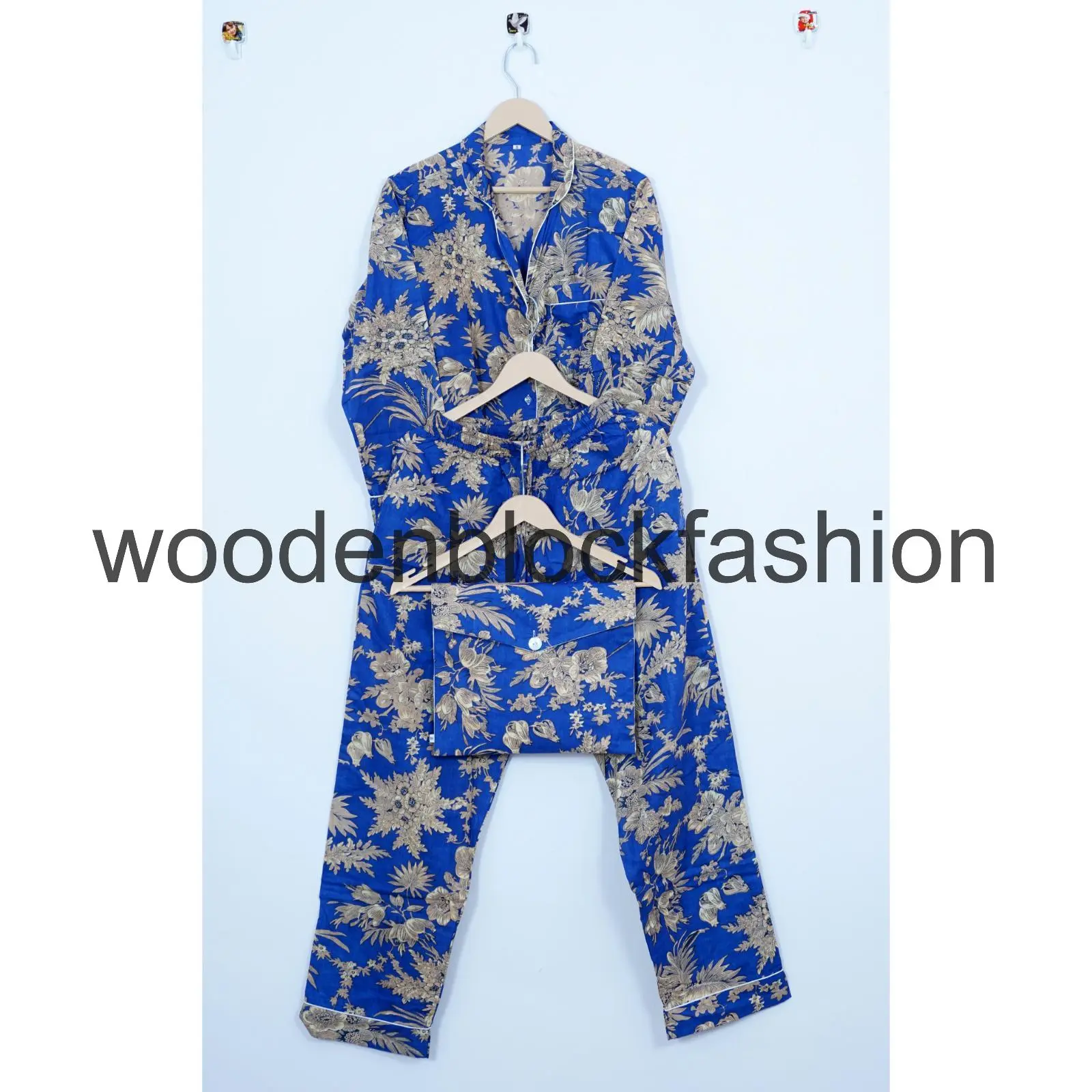 Luxury Floral Printed Pyjama Set, Women's Cotton Loungewear, Comfortable Night Suit