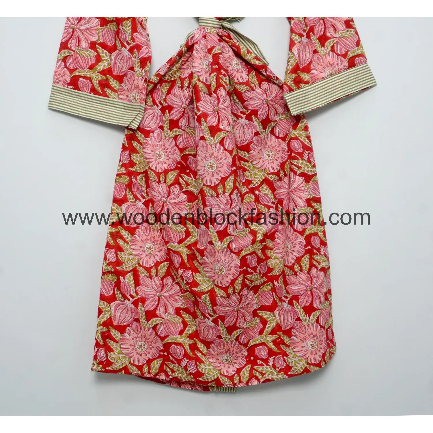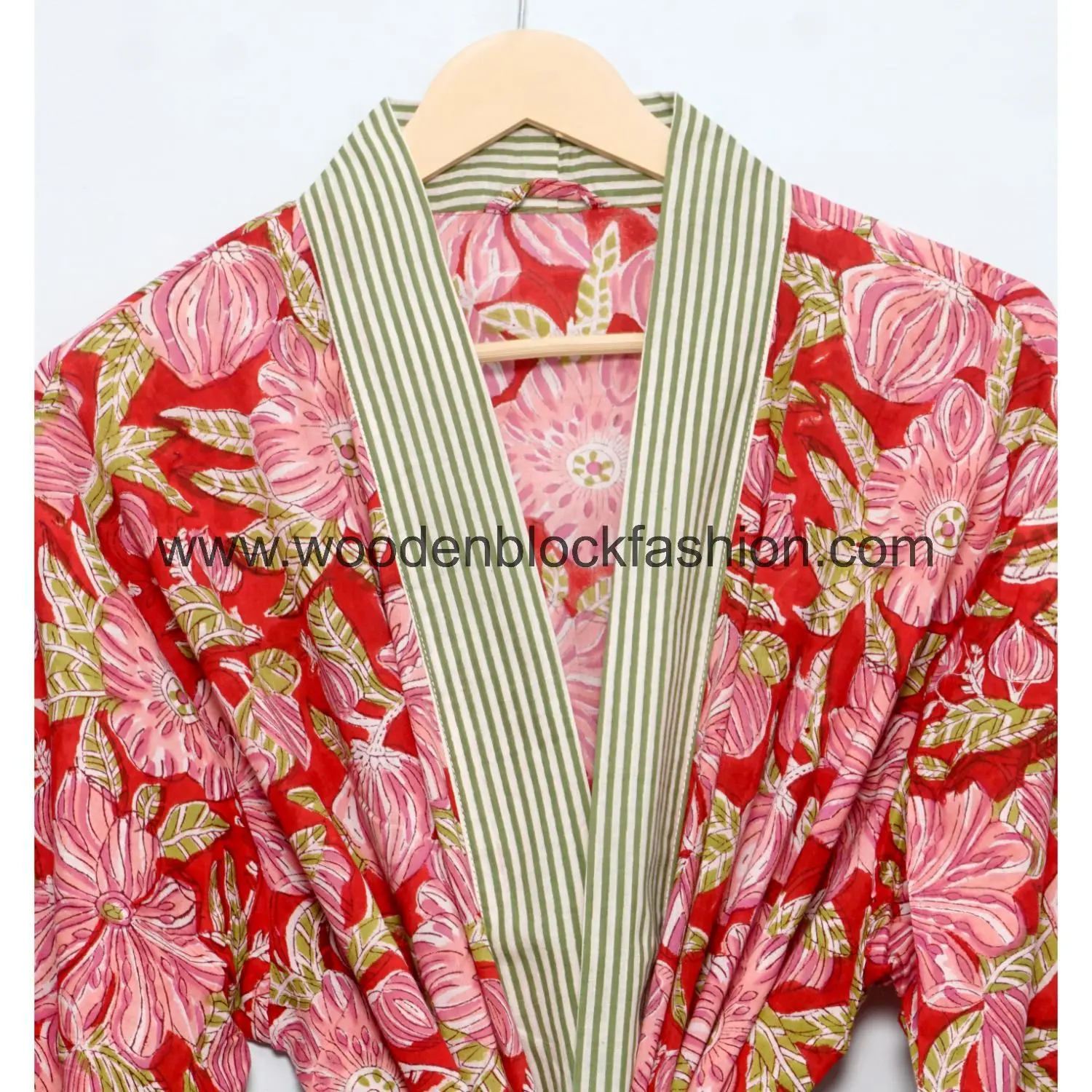 Made from pure cotton, this kimono robe features soft floral block prints. Ideal for spring and summer, it works as a house robe, beach coverup, or casual outerwear.