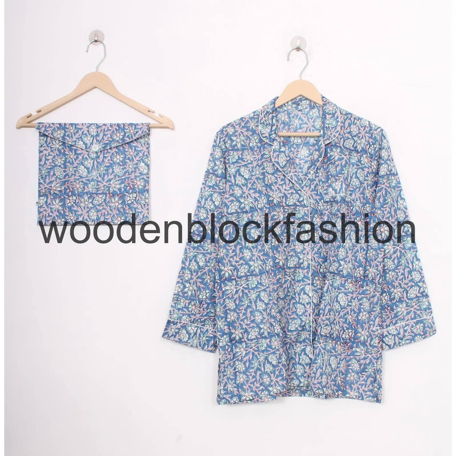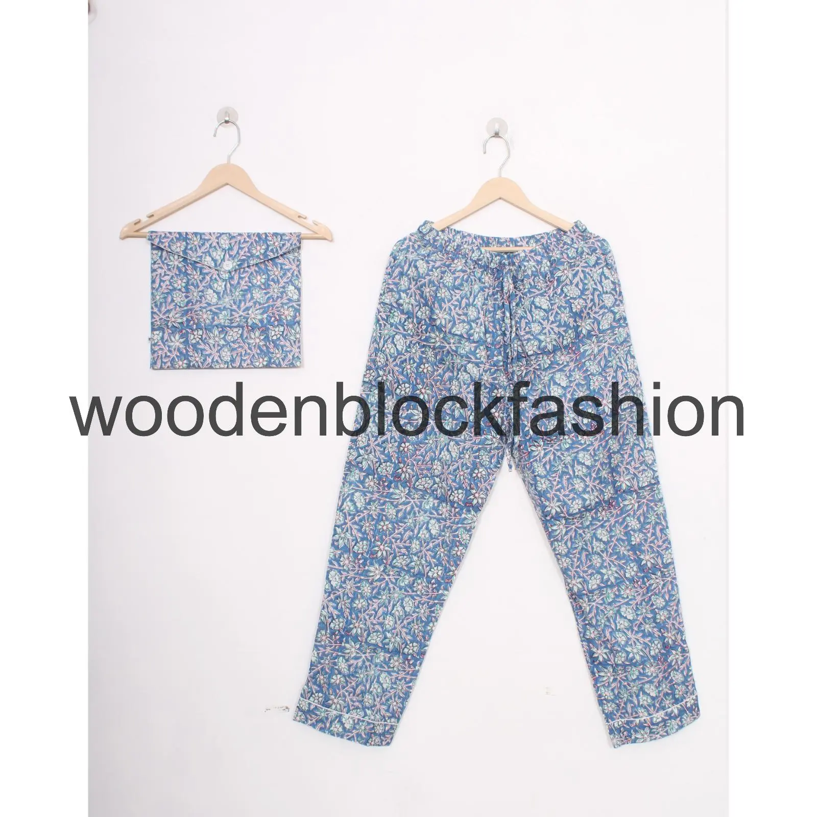 Soft Cotton Pajamas, Hand Block Print Pants Shirt With Bag