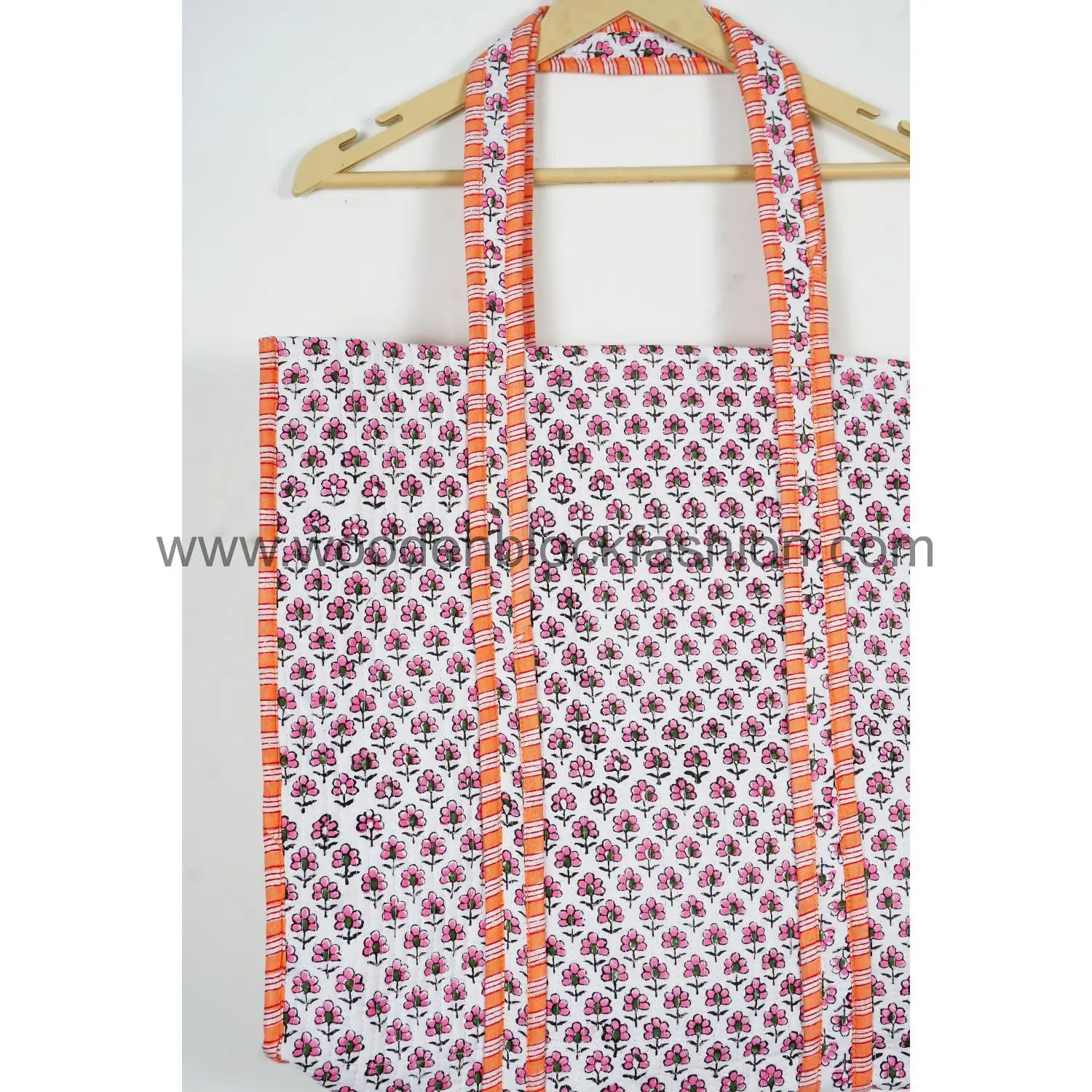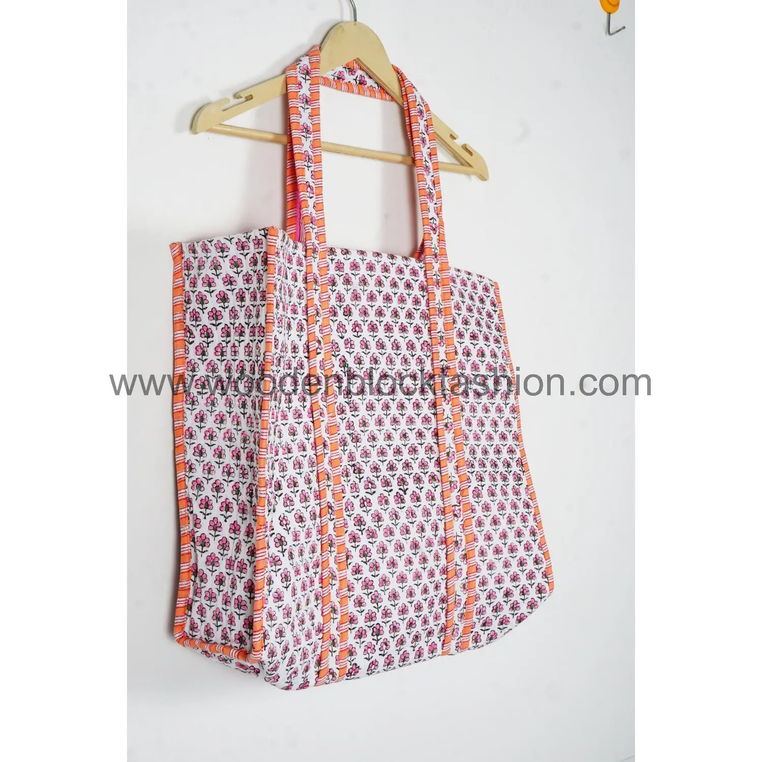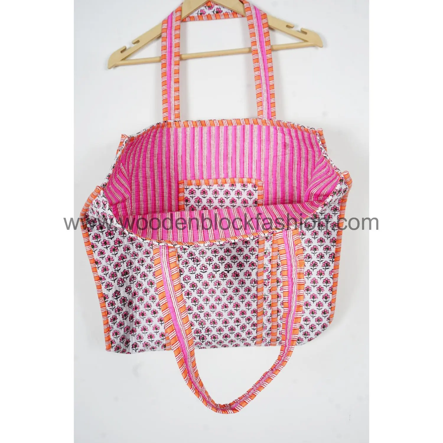 Crafted from premium cotton, this striped Indian quilted tote bag is lightweight, reusable, and perfect for everyday use.