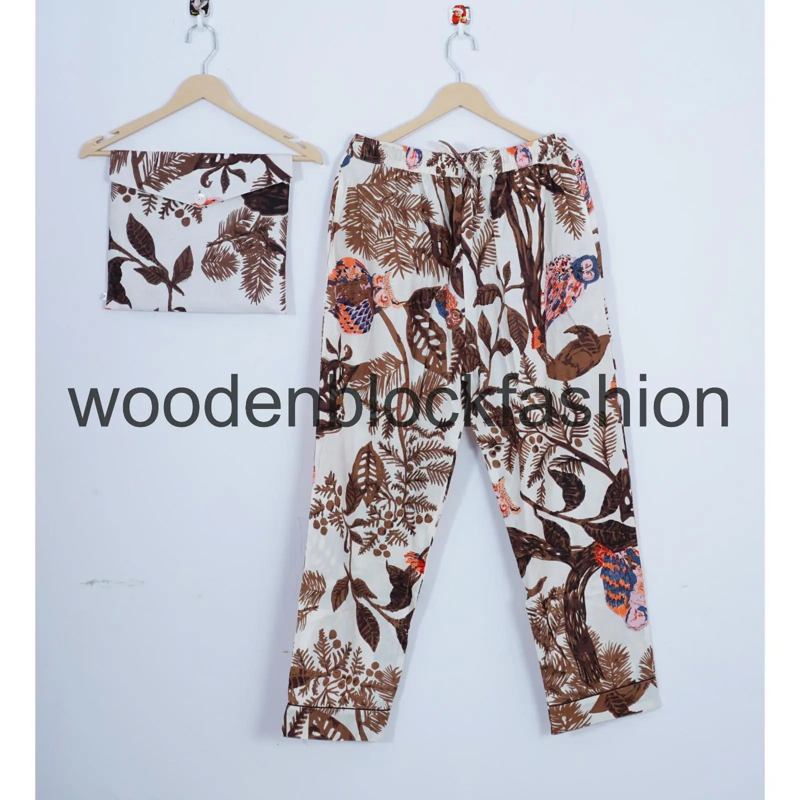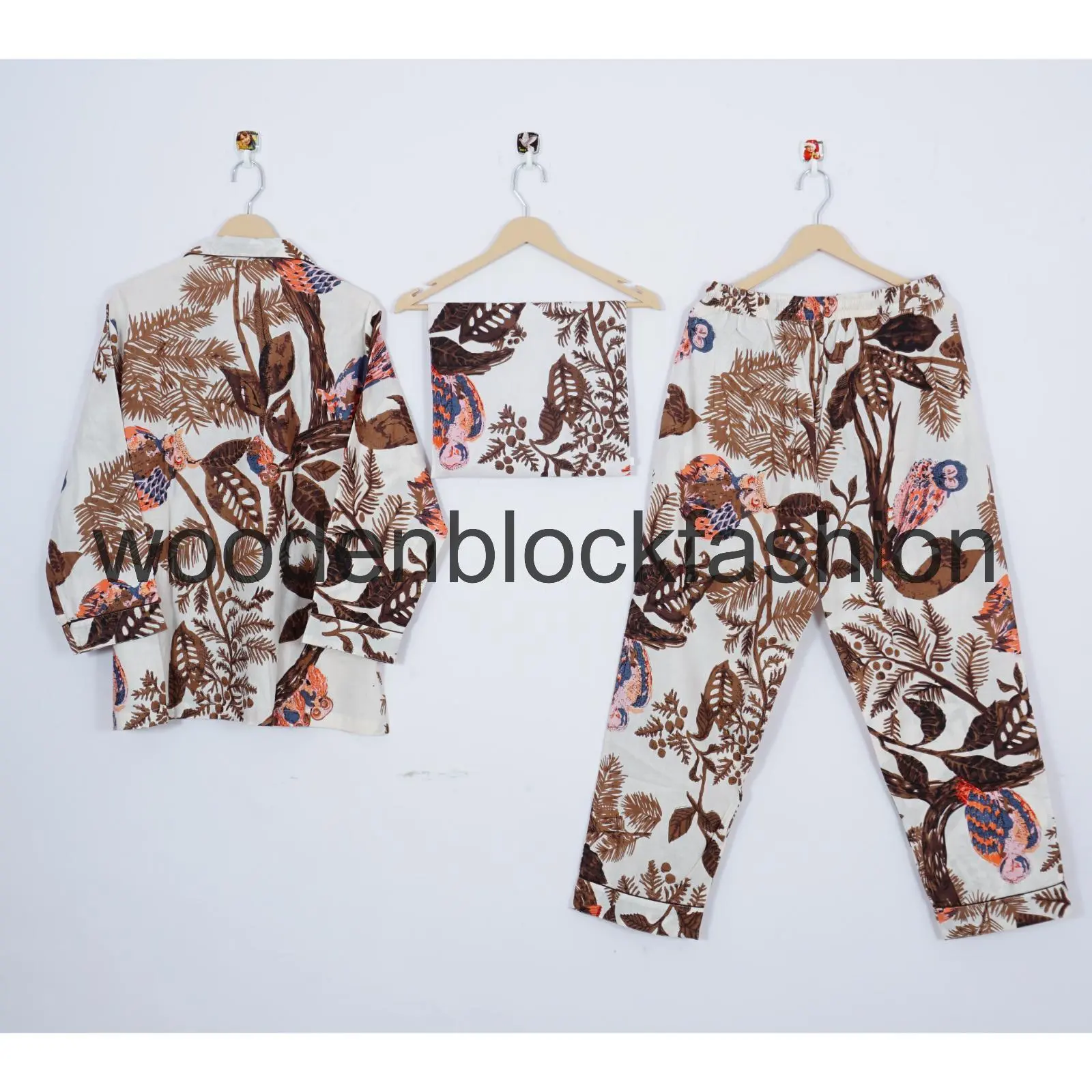Handmade Cotton Night Suit, Owl Print 100% Pure Cotton Pajama Set