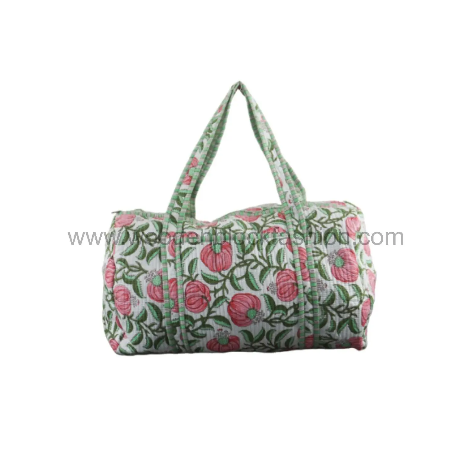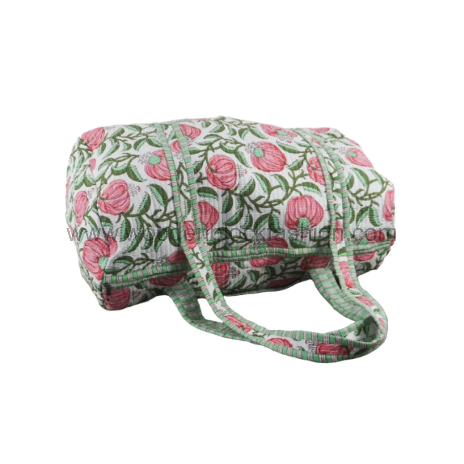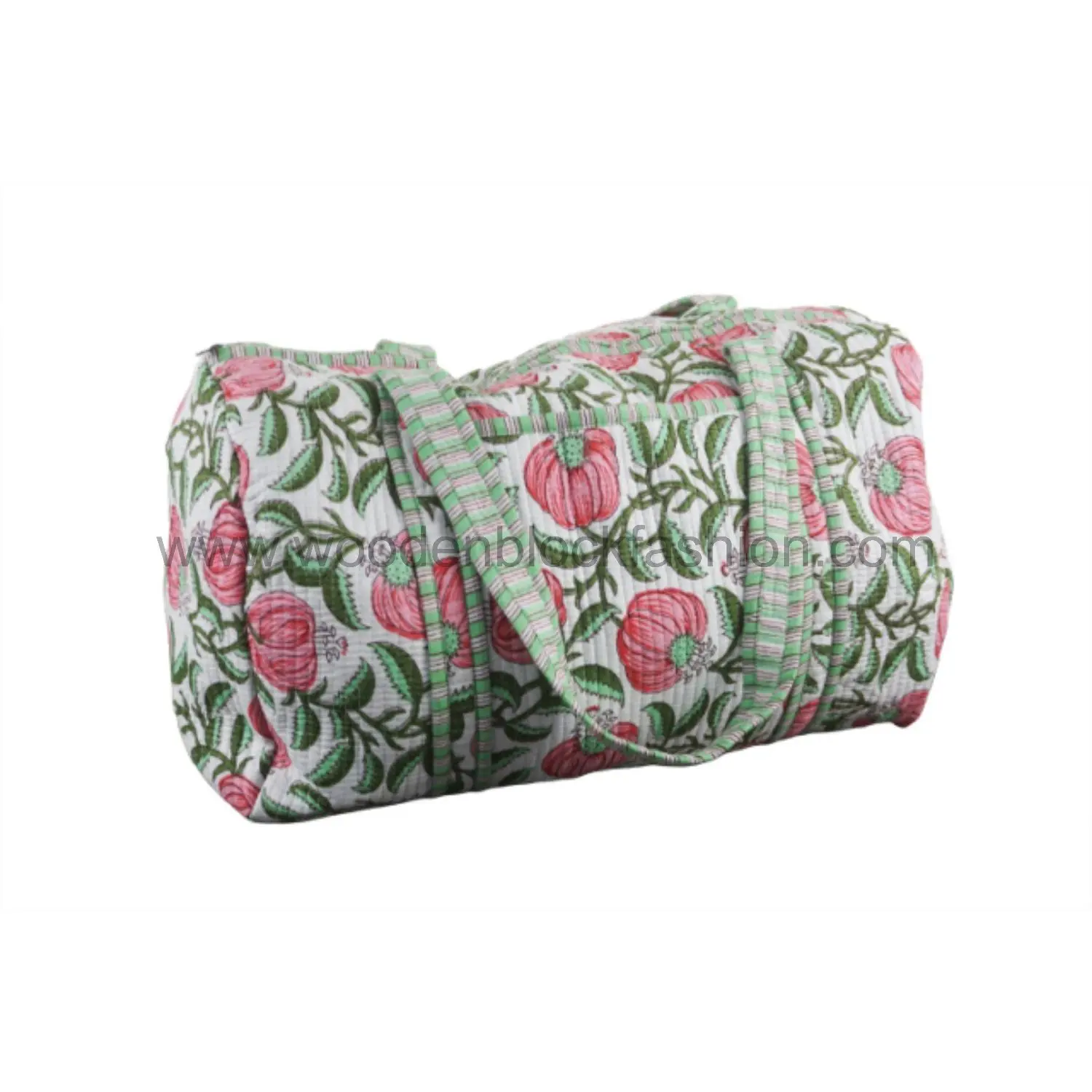 Block Printed Cotton Weekender Bag – Quilted Handmade Travel Duffle