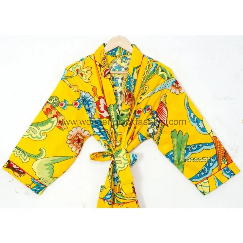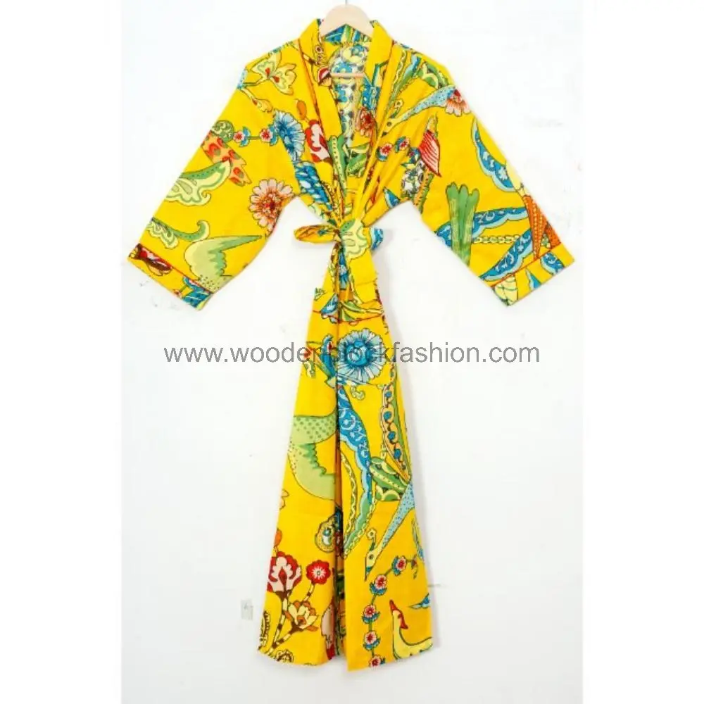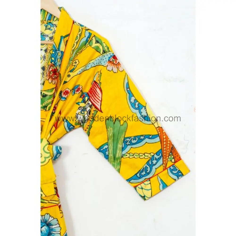 Summer Cotton Kimono Robe – Soft Block Print Loungewear