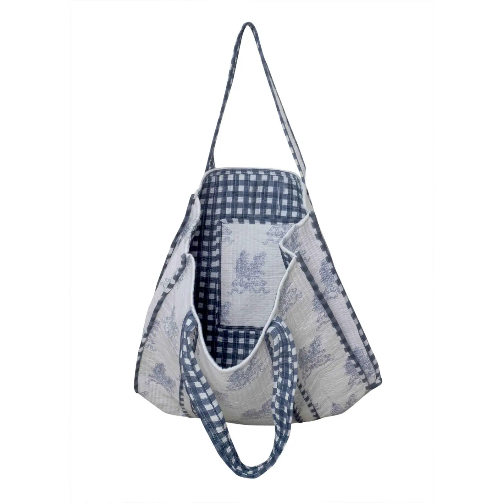 Explore the beauty of traditional craftsmanship with this block print cotton tote. Designed with exquisite patterns and made with durable cotton fabric, it’s the perfect addition to your accessory collection.