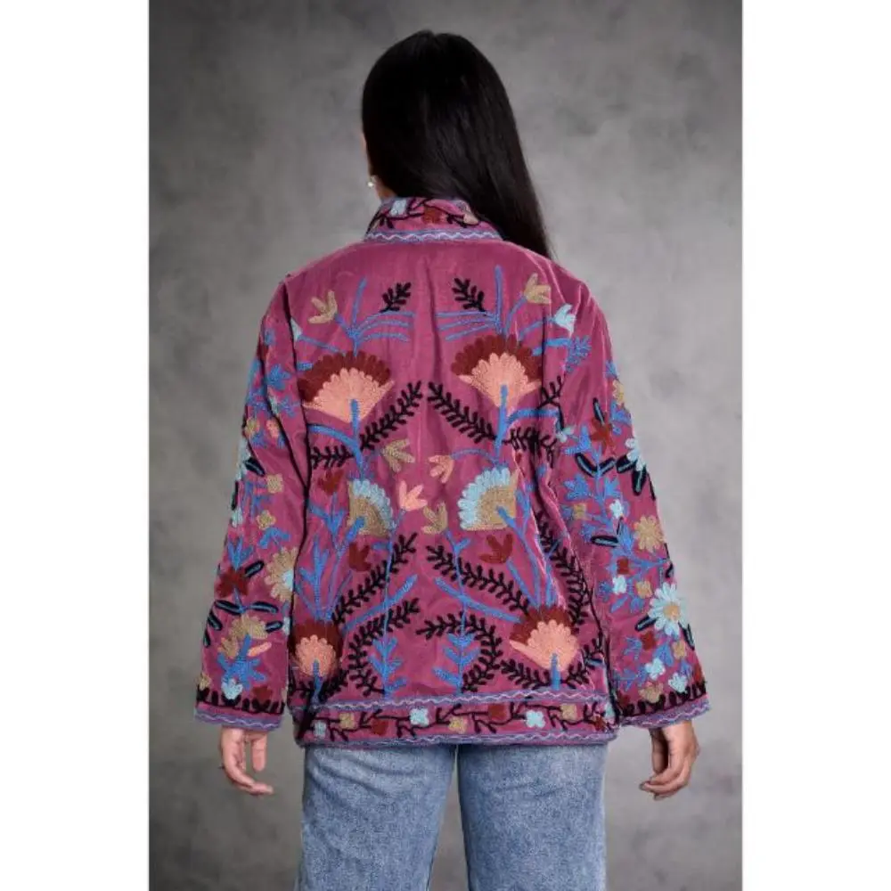 Velvet Suzani Embroidered Jacket: Boho Autumn Wear