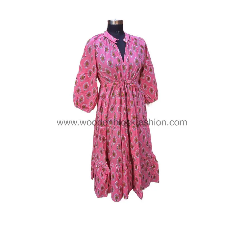 Inspired by ethnic craftsmanship, this cotton dress features authentic block prints and a relaxed silhouette for all-day comfort.