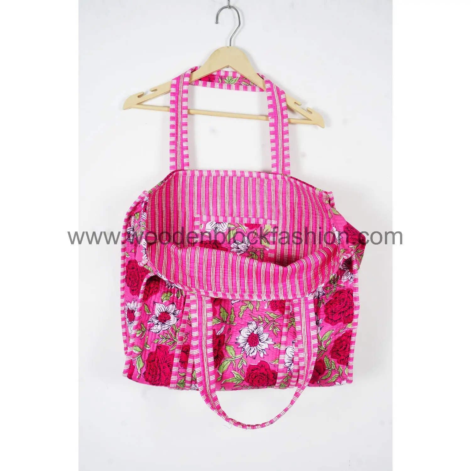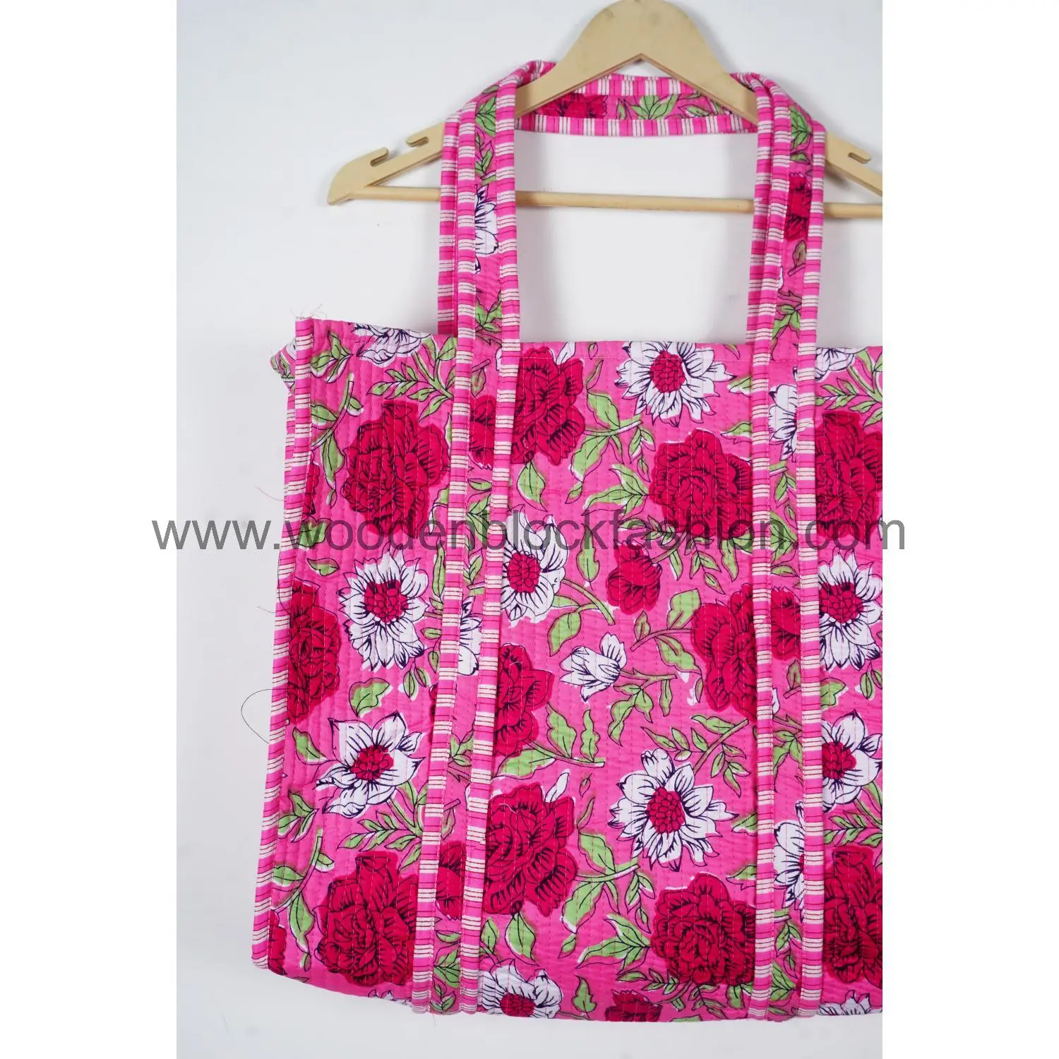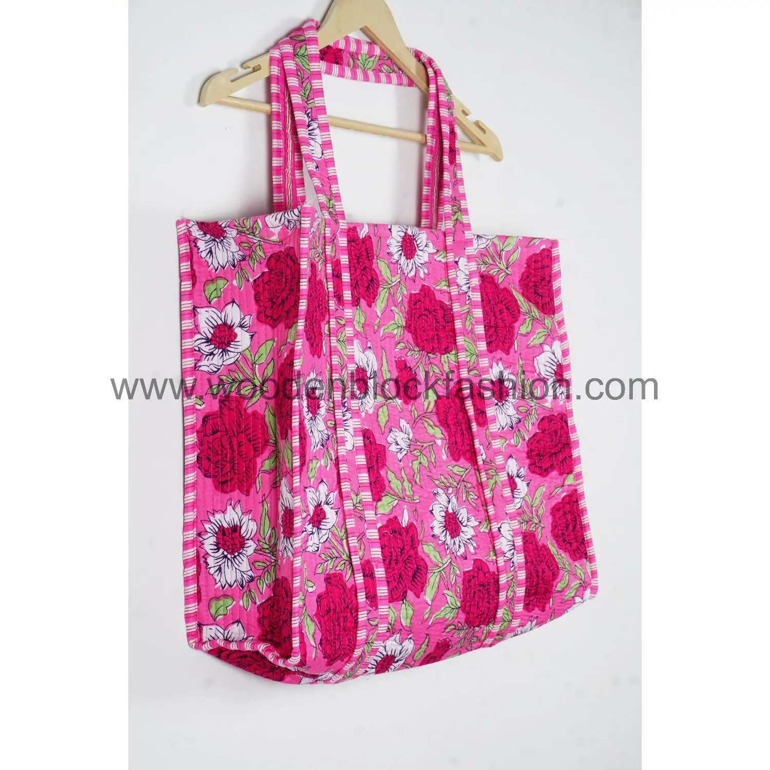 Featuring traditional block print stripes, this quilted cotton tote bag blends heritage craftsmanship with modern usability.