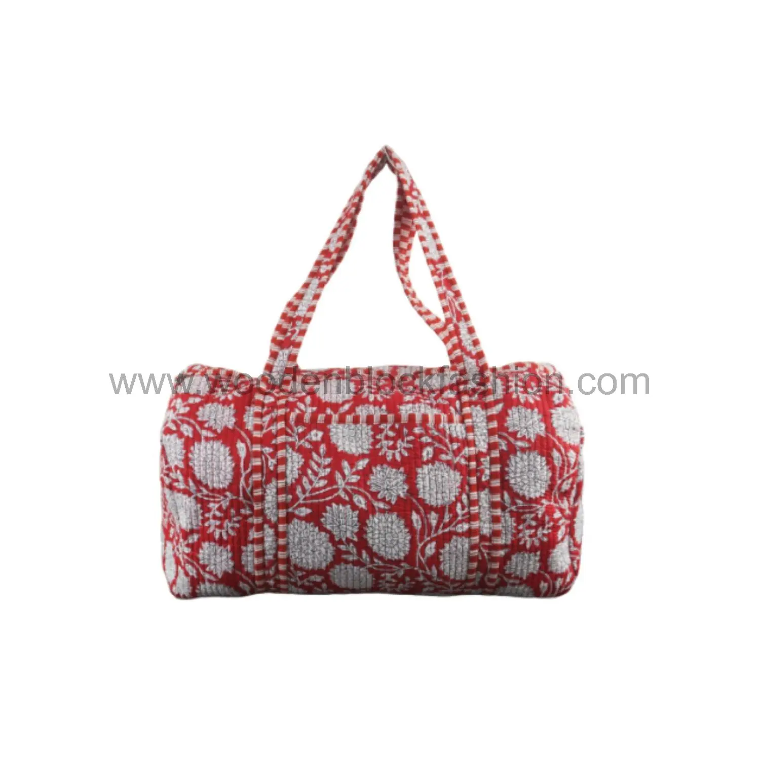 Quilted Cotton Overnight Bag – Handmade Block Print Travel Duffle